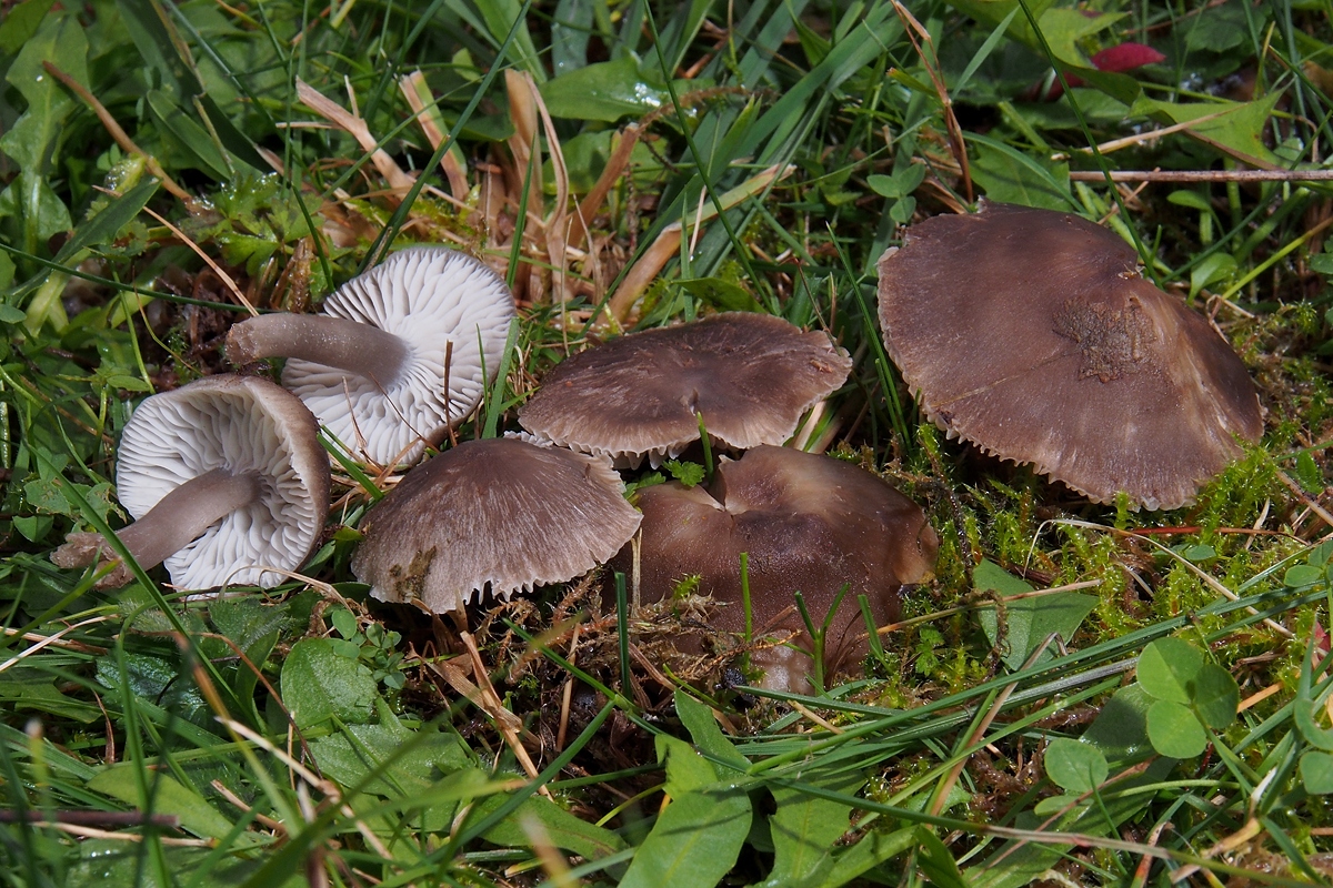 spät in der Saison im November, fand ich diese mittelgroßen Pilze mit 5 cm Hutdurchmesser am Rande einer Magerwiese. Der einzige Baum in der Nähe war eine Blaufiichte.