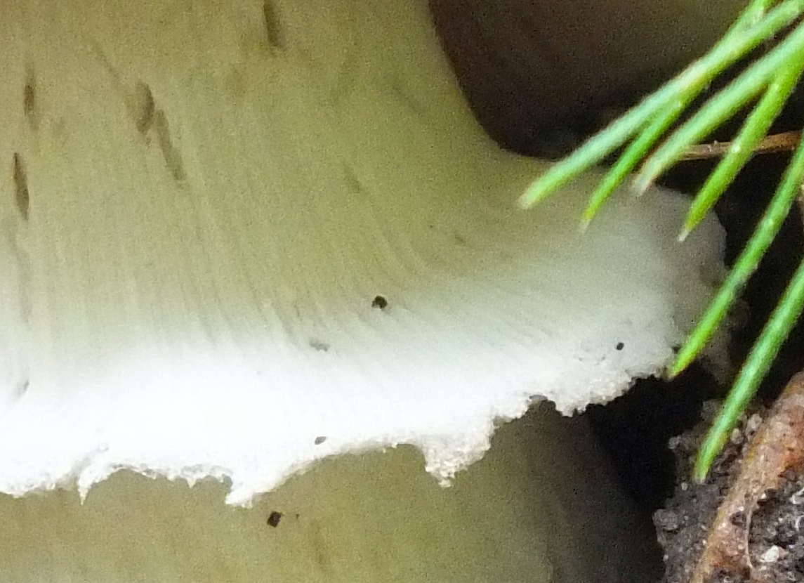 - Lamellen sind dichtstehend und weiß - mehr ist leider in dieser Perspektive nicht erkennbar