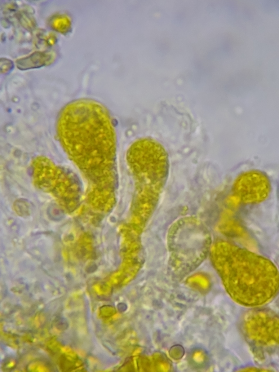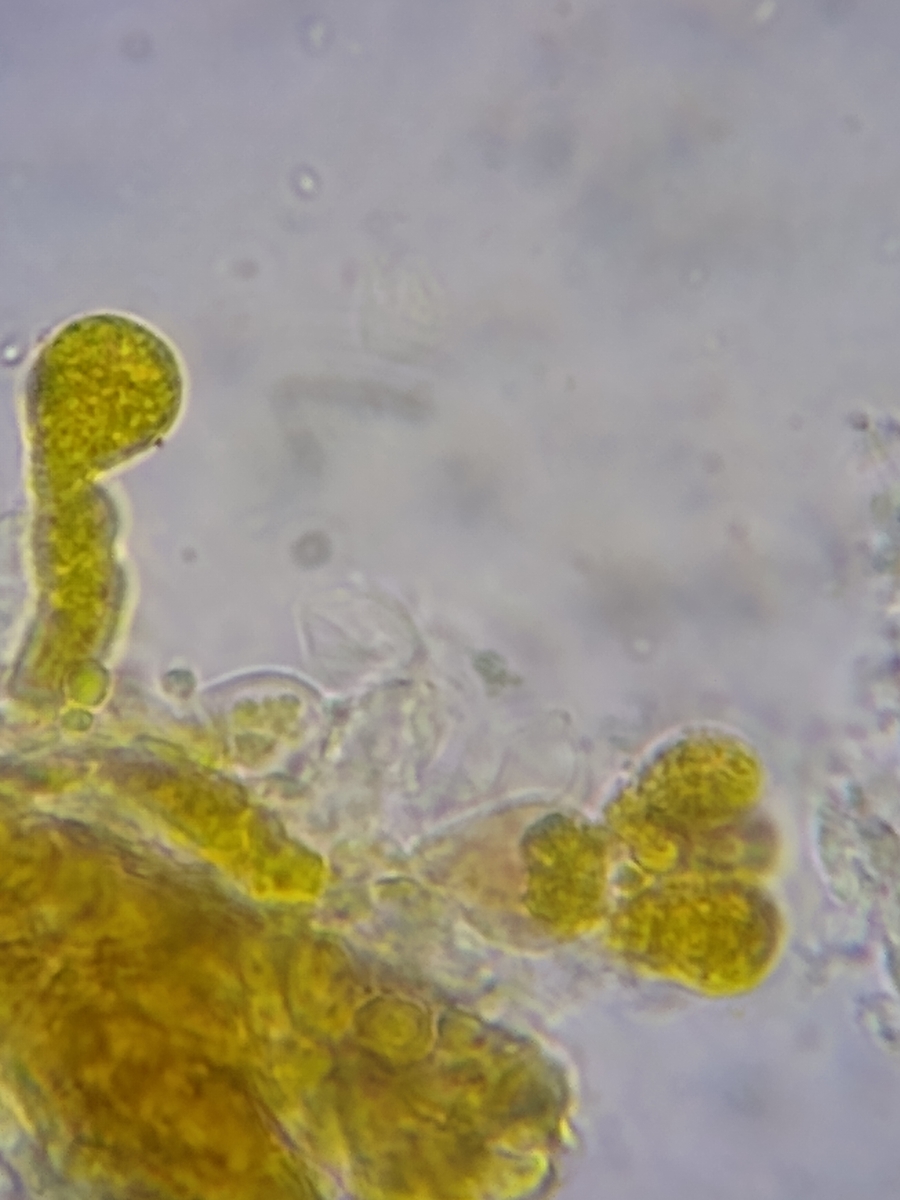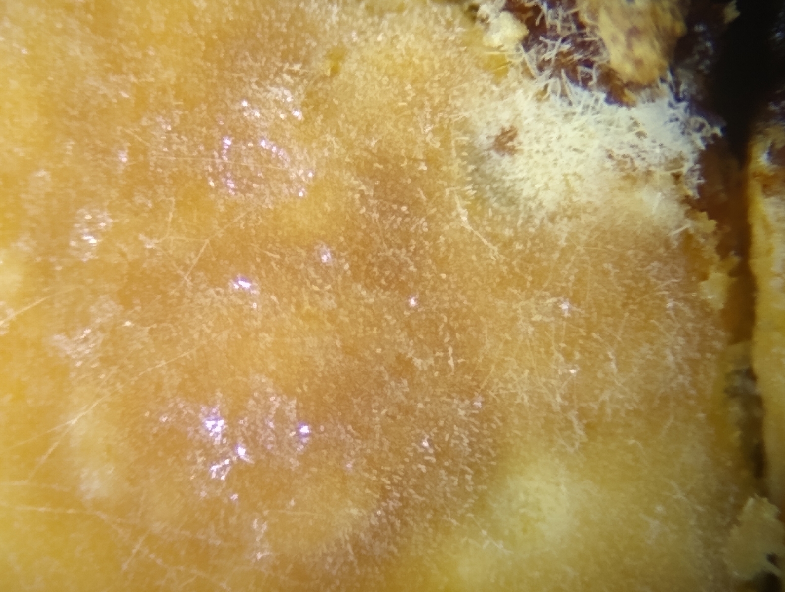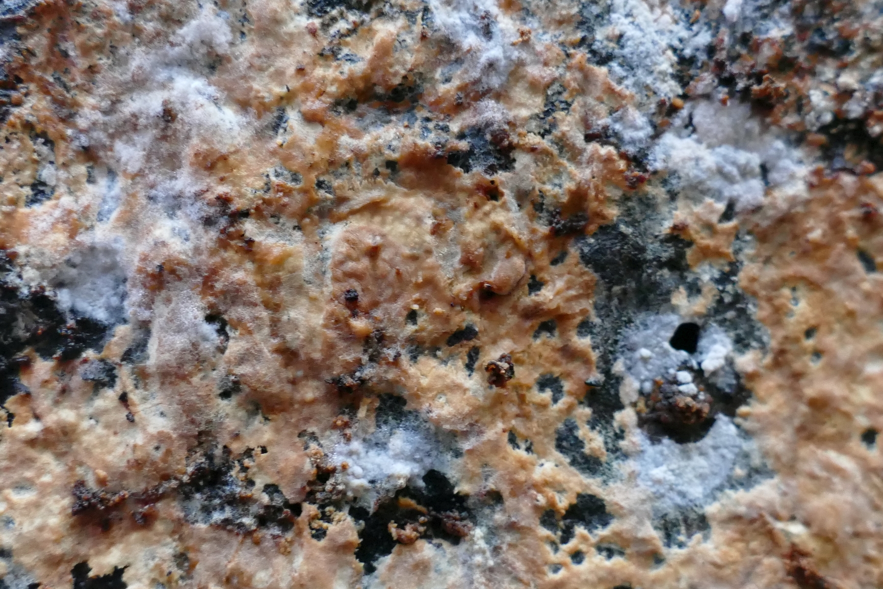 Ich bin mir nicht sicher, ob die weißen Flächen zum gleichen Pilz gehören, oder schon wieder zu einem anderen Pilz gehören.