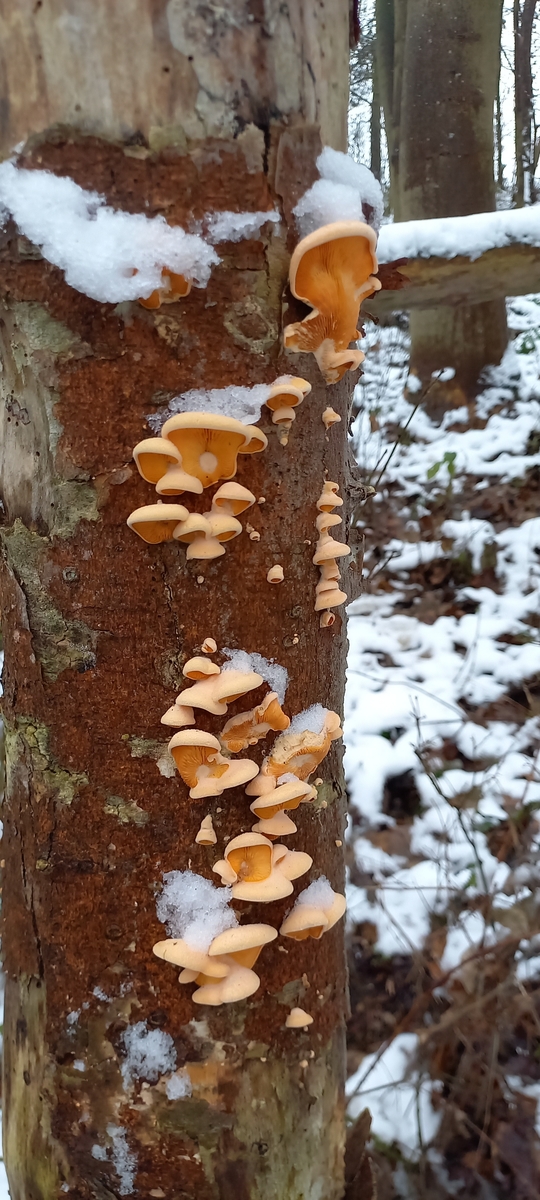 naja der verottende Stamm, müsste Buche sein. Geruch konnte ich nicht feststellen, kann allerdings am gefrosteten Zustand liegen.