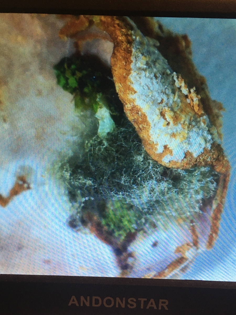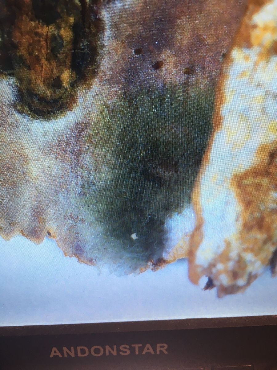 Häufig sind blaugrüne schimmelartige Beläge Nebenfruchtformen von Trichoderma, z.B. Trichoderma viride.