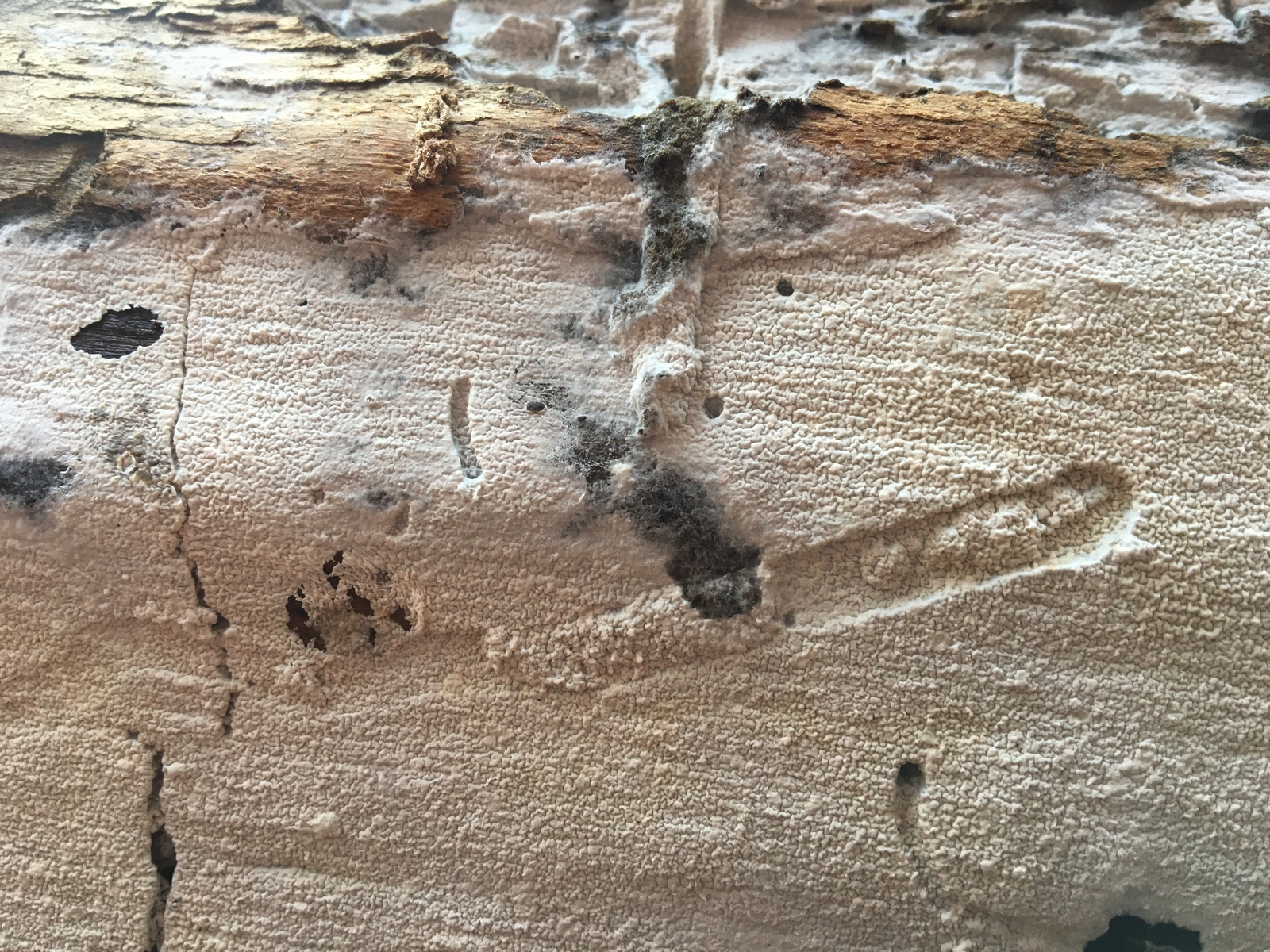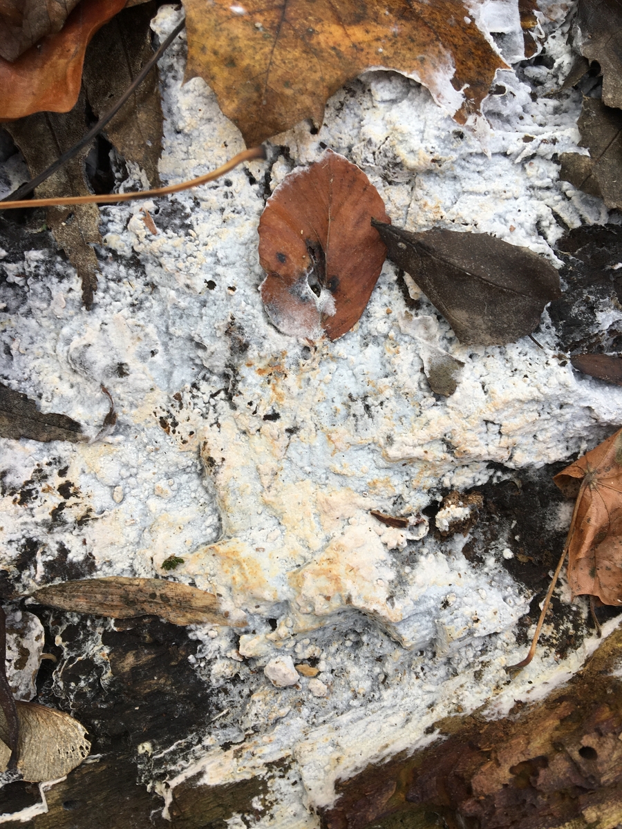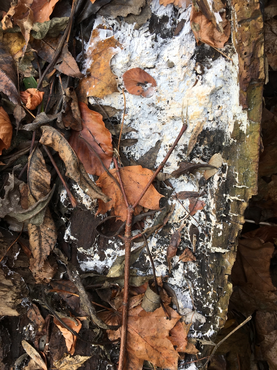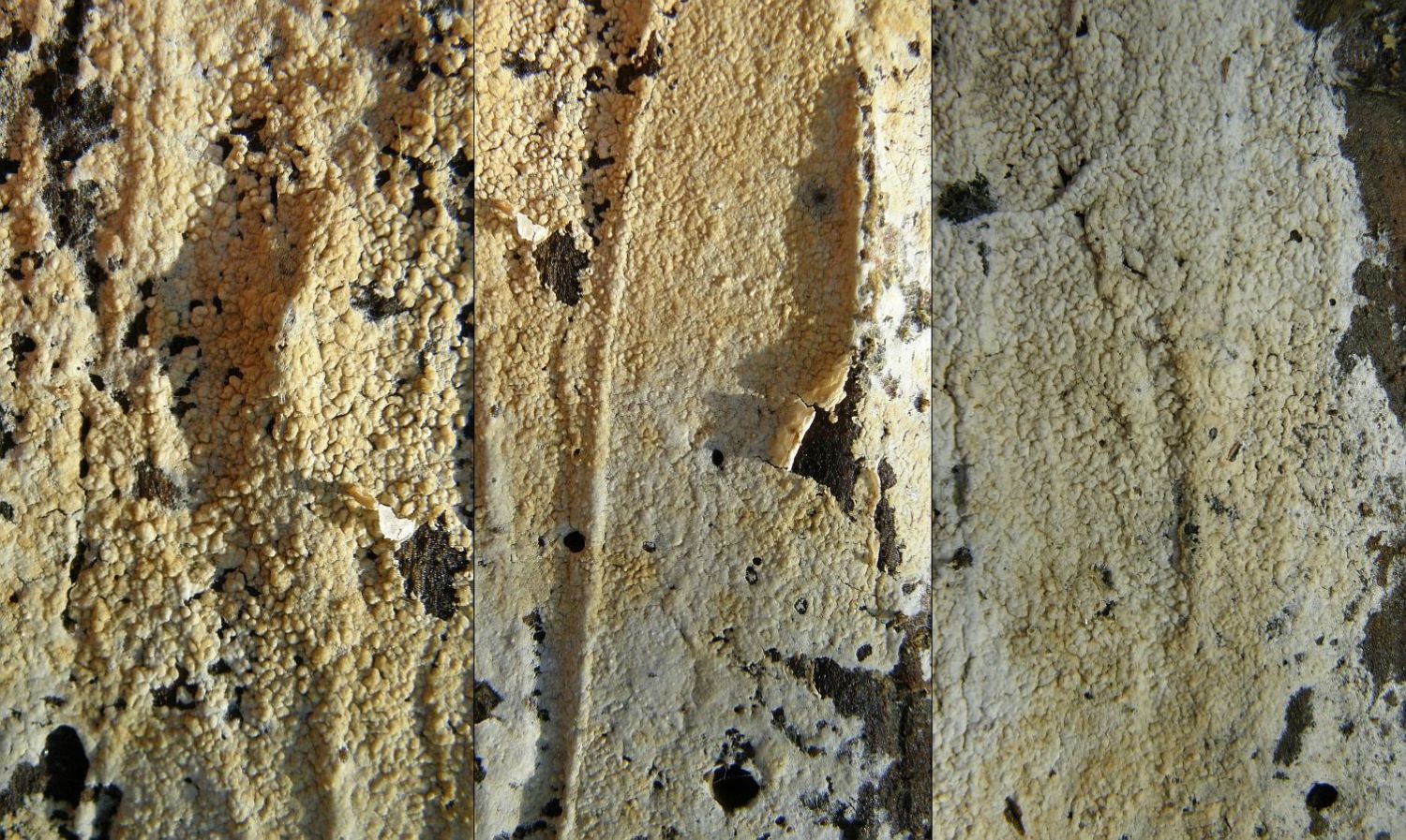 heute hab ich im Wiener Prater an Esche einen Rindenpilz gefunden, der ein hübsches meruloides Hymenium hat. Er ist weiß mit stellenweise ganz leicht ockerlichem Farbton.