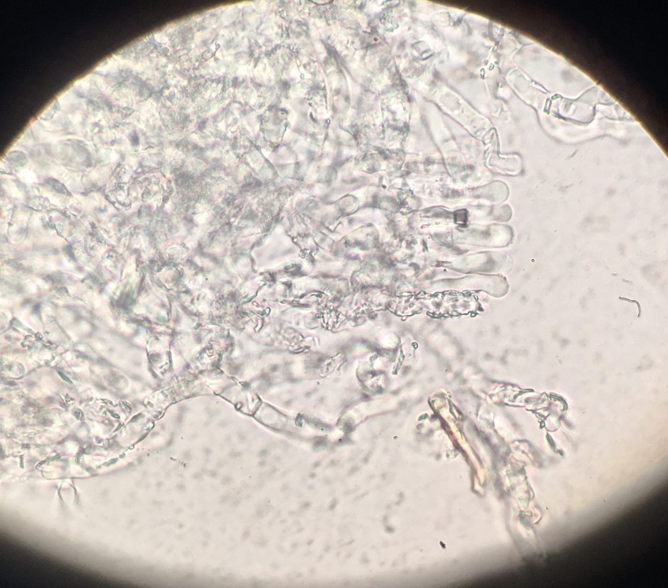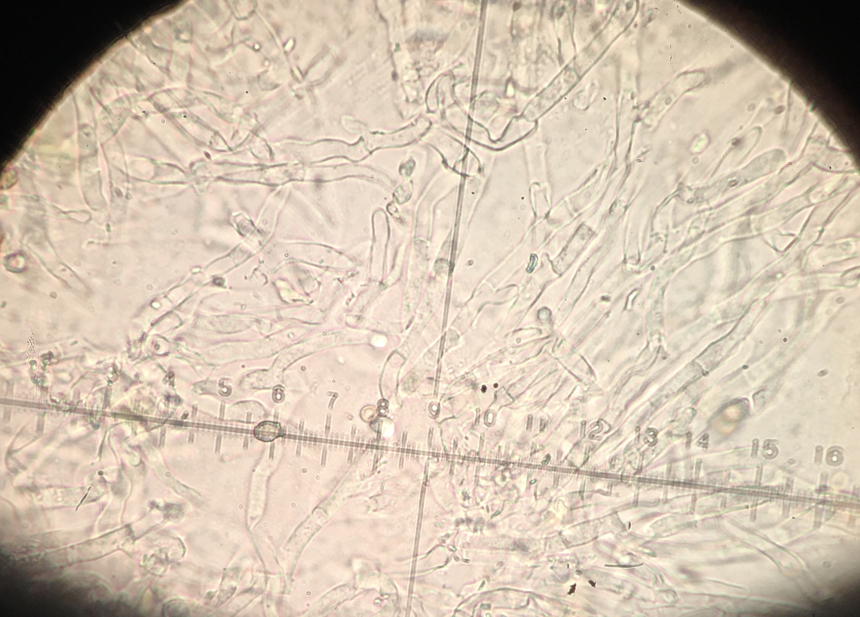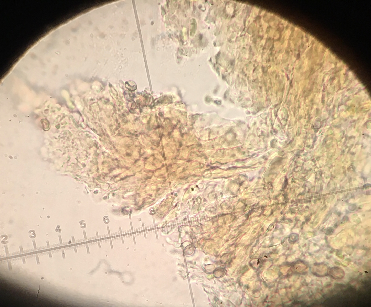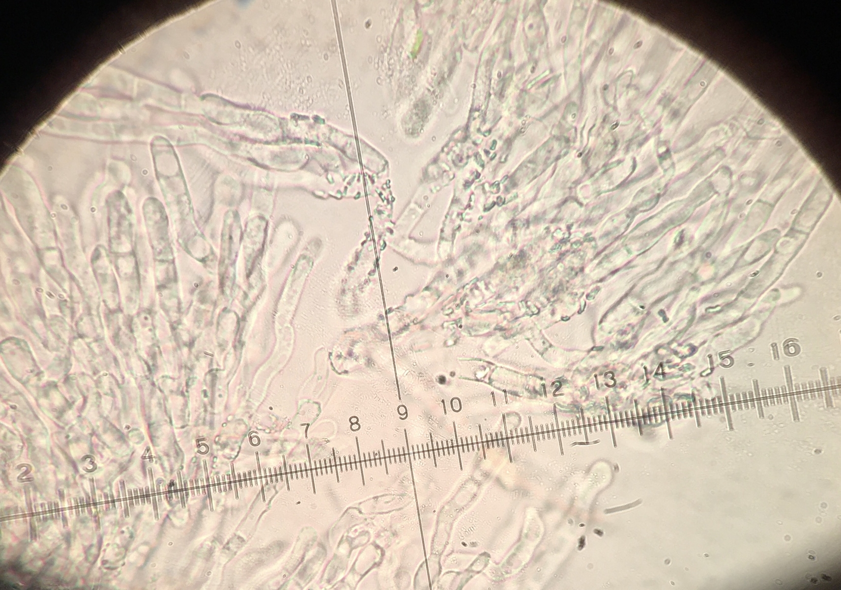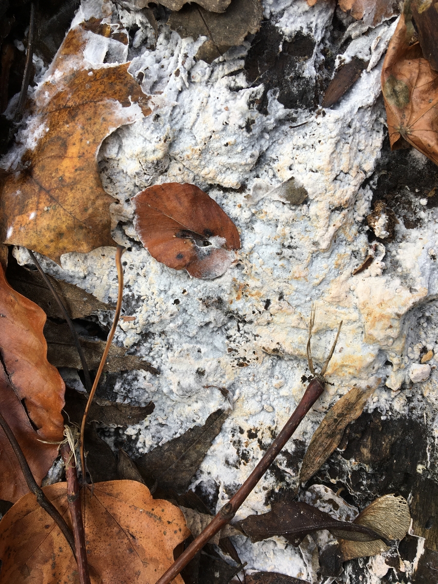 heute hab ich im Wiener Prater an Esche einen Rindenpilz gefunden, der ein hübsches meruloides Hymenium hat. Er ist weiß mit stellenweise ganz leicht ockerlichem Farbton.