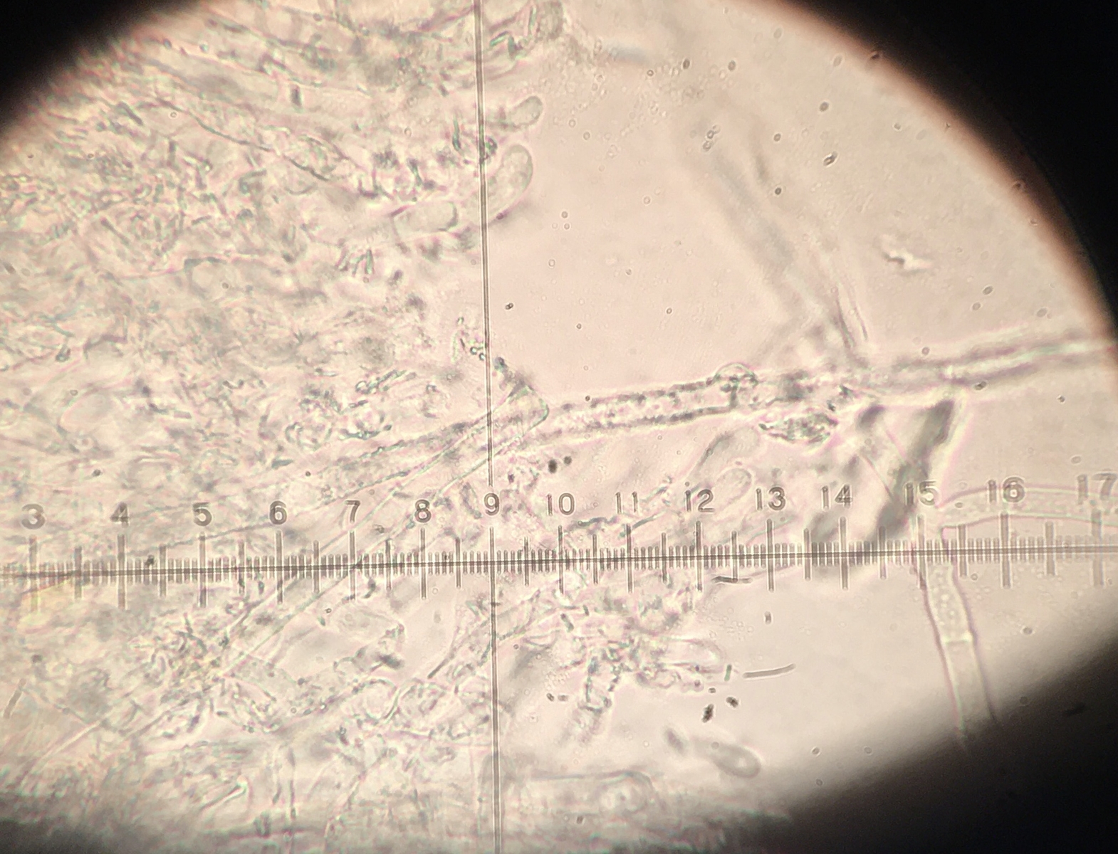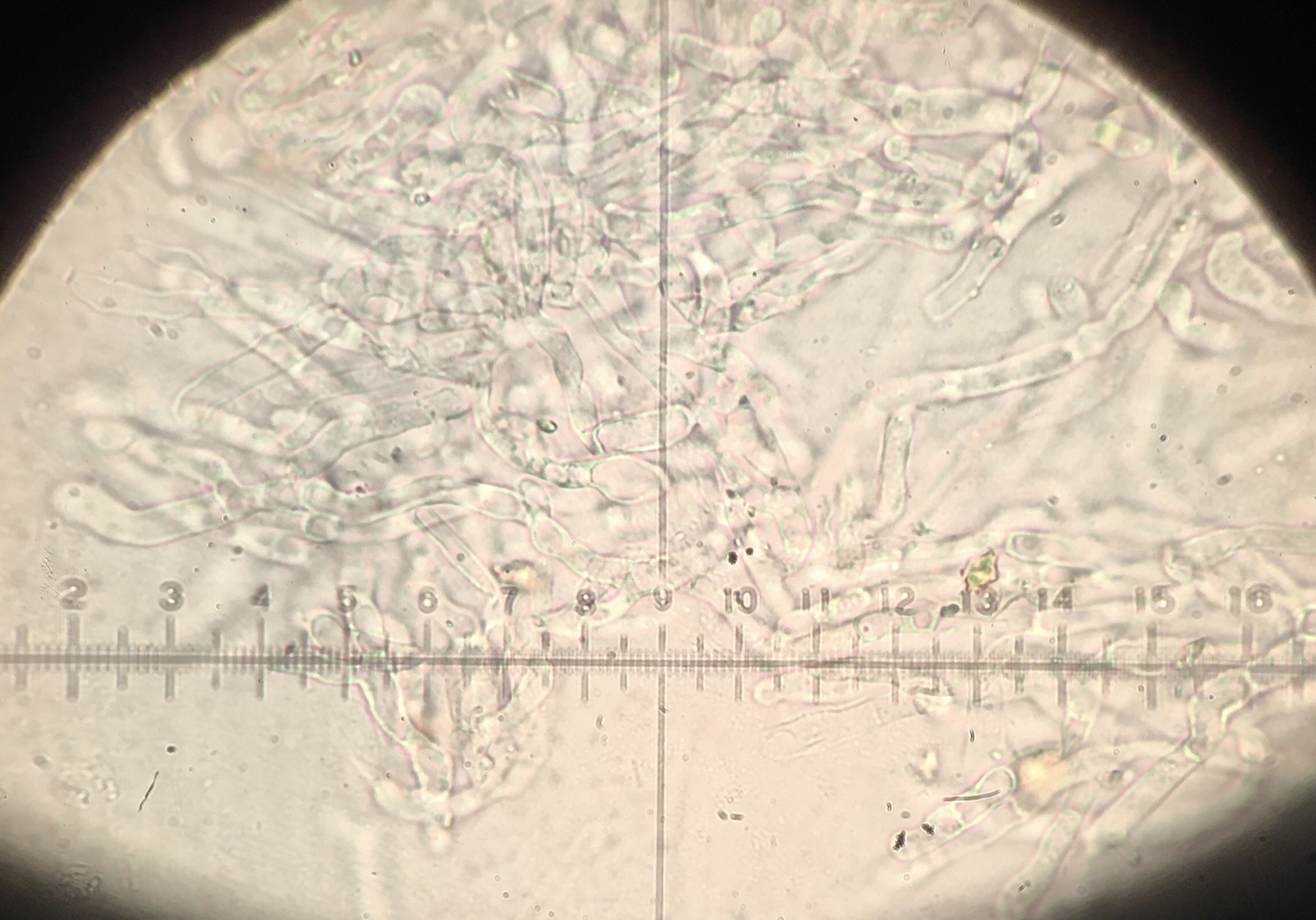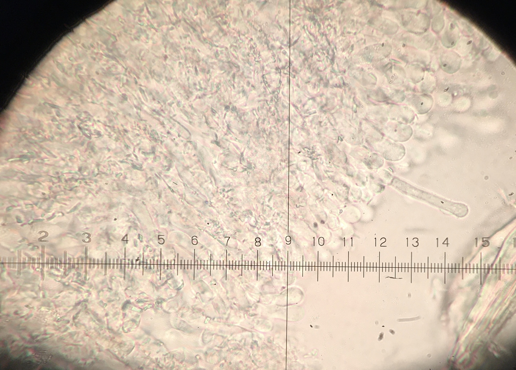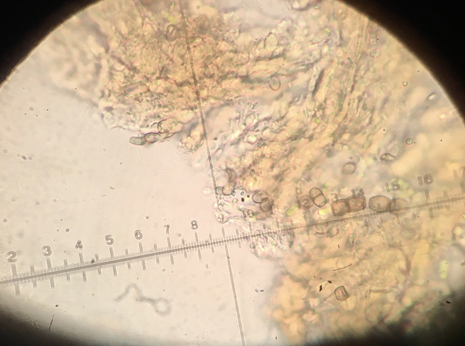 heute hab ich im Wiener Prater an Esche einen Rindenpilz gefunden, der ein hübsches meruloides Hymenium hat. Er ist weiß mit stellenweise ganz leicht ockerlichem Farbton.