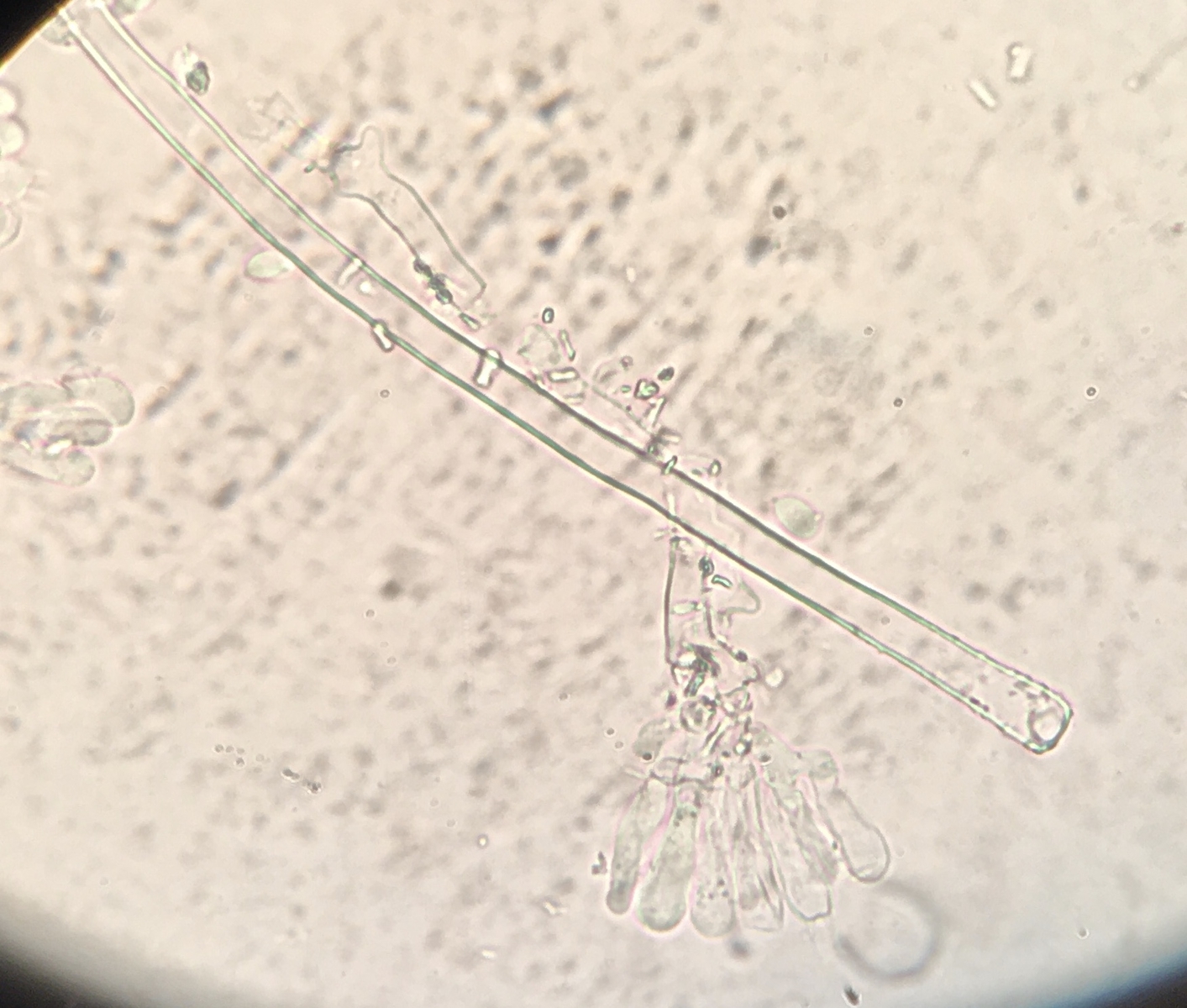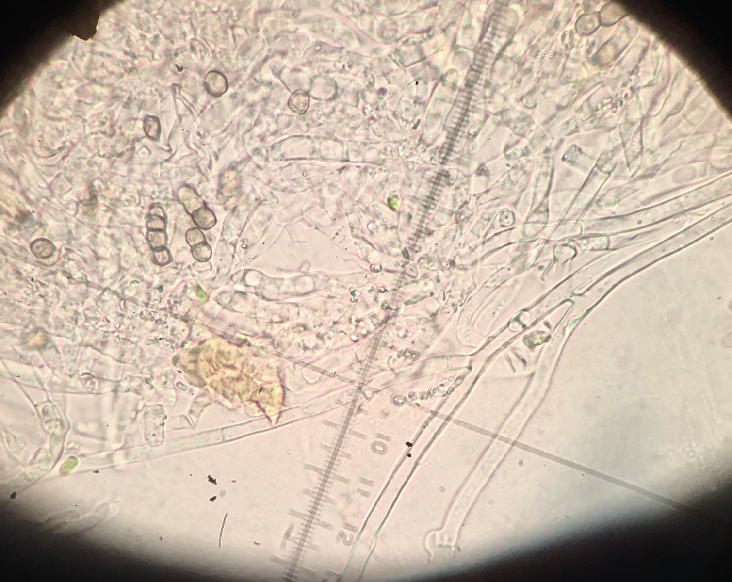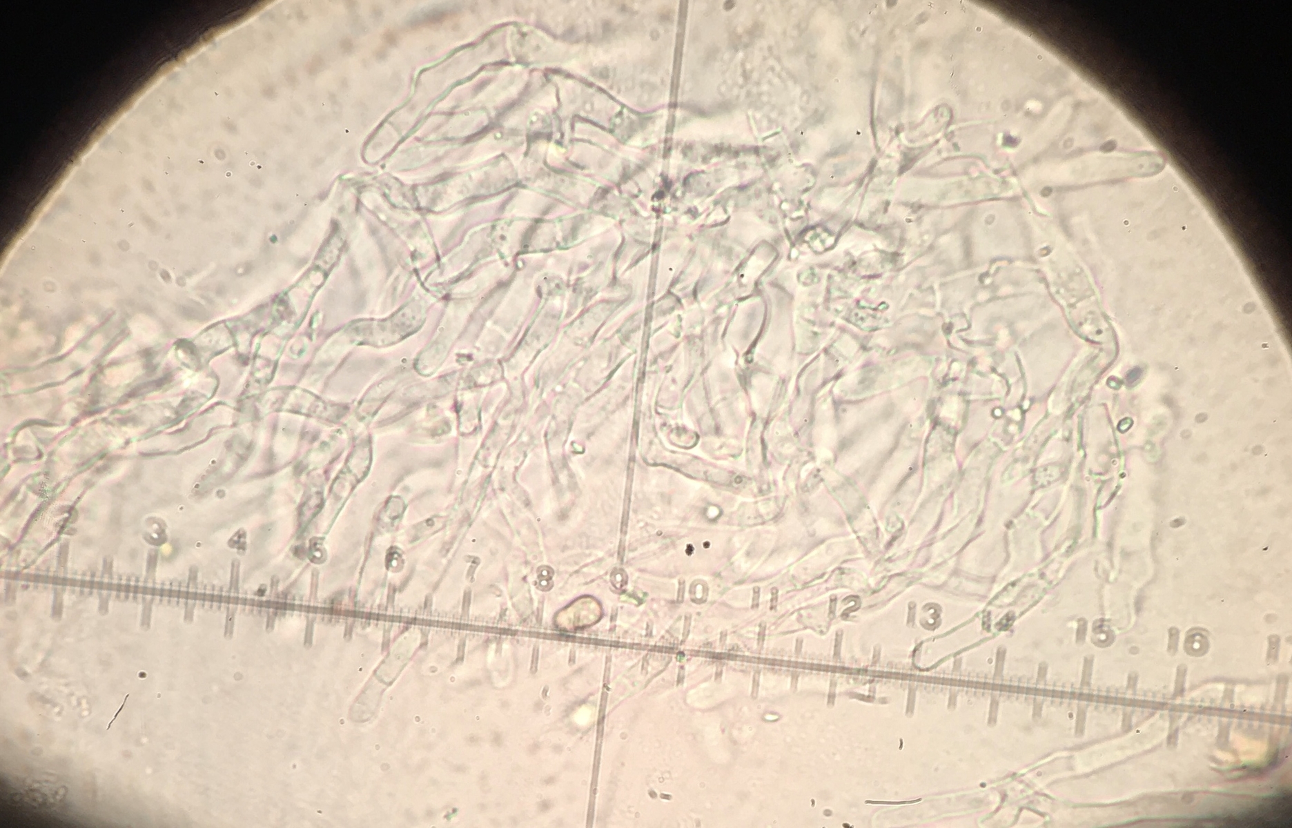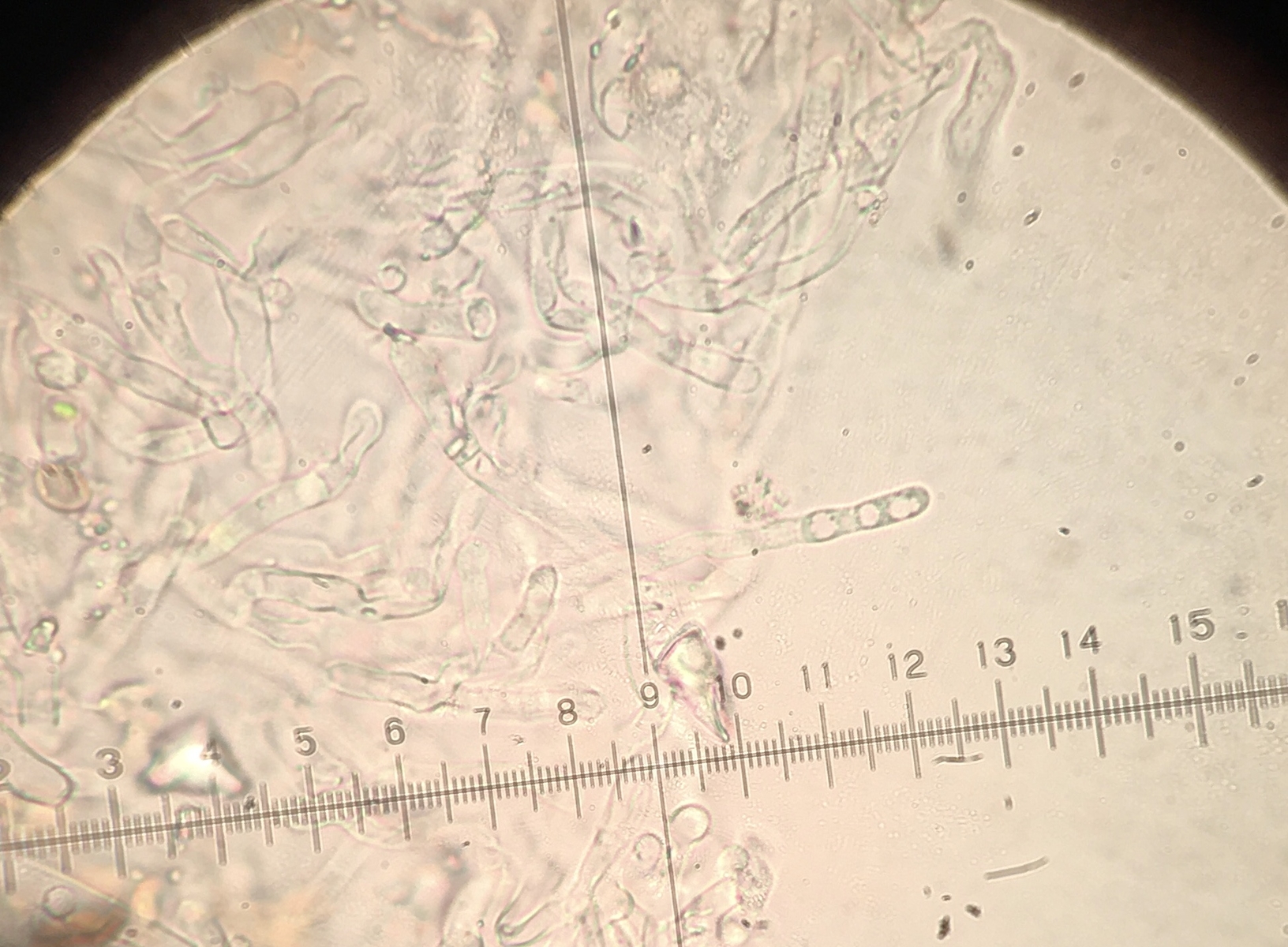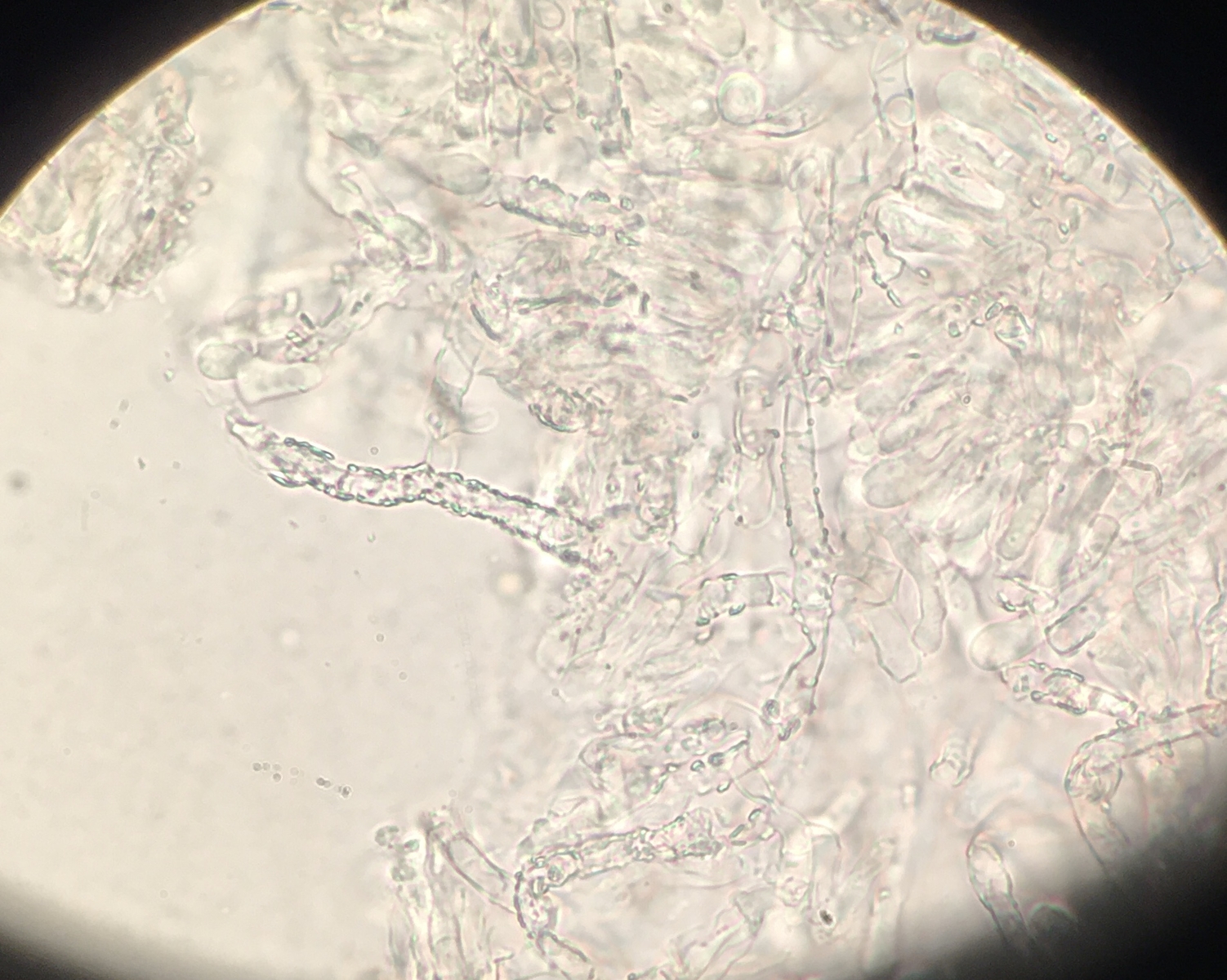 heute hab ich im Wiener Prater an Esche einen Rindenpilz gefunden, der ein hübsches meruloides Hymenium hat. Er ist weiß mit stellenweise ganz leicht ockerlichem Farbton.