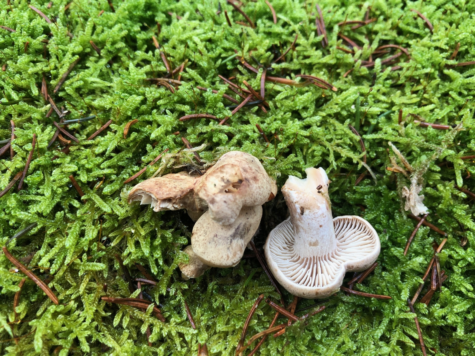 Ich habe jetzt nicht nach den Mikromerkmalen geschaut, aber makroskopisch (Farbe, Abtrocknung, die angedeutet am Stiel streifig herablaufenden Lamellen) passt Neolentinus adhaerens, Harziger Sägeblättling.