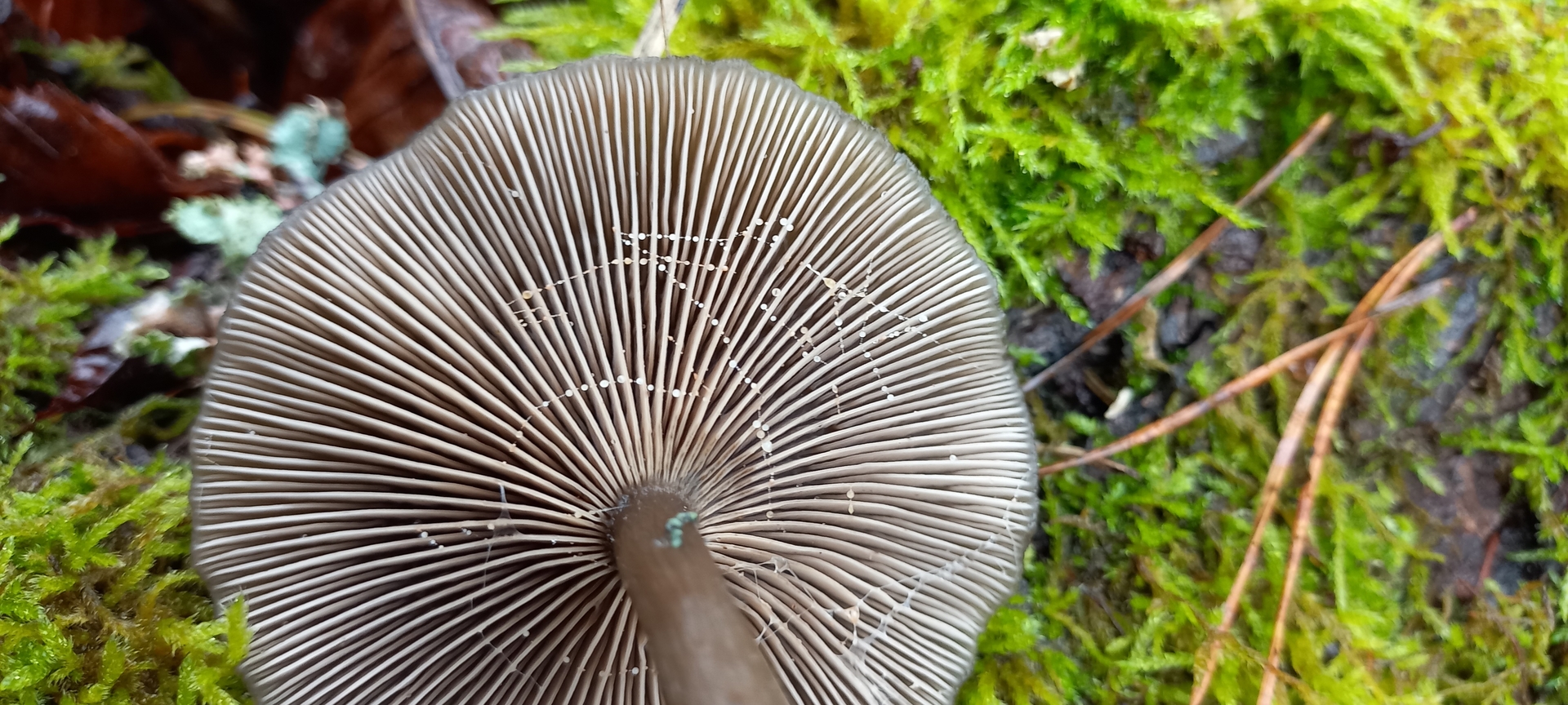 Die Lamellen breit angewachsen und der Stiel sehr elastisch.