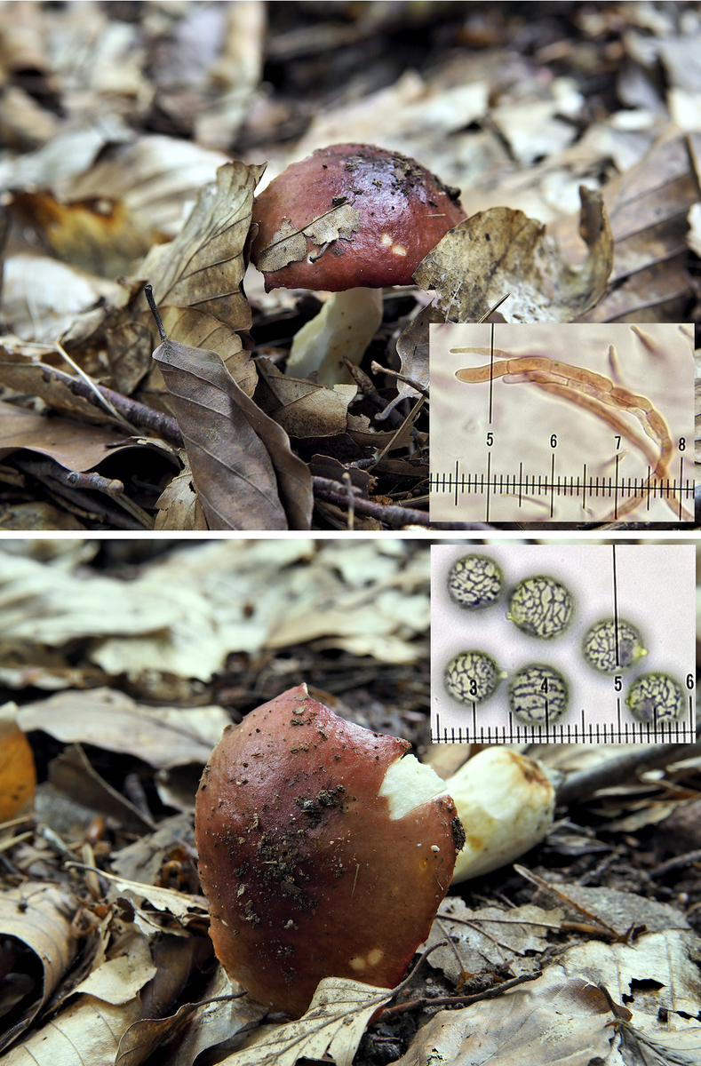 SpP Ib–IIa, mild, Geruch nächster Tag Honig, Mischwald, Buche, Kiefer, Lärche, Hut klebrig, stark rostfleckig, Huthaut wenig abziehbar, Mikroskopie: Dz zylindrisch, lang, multiseptiert (Bild), Sporenform gross, rundlich mit netzig kaum hervorstehenden Ornament (Bild)