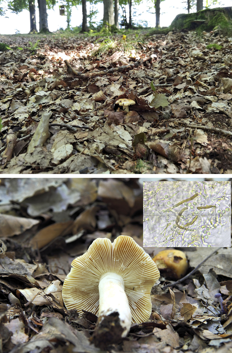 SpP Ib, sehr scharf/brennend, Geruch neutral, Guajak St + blieb blass/ La 0, Mischwald, Buche, Eiche, Kiefer, Lärche, Lamellenschneide hier nicht gesägt, Dz zylindrisch, keulig, kopfig, schnabelig, die Zylindrischen 3+ septiert, die „Haare“ zylindrisch, apikal rund