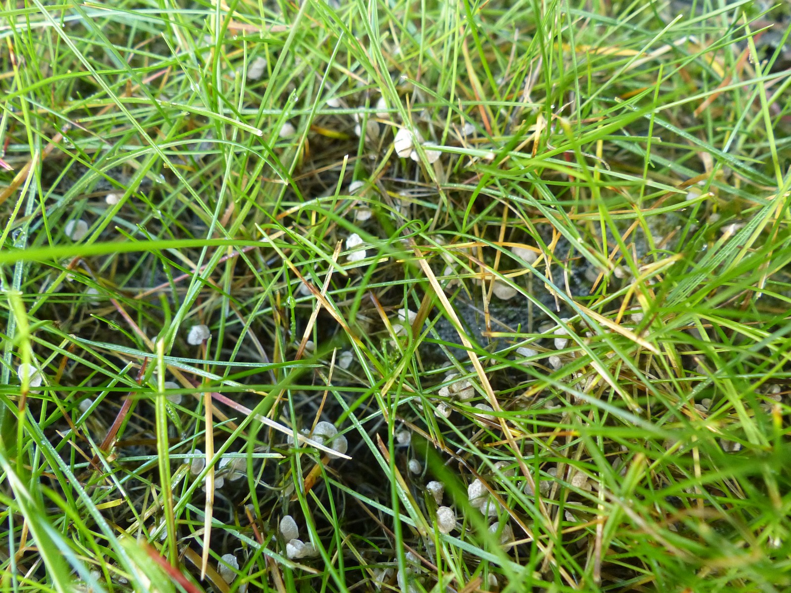 gestern habe ich mir dann doch mal das komische weißliche "Zeug" in Rasen angeschaut und siehe da, es ist doch tatsächlich ein Pilz.