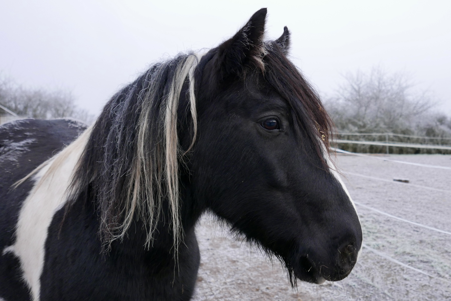 Mit ihrem dicken Winterpelz stehen sie unbeeindruckt von der Kälte auf der Koppel