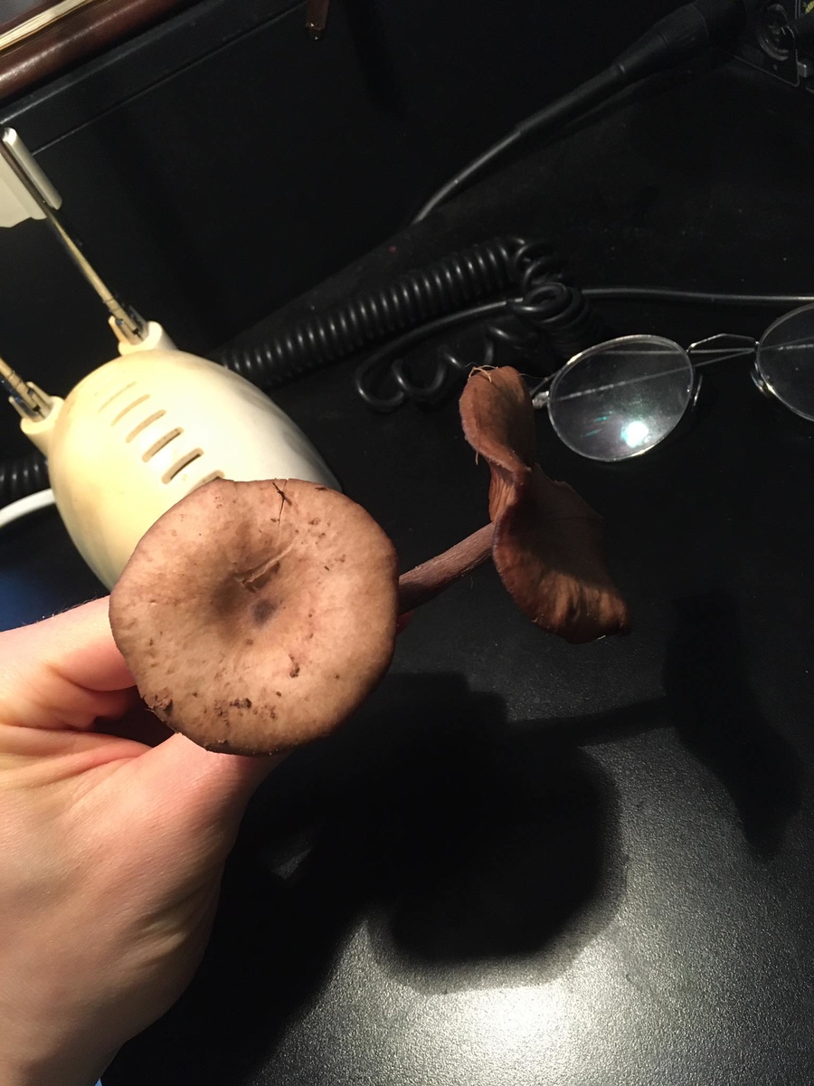 sind schon ein bisschen älter, die Teile. Aber ich schätze mal, dass das Kaffeebraune Gabeltrichterlinge, Pseudoclitocybe cyathiformis sind.