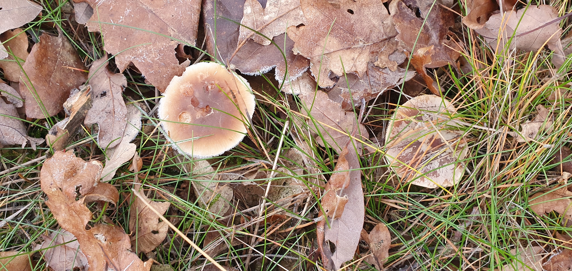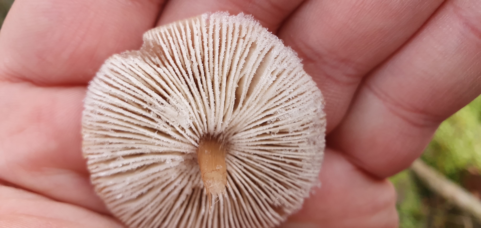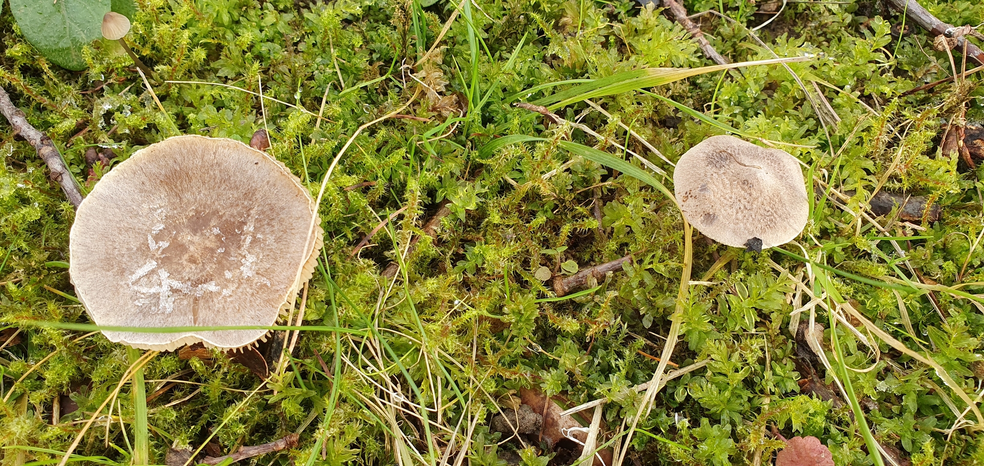 Weiter begegnete mir 19 Clitopilus prunulus - der Mehlräsling, jung aber mit deutlichem Lamellenansatz, brüchigem Hutfleisch und vor allem sehr starkem Mehlgeruch: