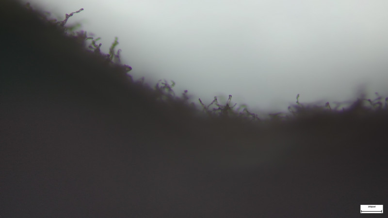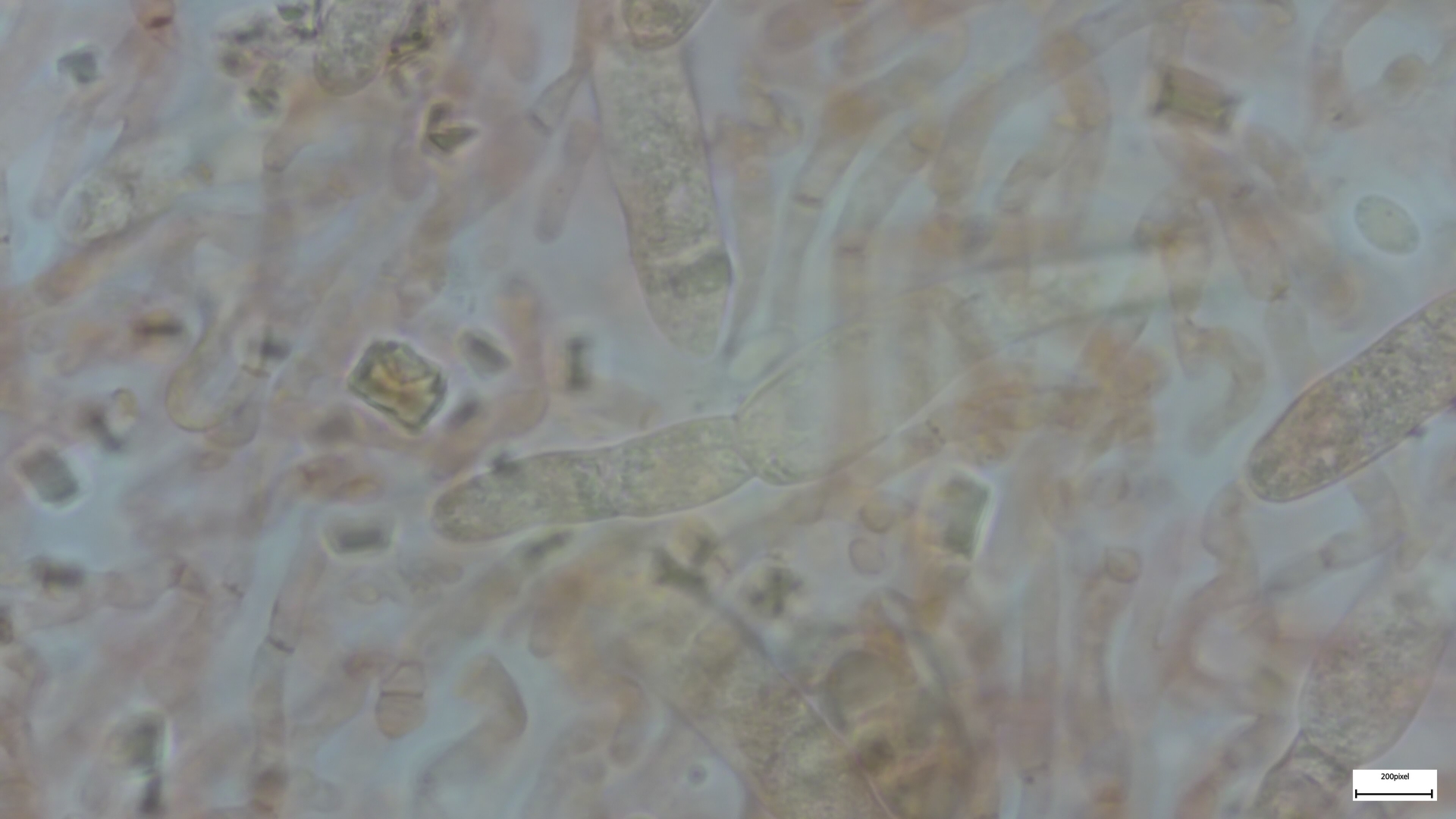 Für die Kaulozystiden habe ich den Stiel nur "trocken" abgefahren mit dem 100er (um Zeit zu sparen), am oberen Stielteil definitiv vorhanden: