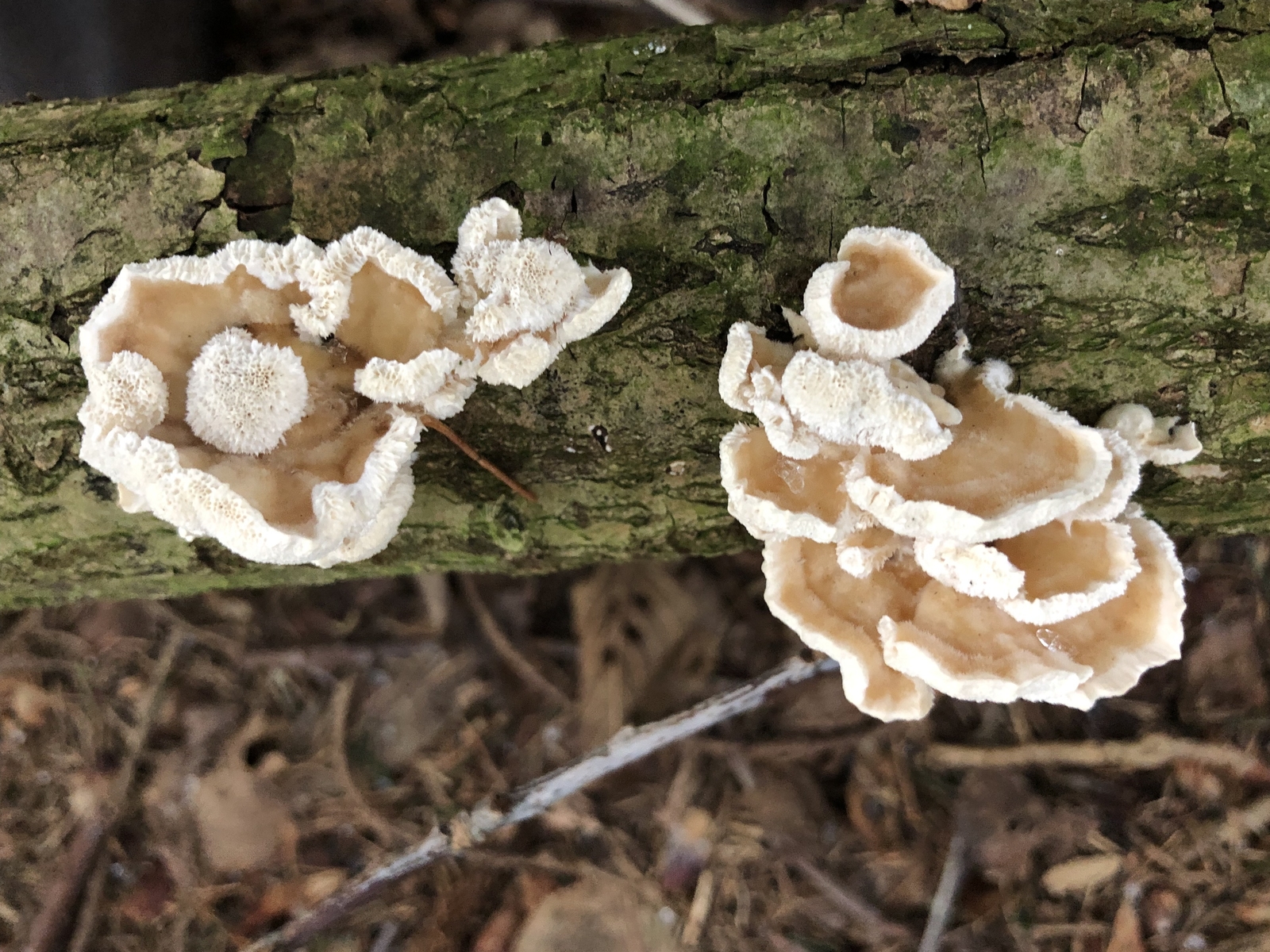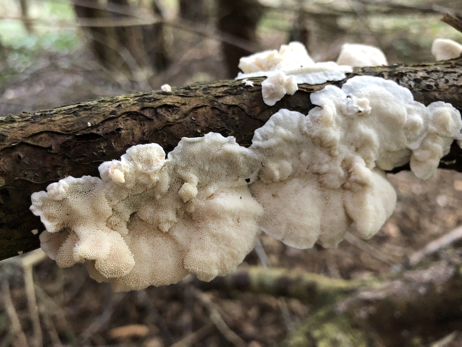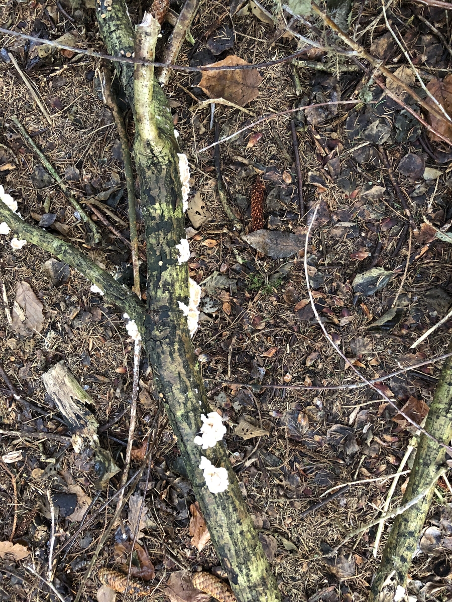 3. Und noch ein Pilz in unserem kleinen Wäldchen (Tannen und Fichten, Birken und Holunder) auf unserem Grundstück, an einem Windwurf-Ast