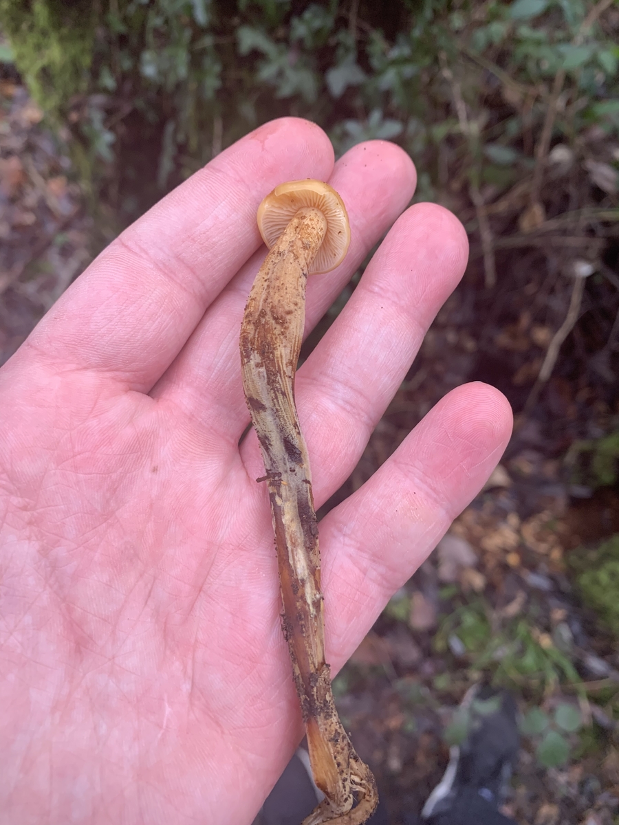 Diesen Pilz fand ich gestern im Hächsel. Sah schon wie ein Samtfuß aus, wuchs aber einzeln und hatte einen gewaltigen Stiel. Hat leider nicht abgesport.