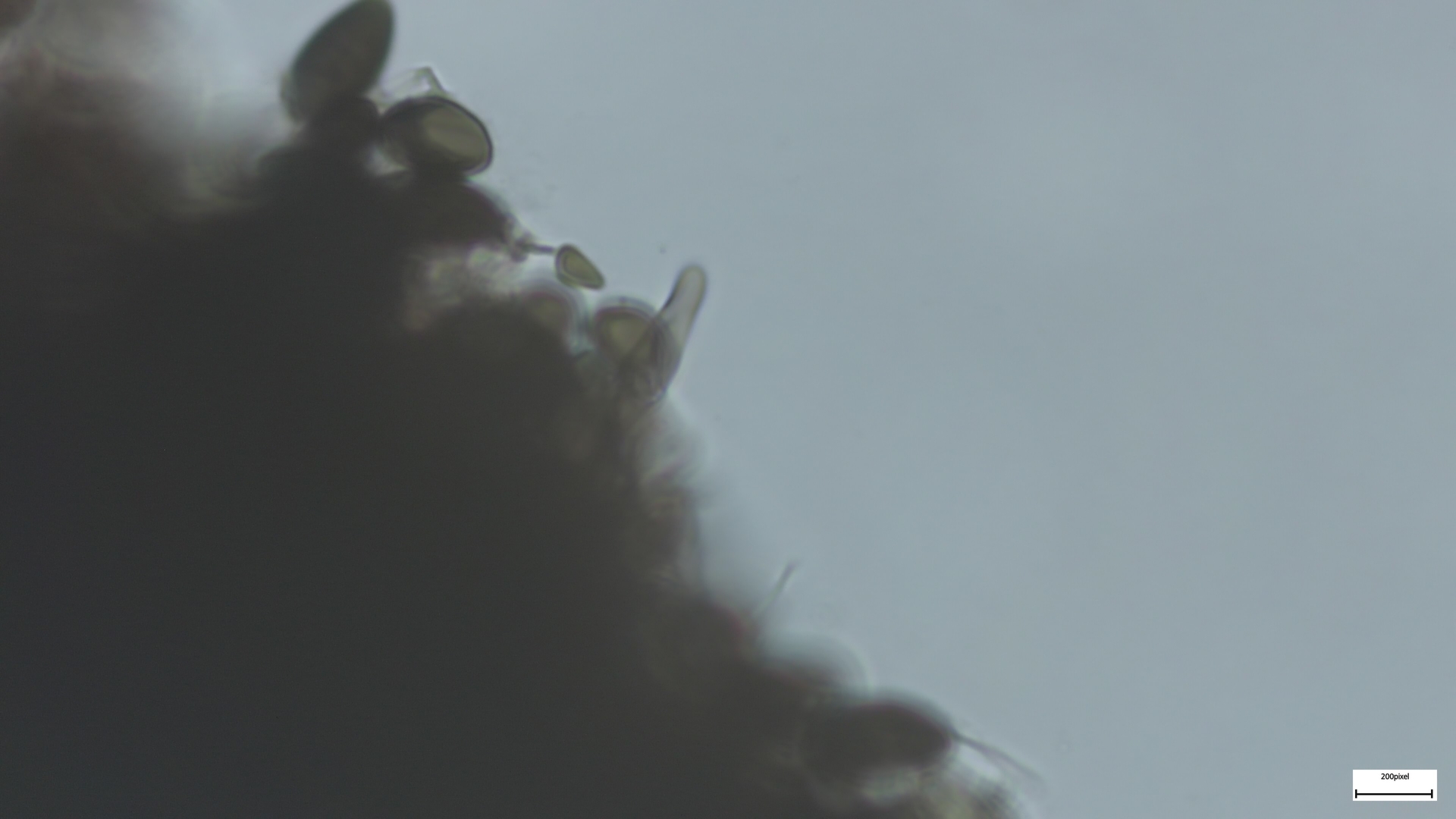 Sporen ca. 11x4µm, gekammert, vermutlich noch nicht ganz reif (Versuche noch ein Sporenabwurf hinzubekommen.