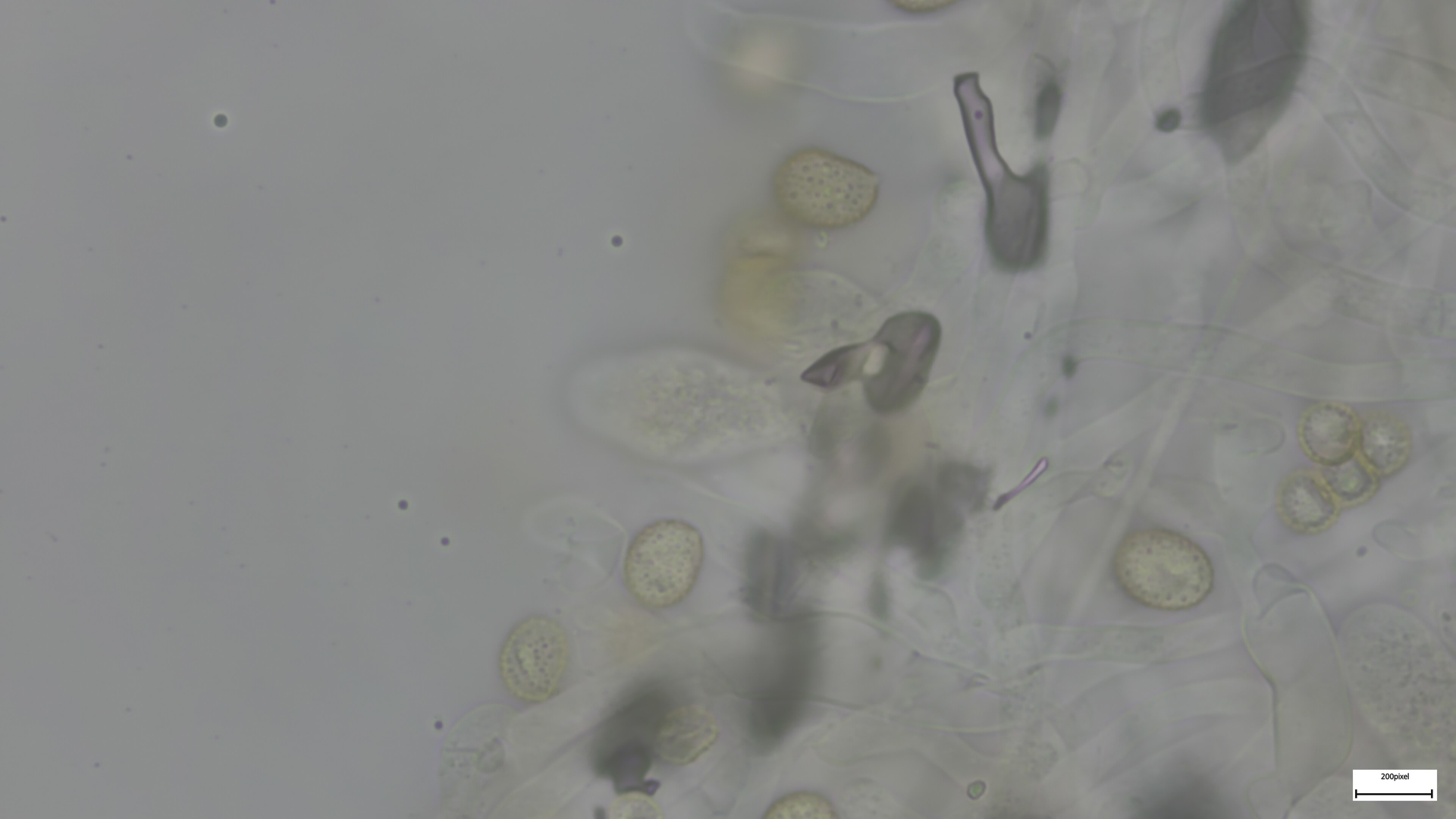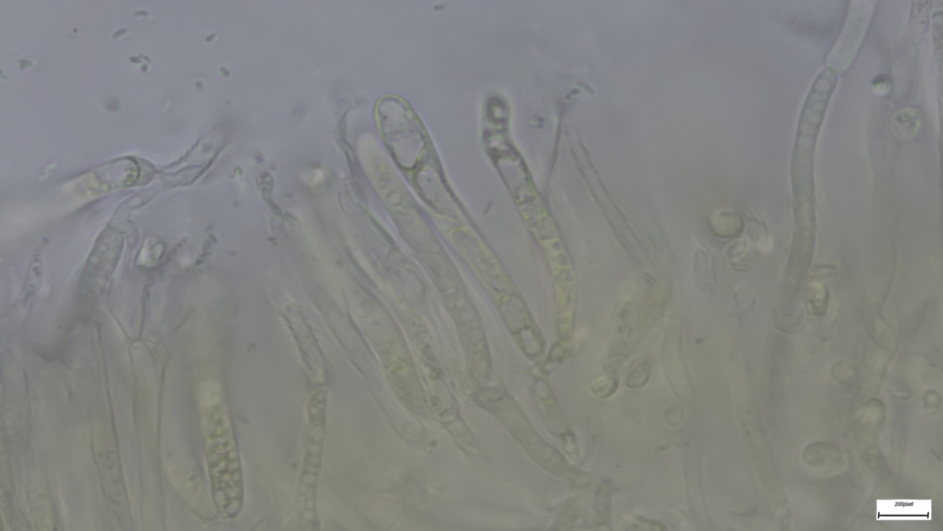 Damit sollte 01 Daldinia childiae - der Birnenholzkohlepilz dingfest gemacht sein. Hier noch weitere Eindrücke von Zystiden? und Hyphen. Nicht bestimmungsrelevant: