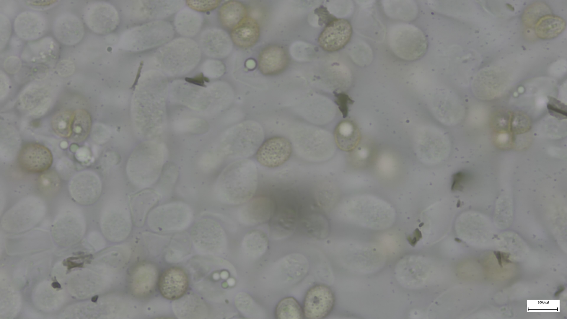 Sporen hier 14,5x 7µm mit Keimschlitz über die gesamte Sporenlänge! Im folgenden Bild gut zu erkennen.