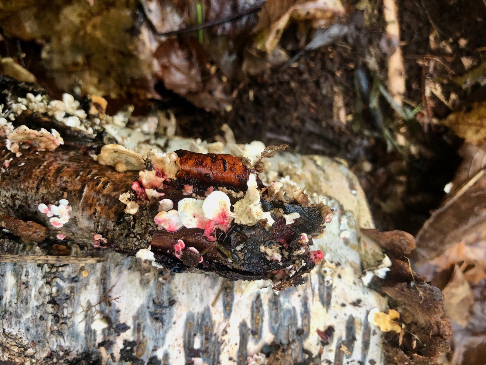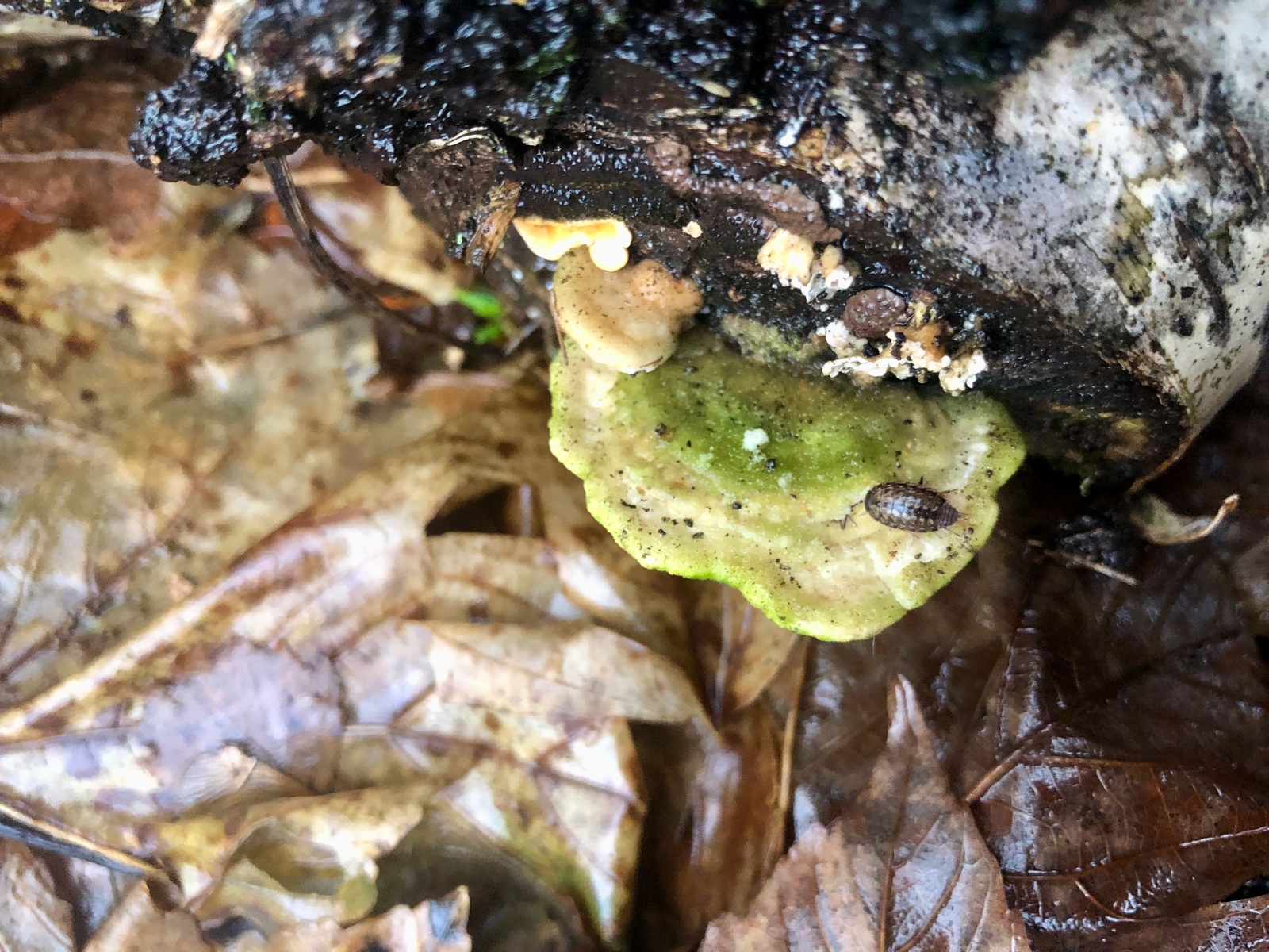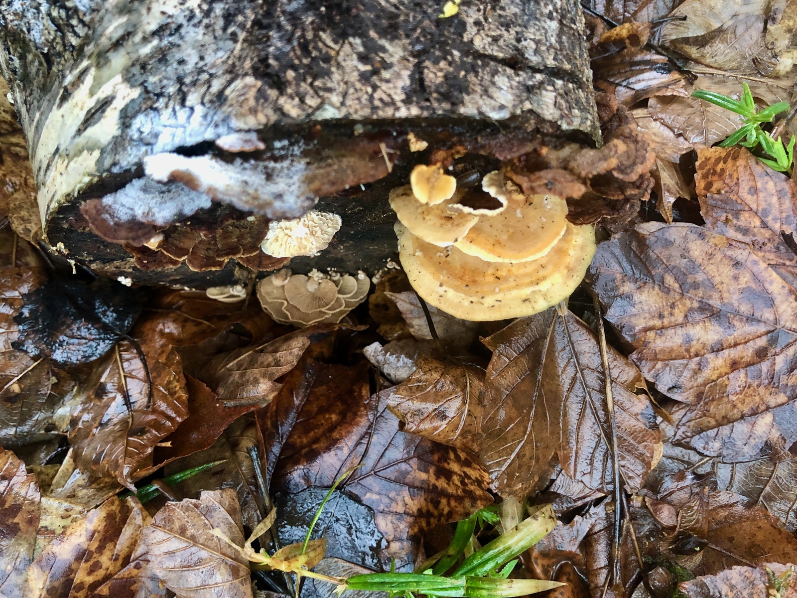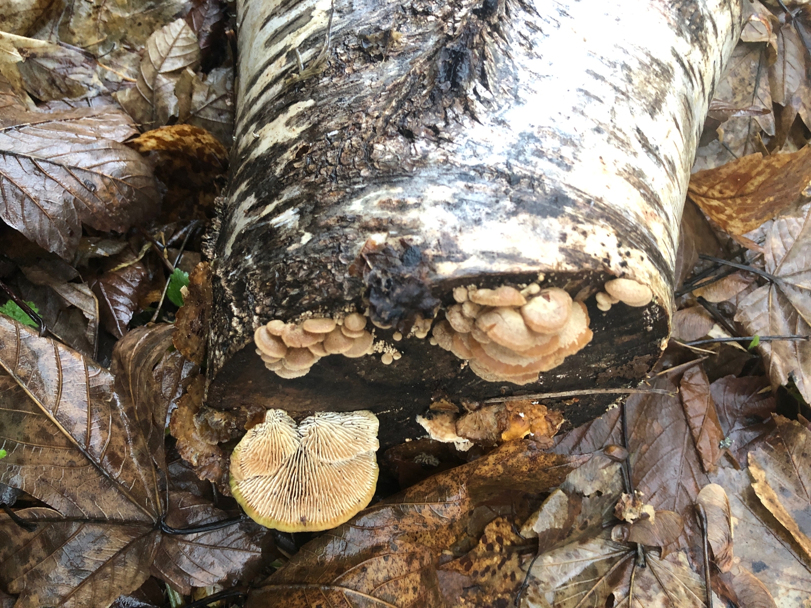 Zuerst der Birkenstamm von oben mit Birkenblättling von unten und Herbem Zwergknäueling von oben. Schlecht zu sehen, aber Adernzählinge gabs von oben und unten.
