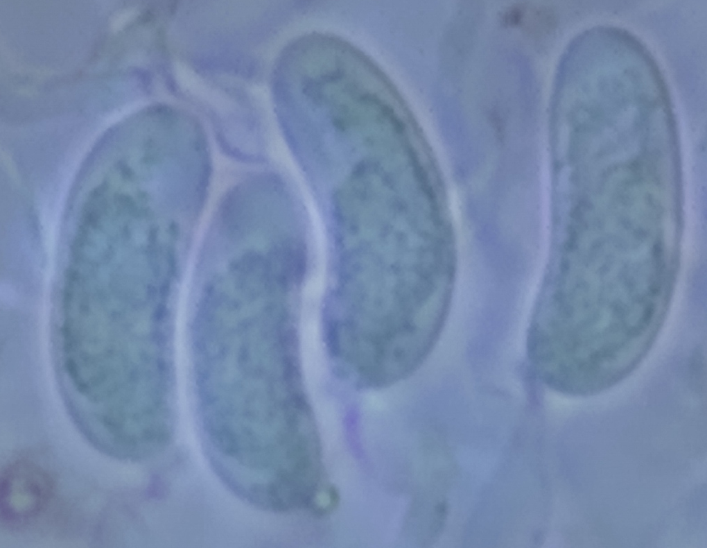 - Sporen bohnenförmig, typisch etwa 3,5 µm breit, 10 µm lang (Bild 4)