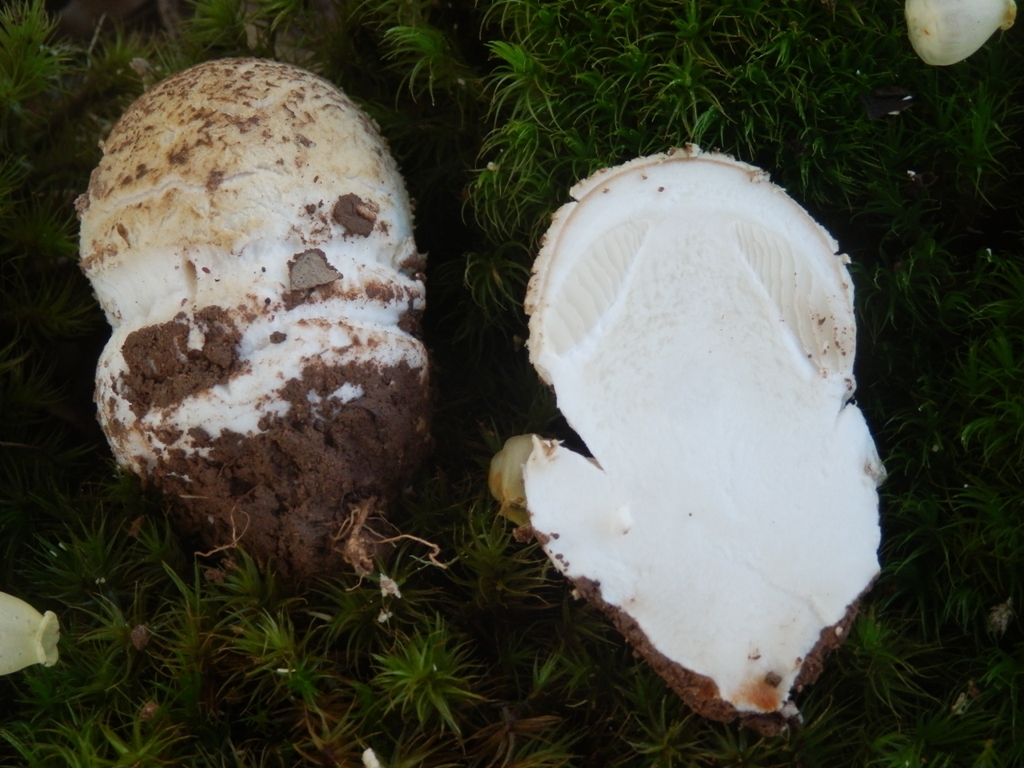 Hut: 6 cm, grau-braun mit grauen Velumsresten, Rand gerieft,
