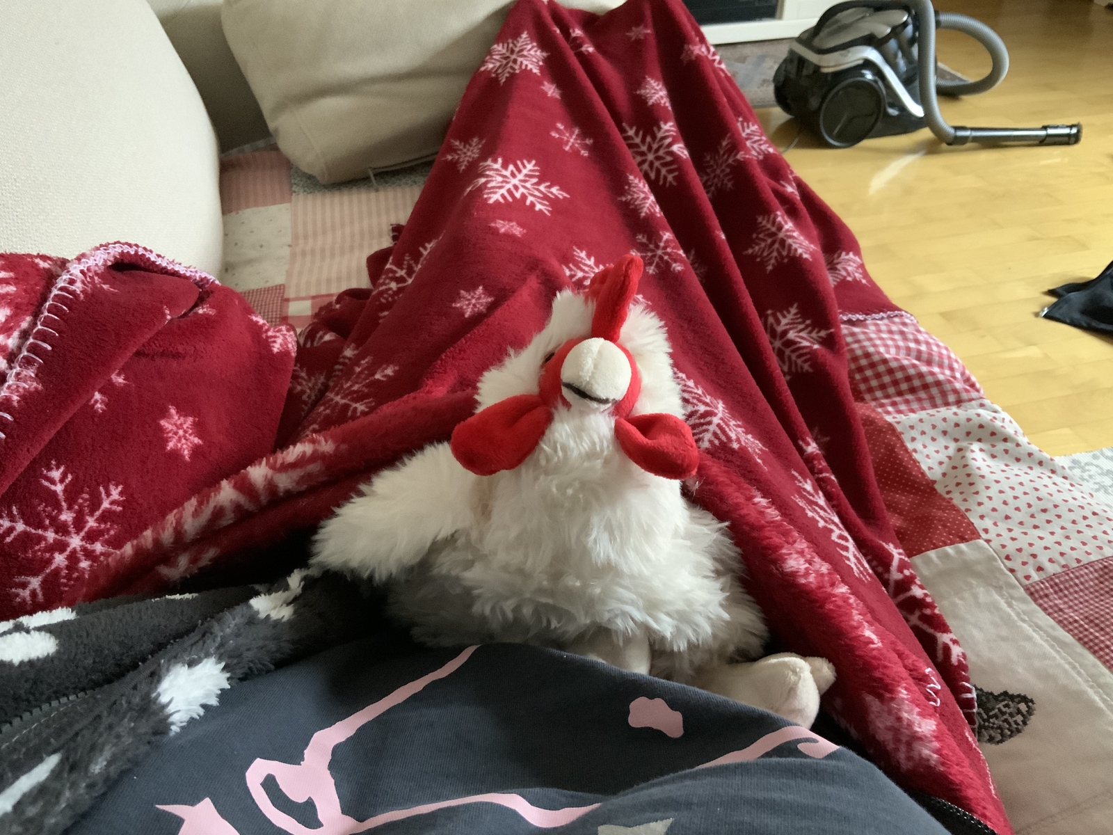 Also hüpfen sie nun auf dem Bett rum und ich darf das Wärmehuhn verwenden.