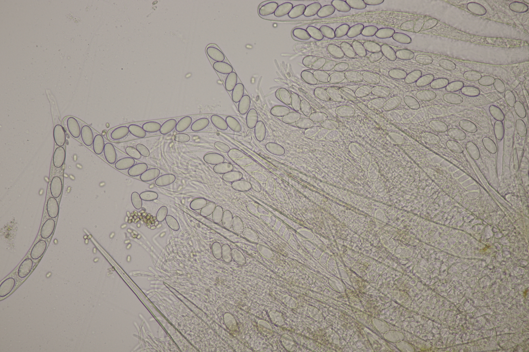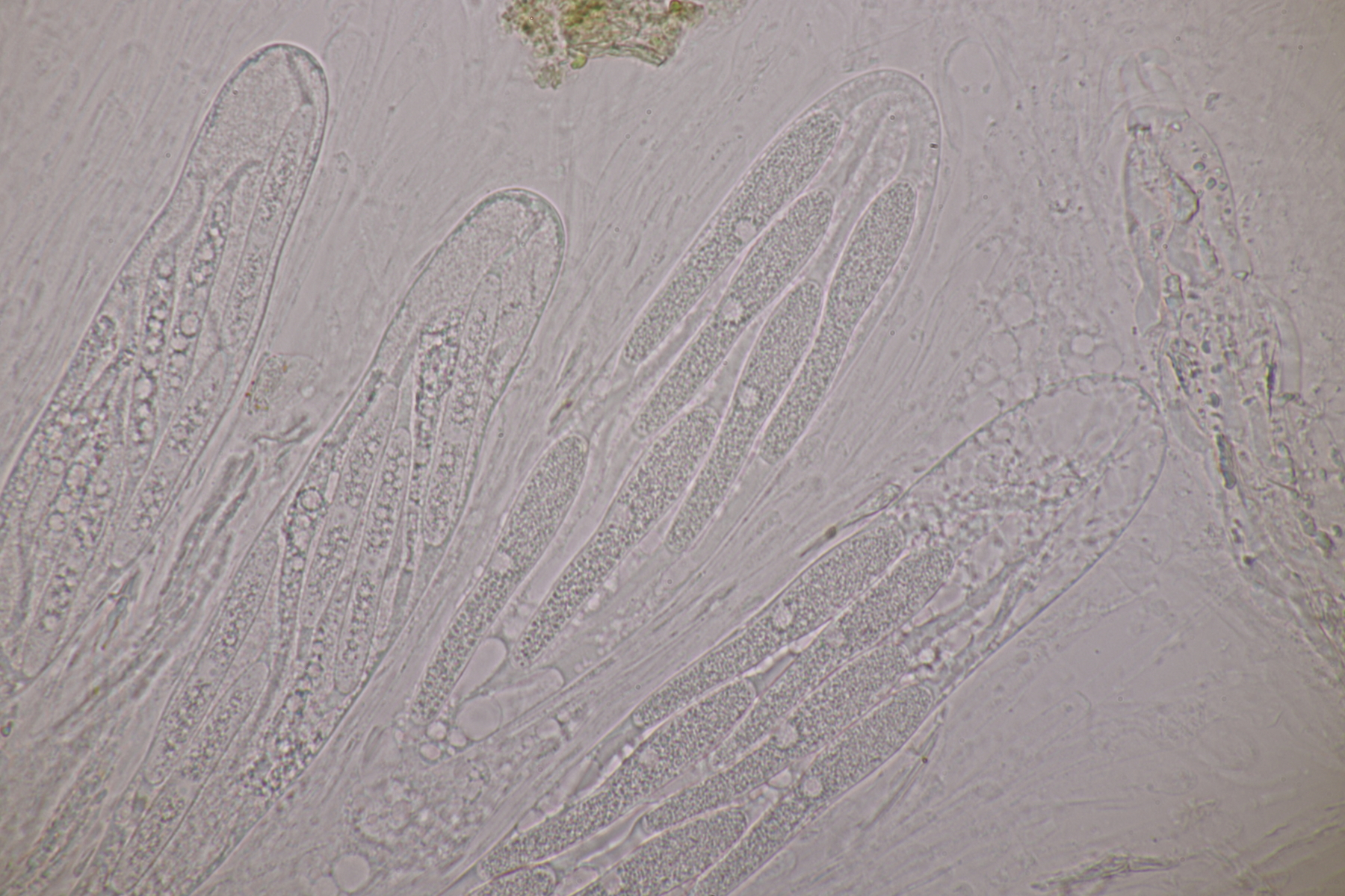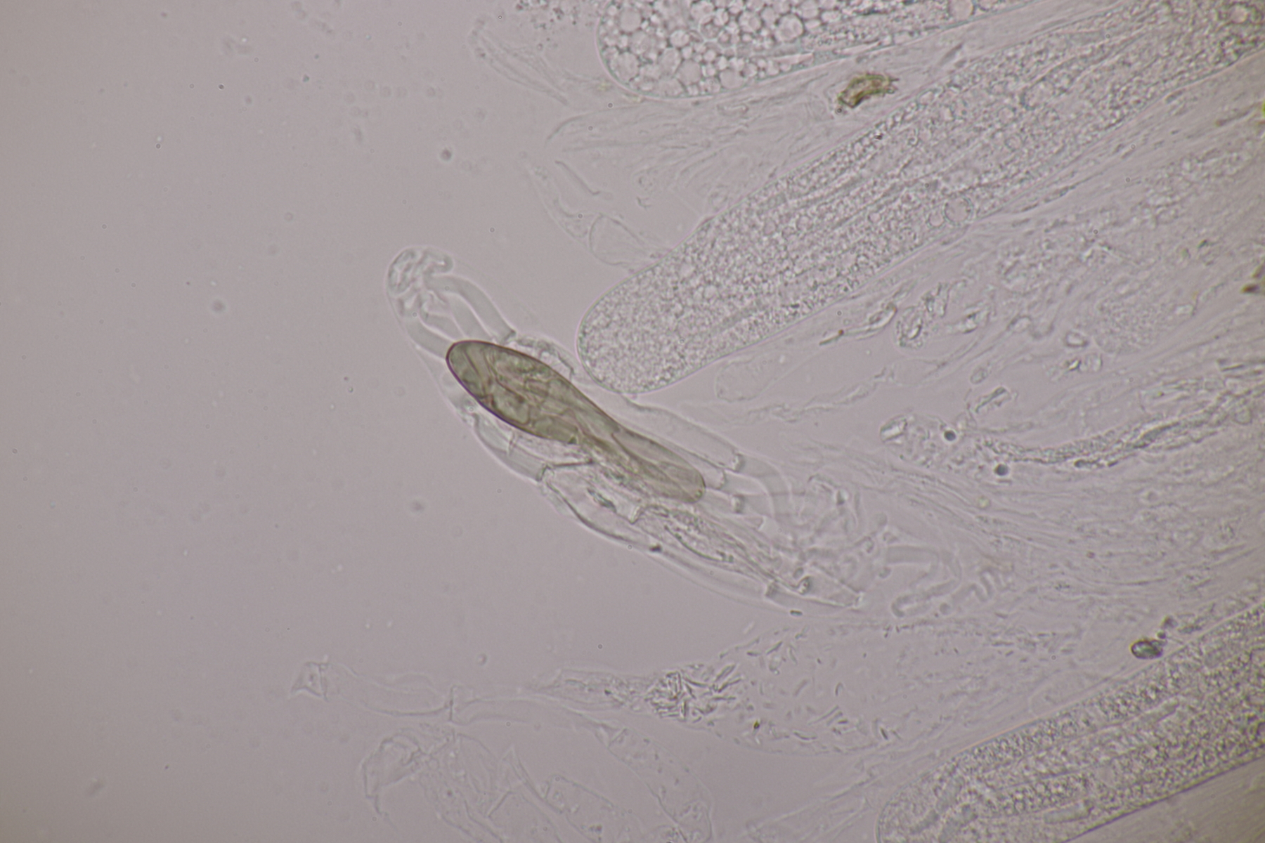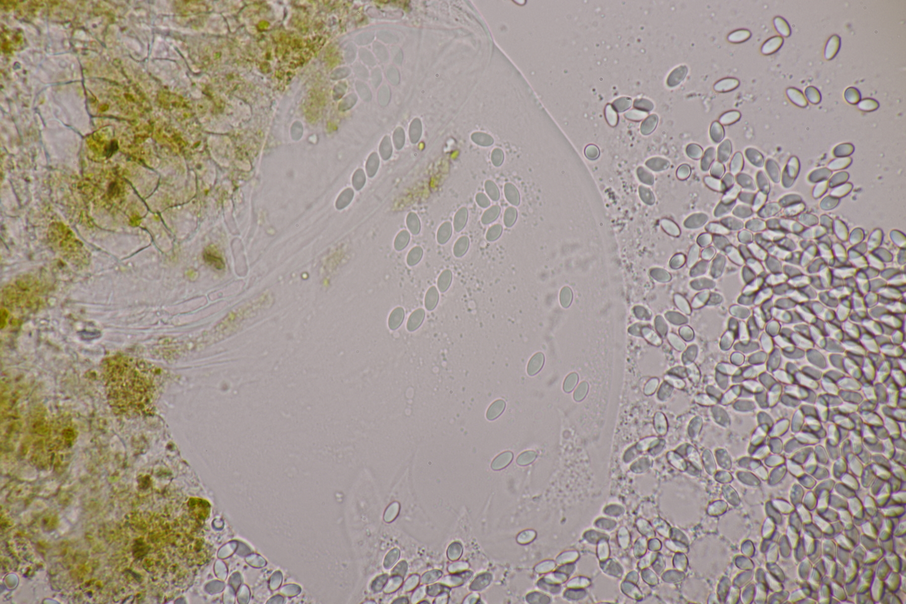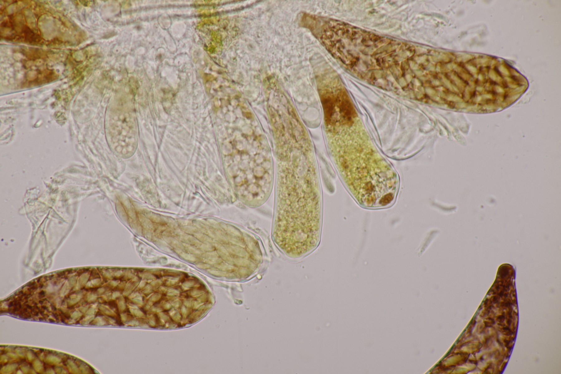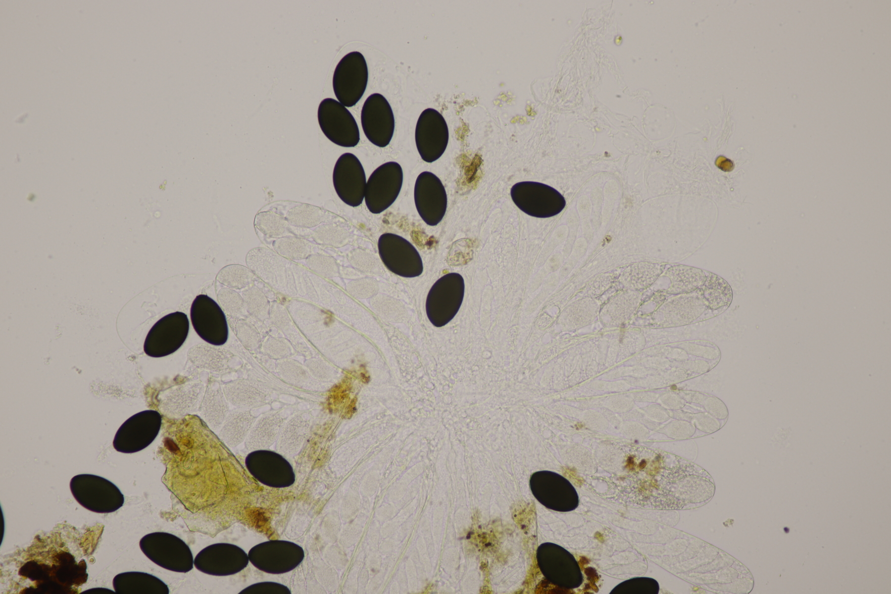 7. Ich habe zwar keine Sporen gezählt, tendiere aber zu 256 Sporen pro Ascus und damit zu Podospora curvicolla. Caudae waren definitiv nicht aus zwei Filamenten bestehend, wie das bei P. granulatostriata mit 512 Sporen der Fall ist, sondern sahen "normal" aus und waren ziemlich unscheinbar.