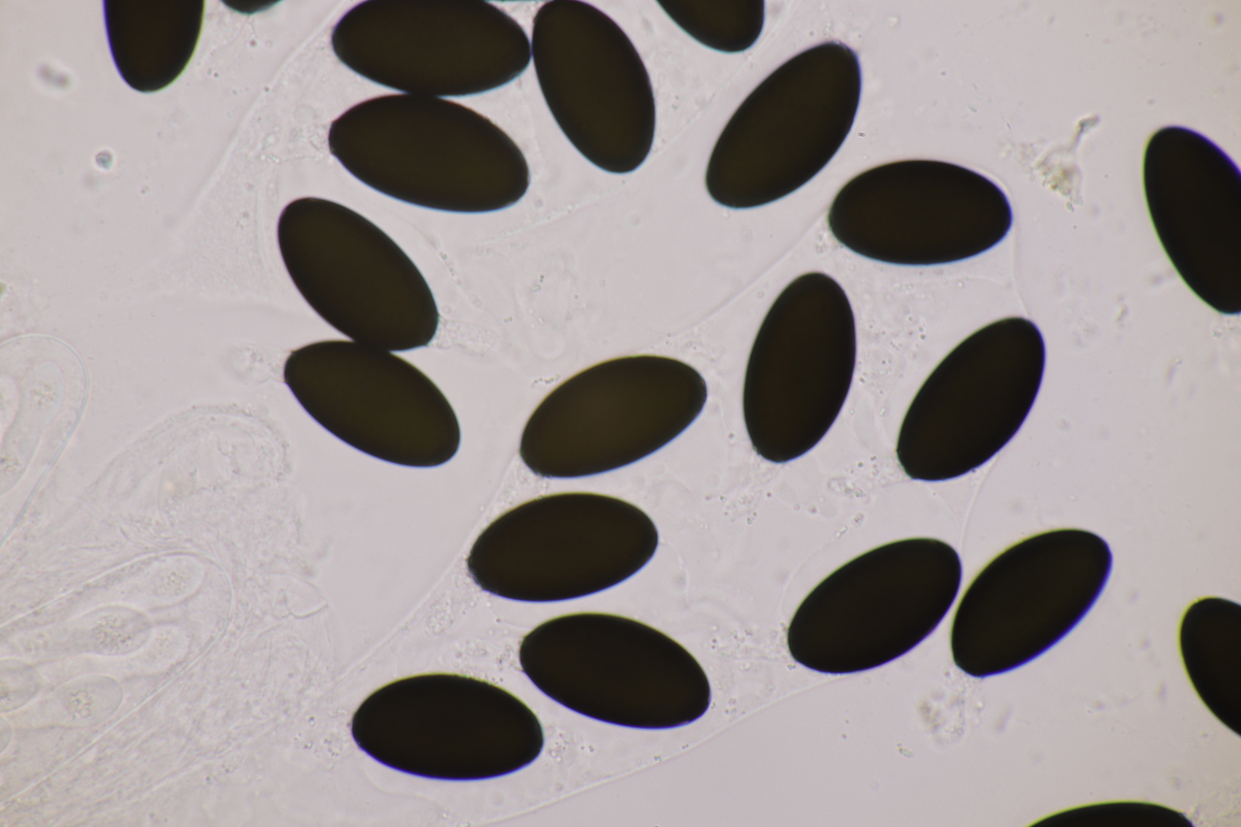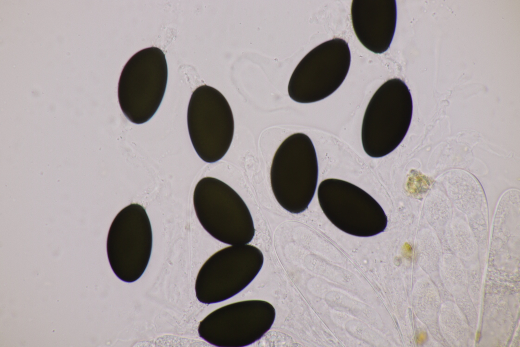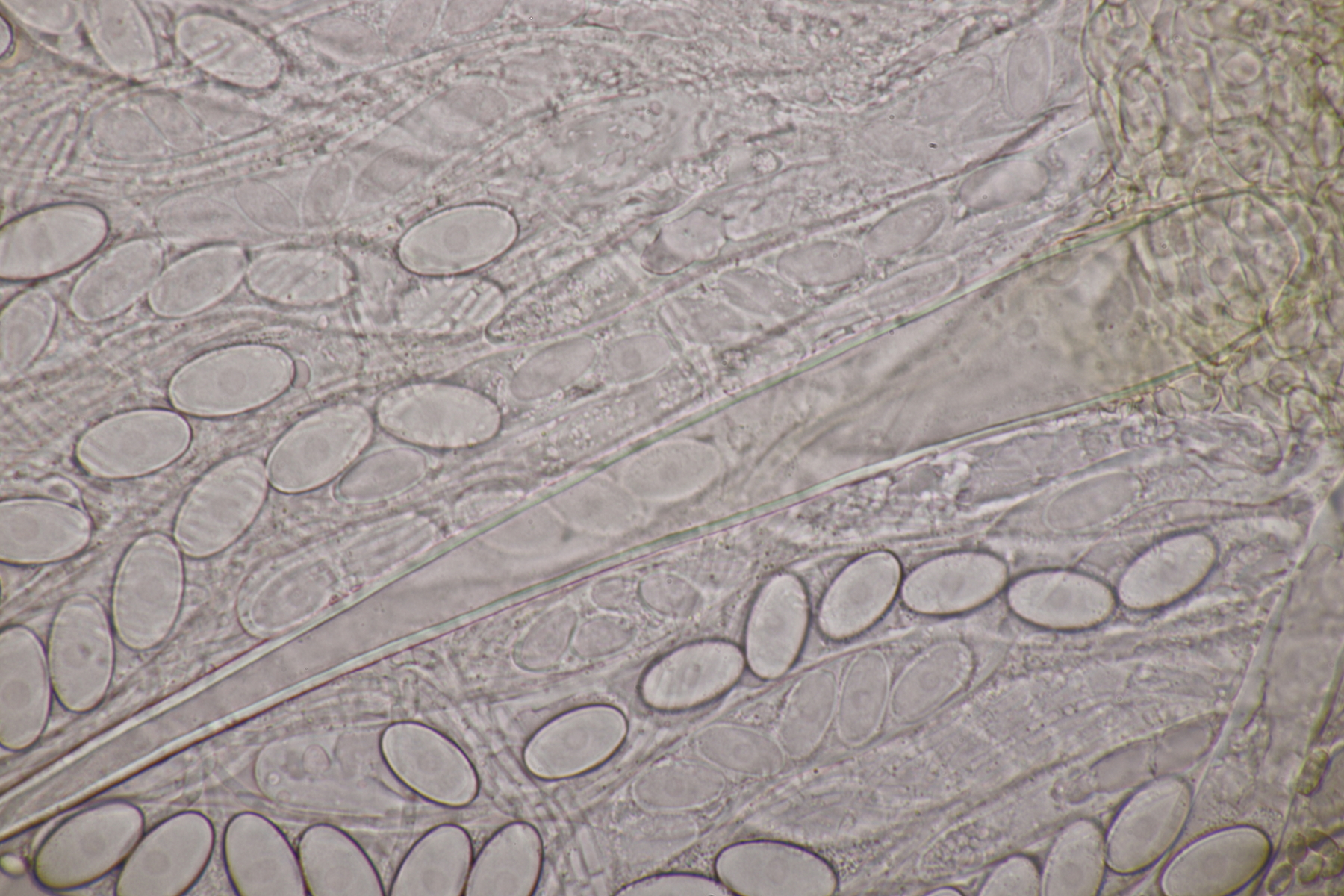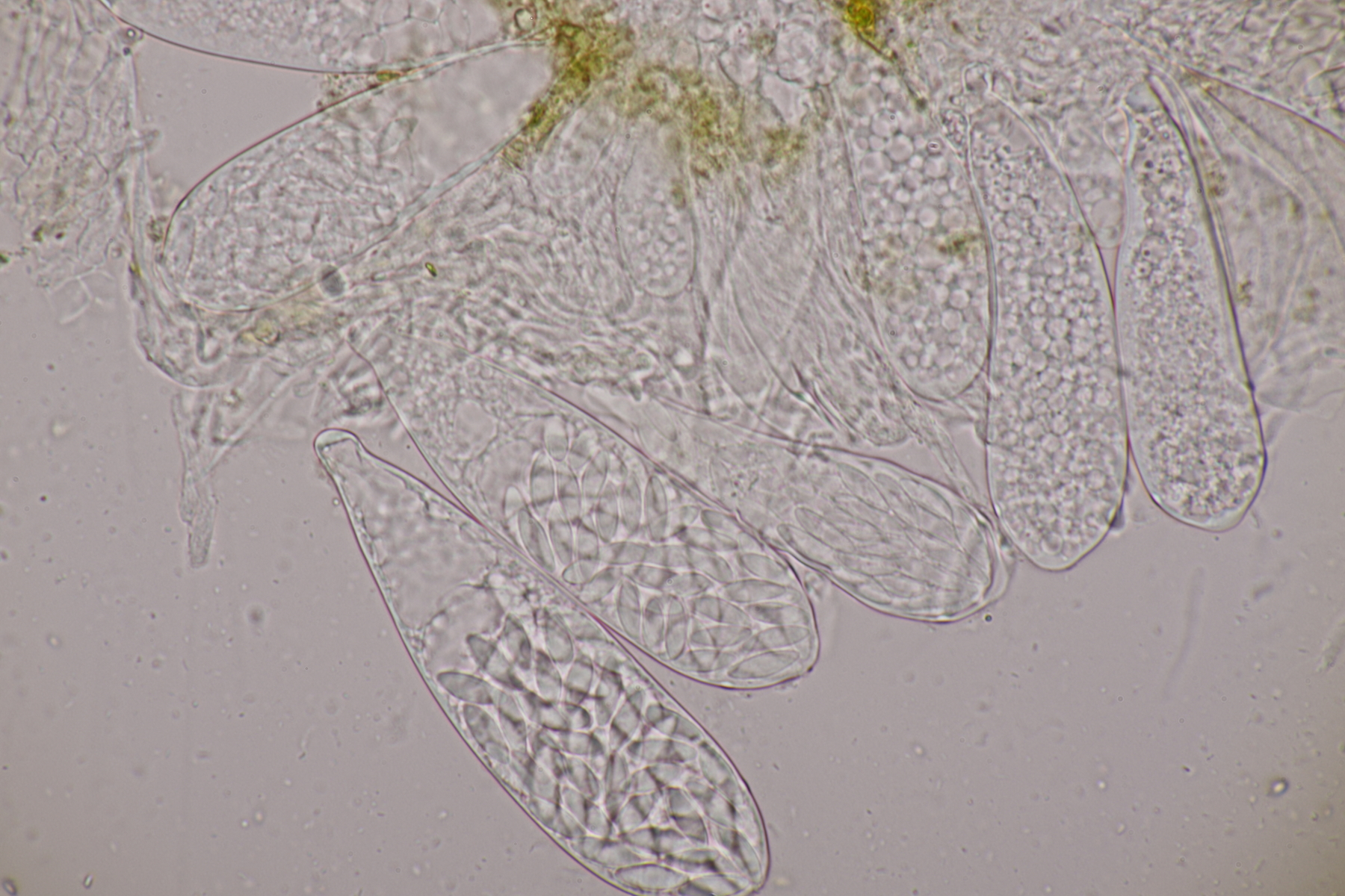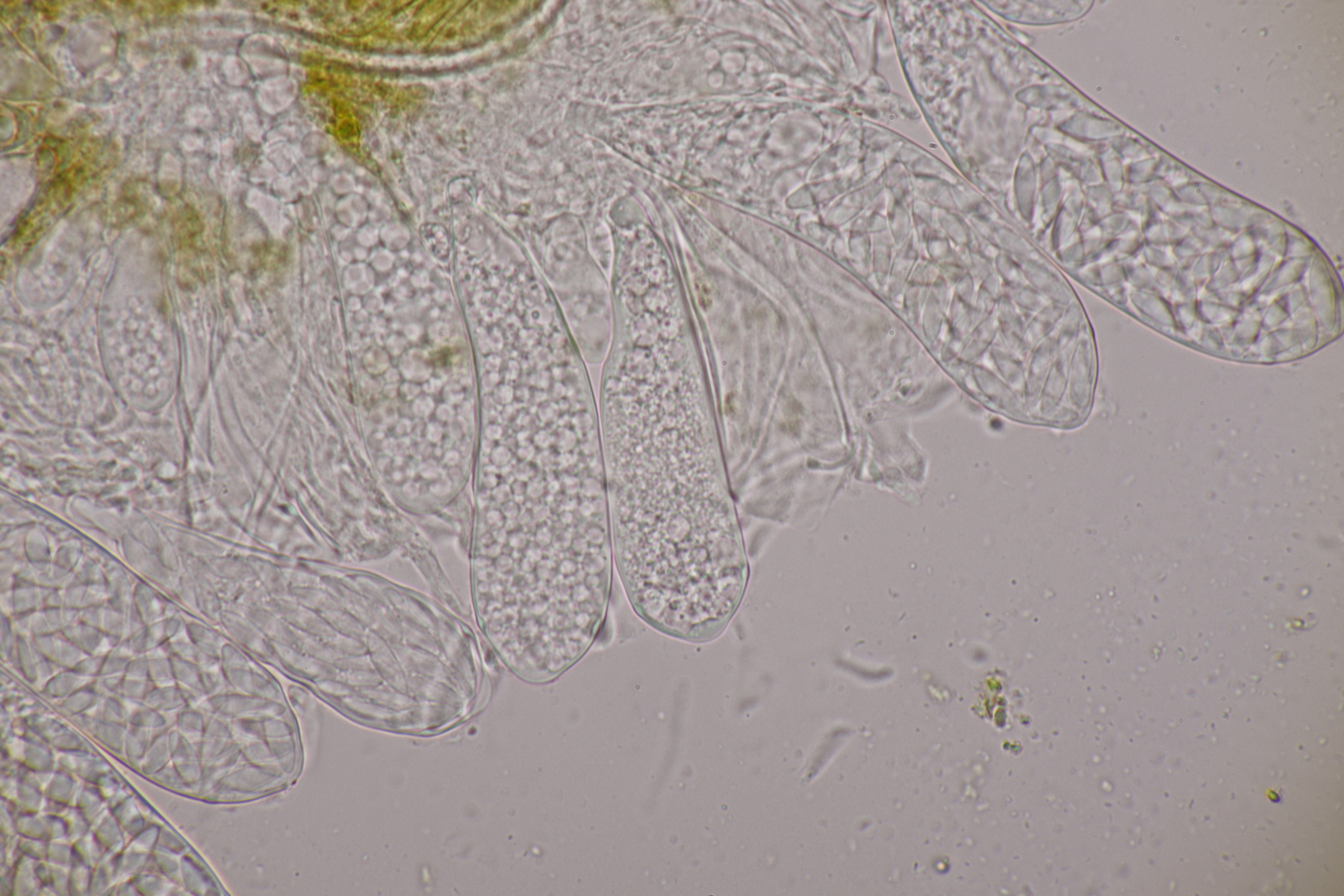7. Ich habe zwar keine Sporen gezählt, tendiere aber zu 256 Sporen pro Ascus und damit zu Podospora curvicolla. Caudae waren definitiv nicht aus zwei Filamenten bestehend, wie das bei P. granulatostriata mit 512 Sporen der Fall ist, sondern sahen "normal" aus und waren ziemlich unscheinbar.