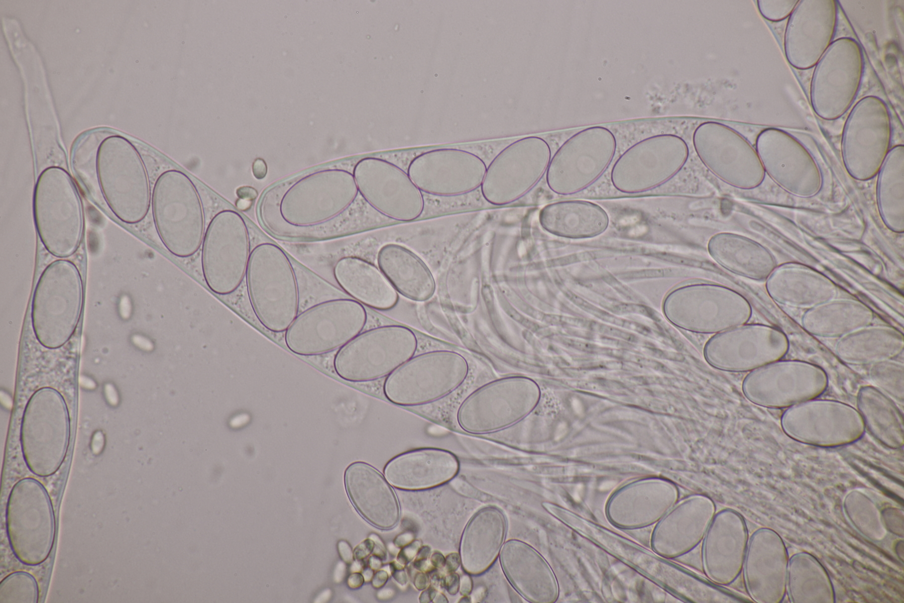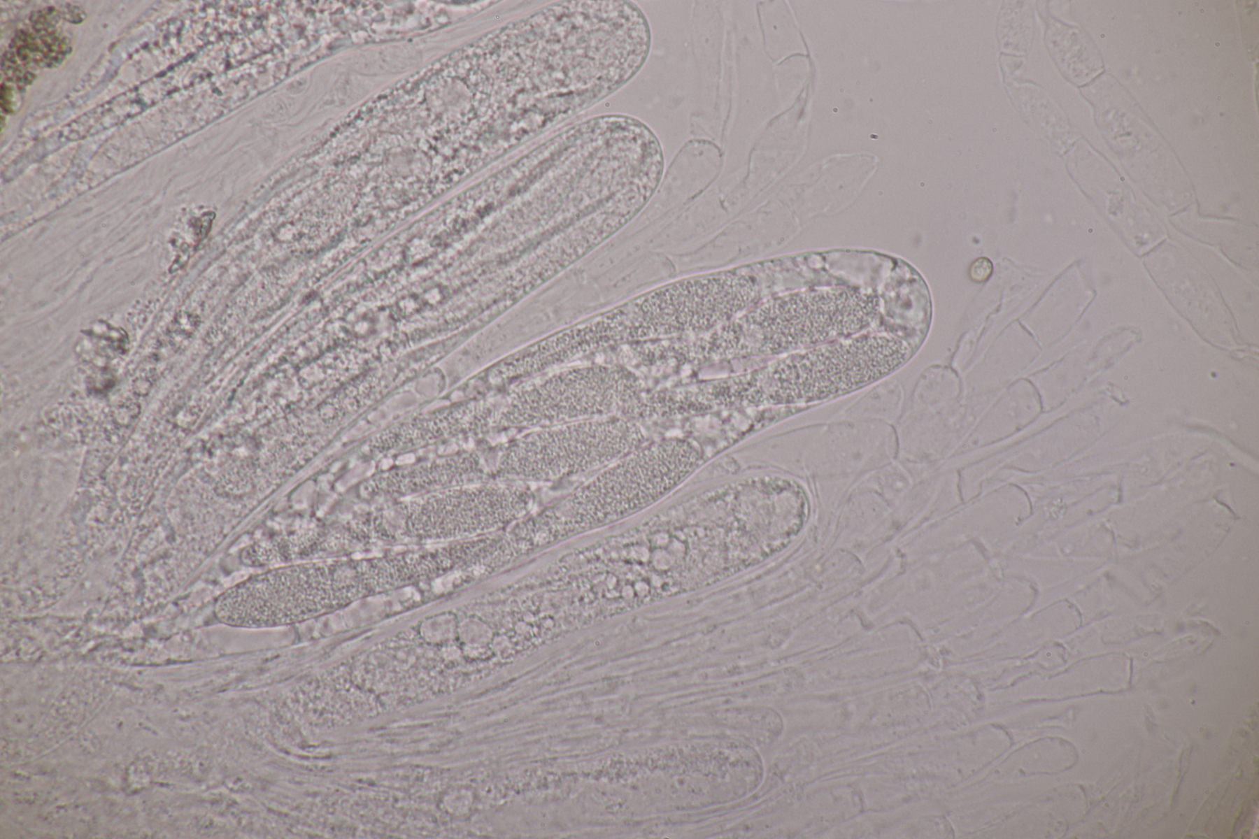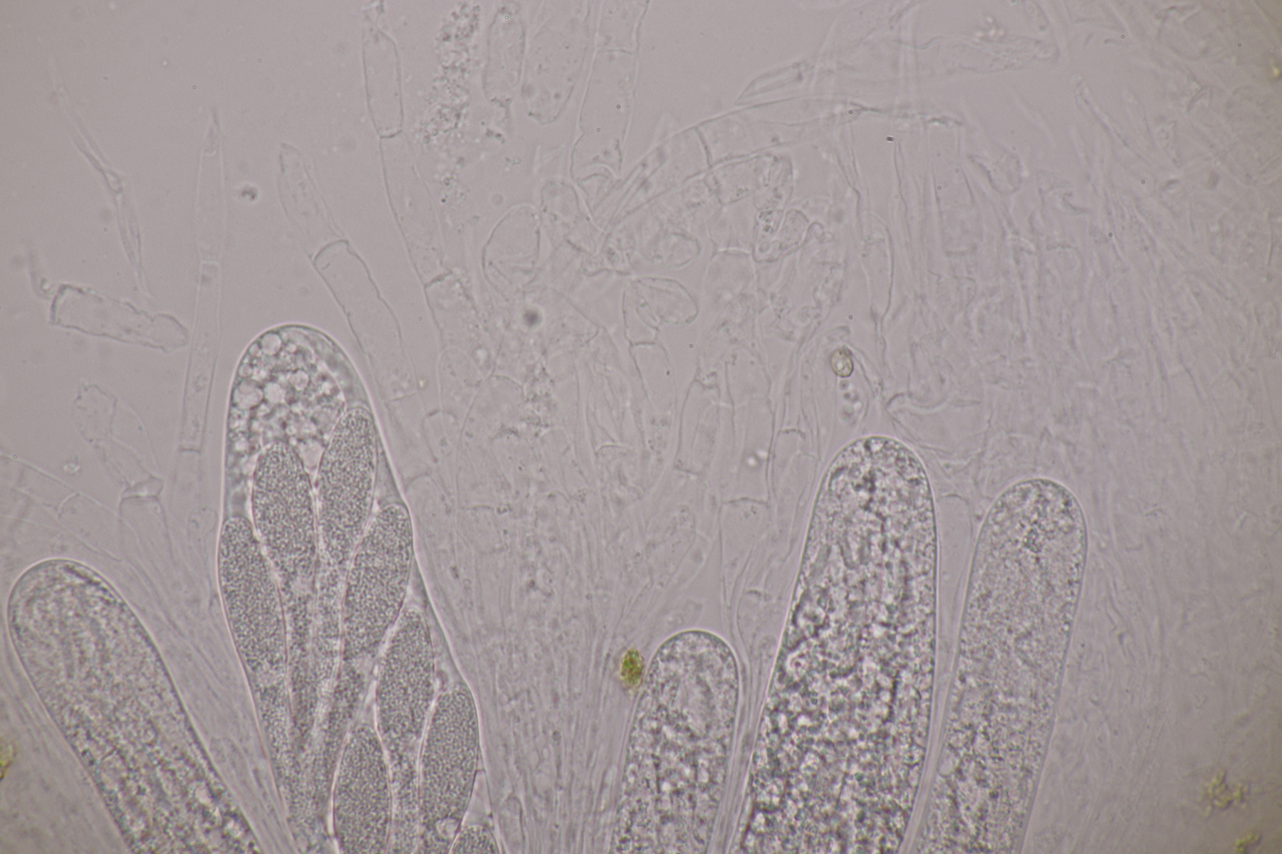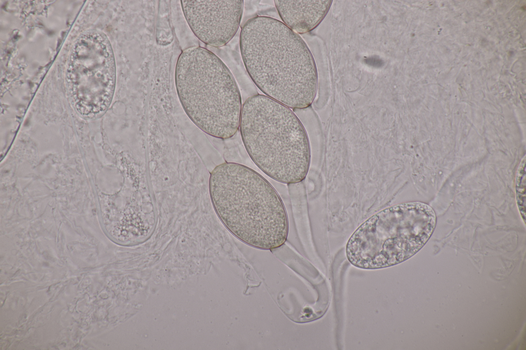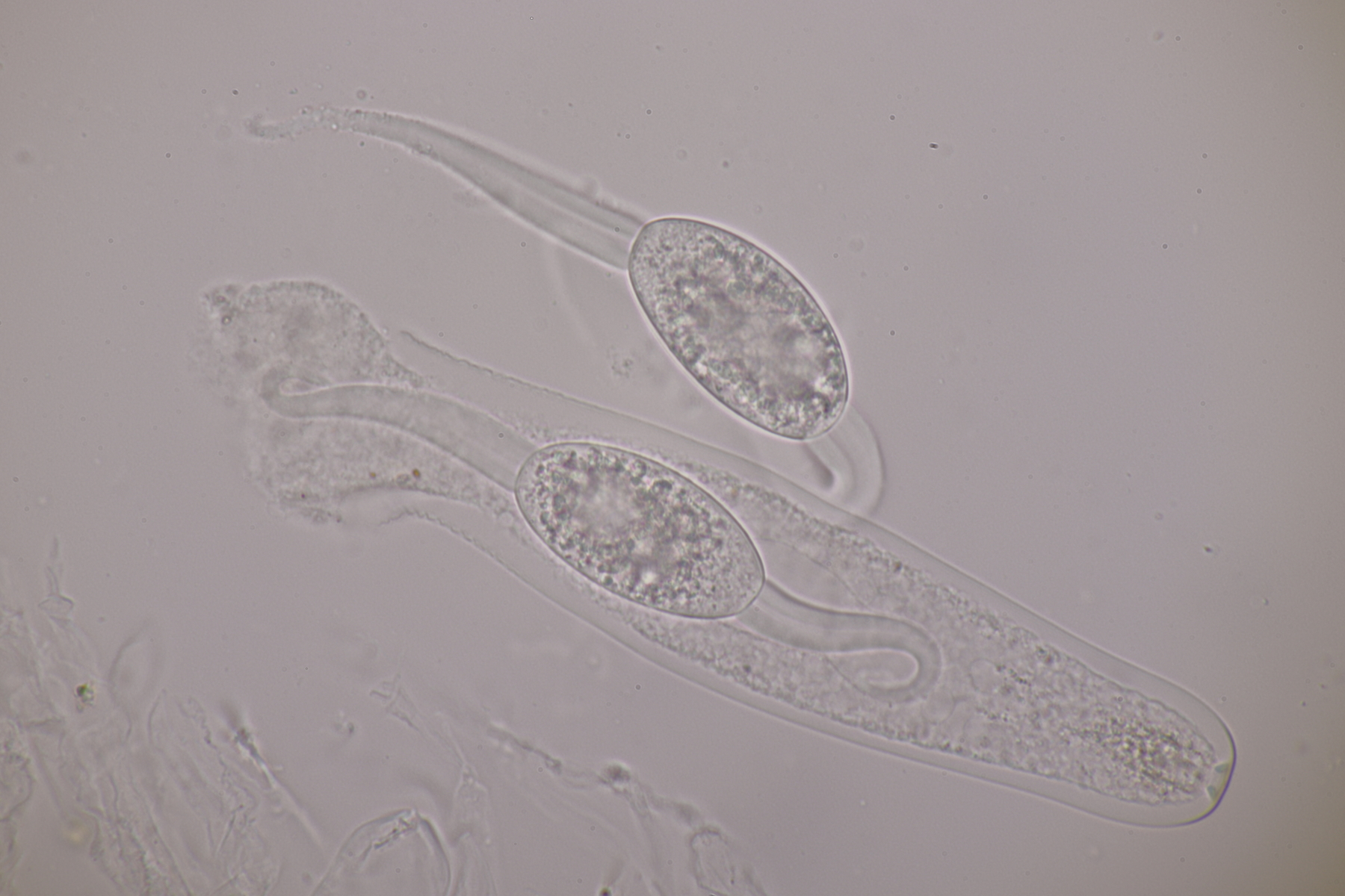 7. Ich habe zwar keine Sporen gezählt, tendiere aber zu 256 Sporen pro Ascus und damit zu Podospora curvicolla. Caudae waren definitiv nicht aus zwei Filamenten bestehend, wie das bei P. granulatostriata mit 512 Sporen der Fall ist, sondern sahen "normal" aus und waren ziemlich unscheinbar.