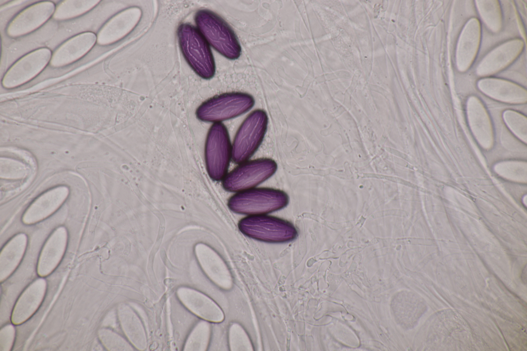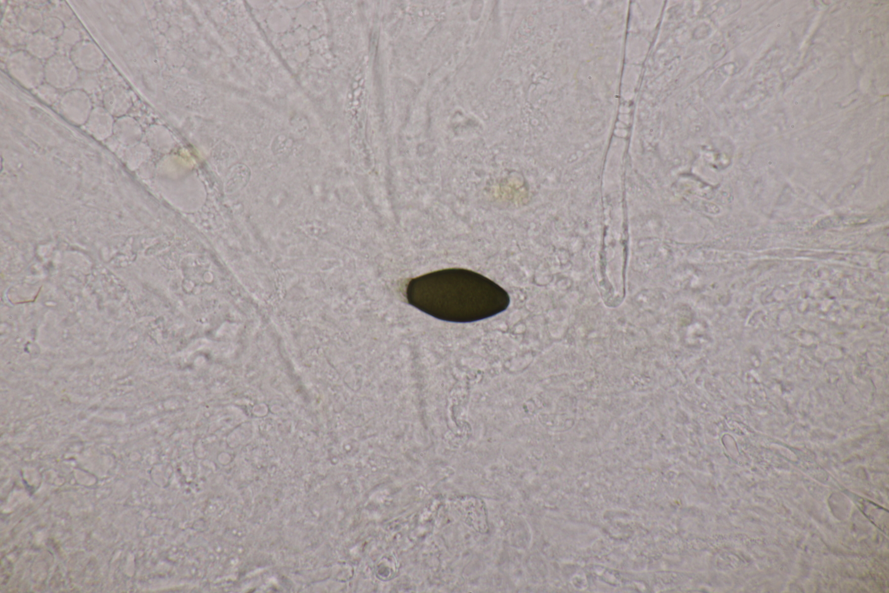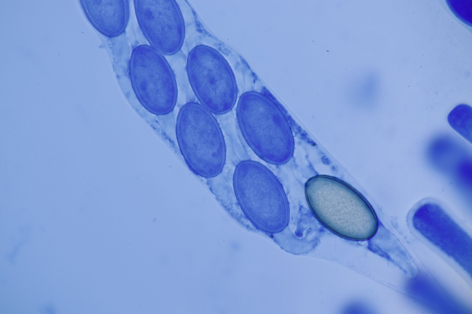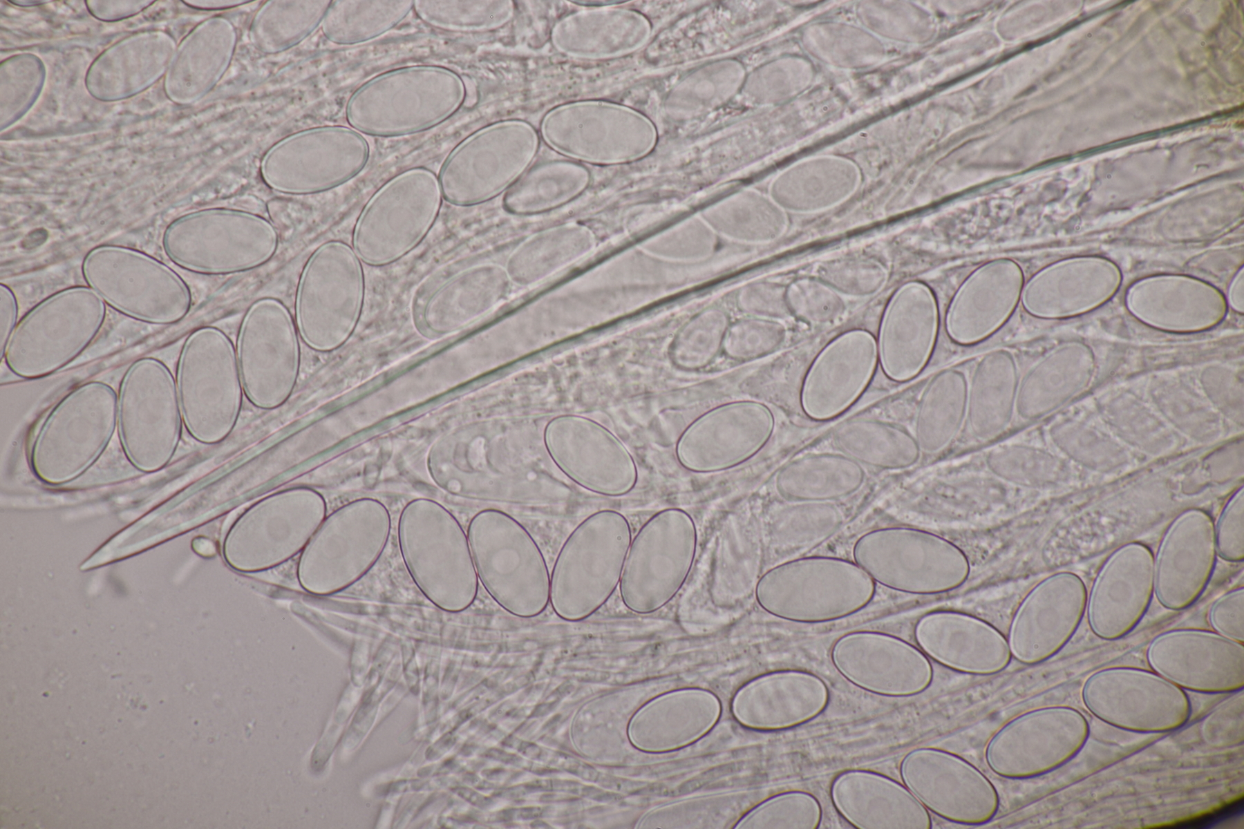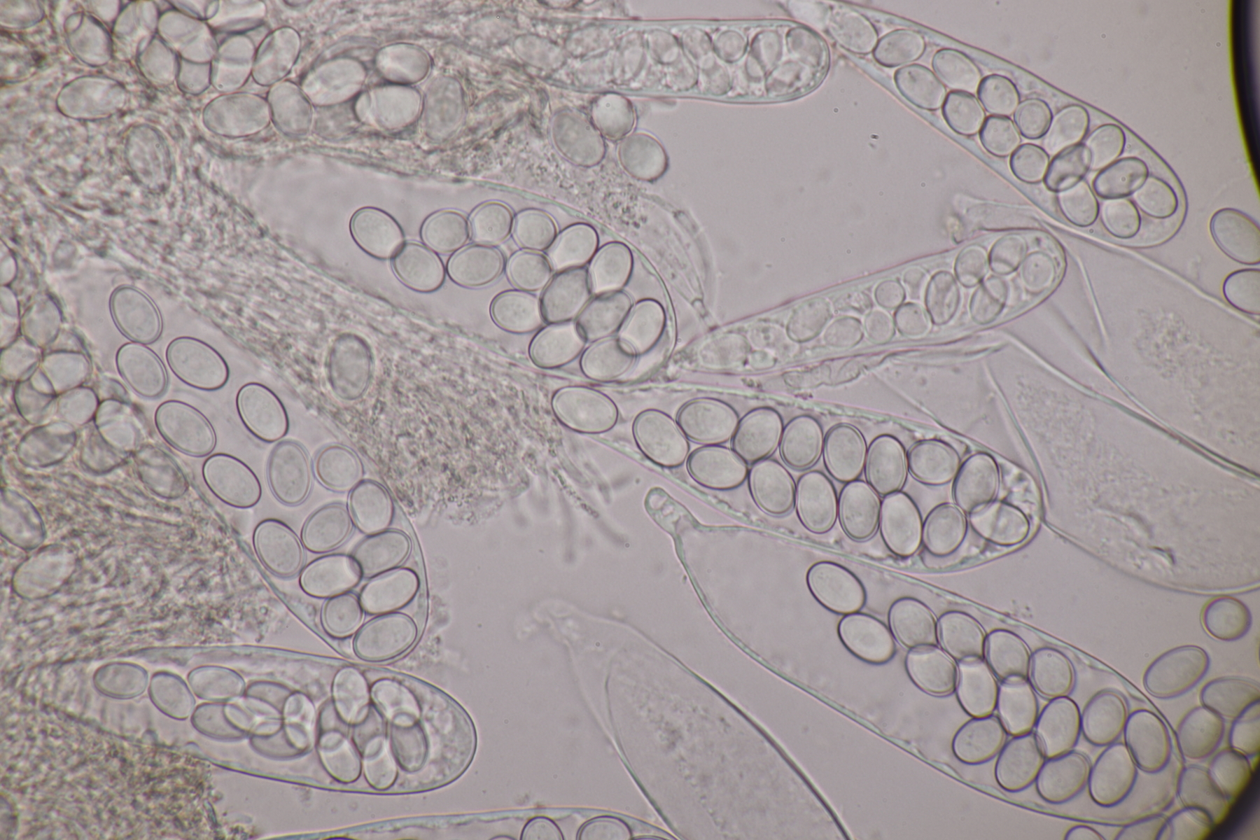 7. Ich habe zwar keine Sporen gezählt, tendiere aber zu 256 Sporen pro Ascus und damit zu Podospora curvicolla. Caudae waren definitiv nicht aus zwei Filamenten bestehend, wie das bei P. granulatostriata mit 512 Sporen der Fall ist, sondern sahen "normal" aus und waren ziemlich unscheinbar.