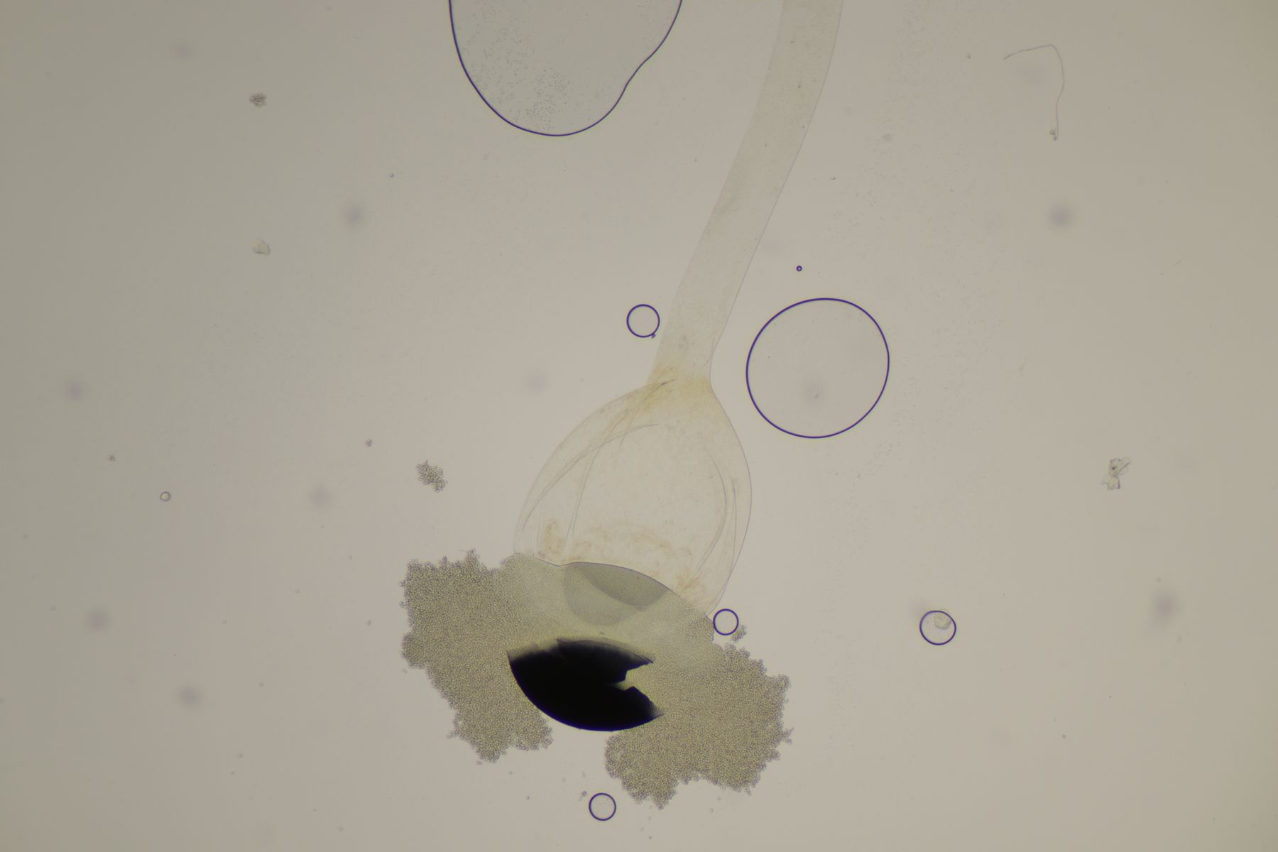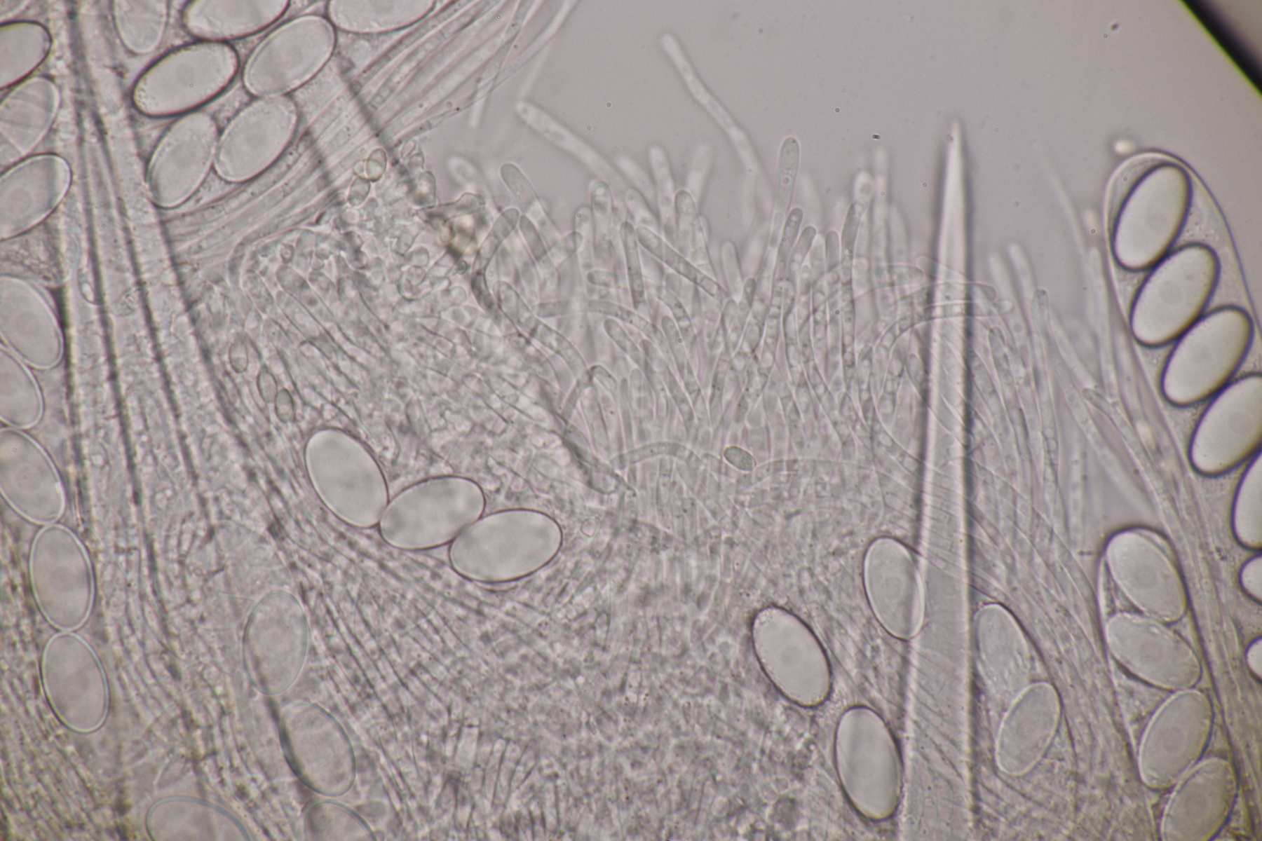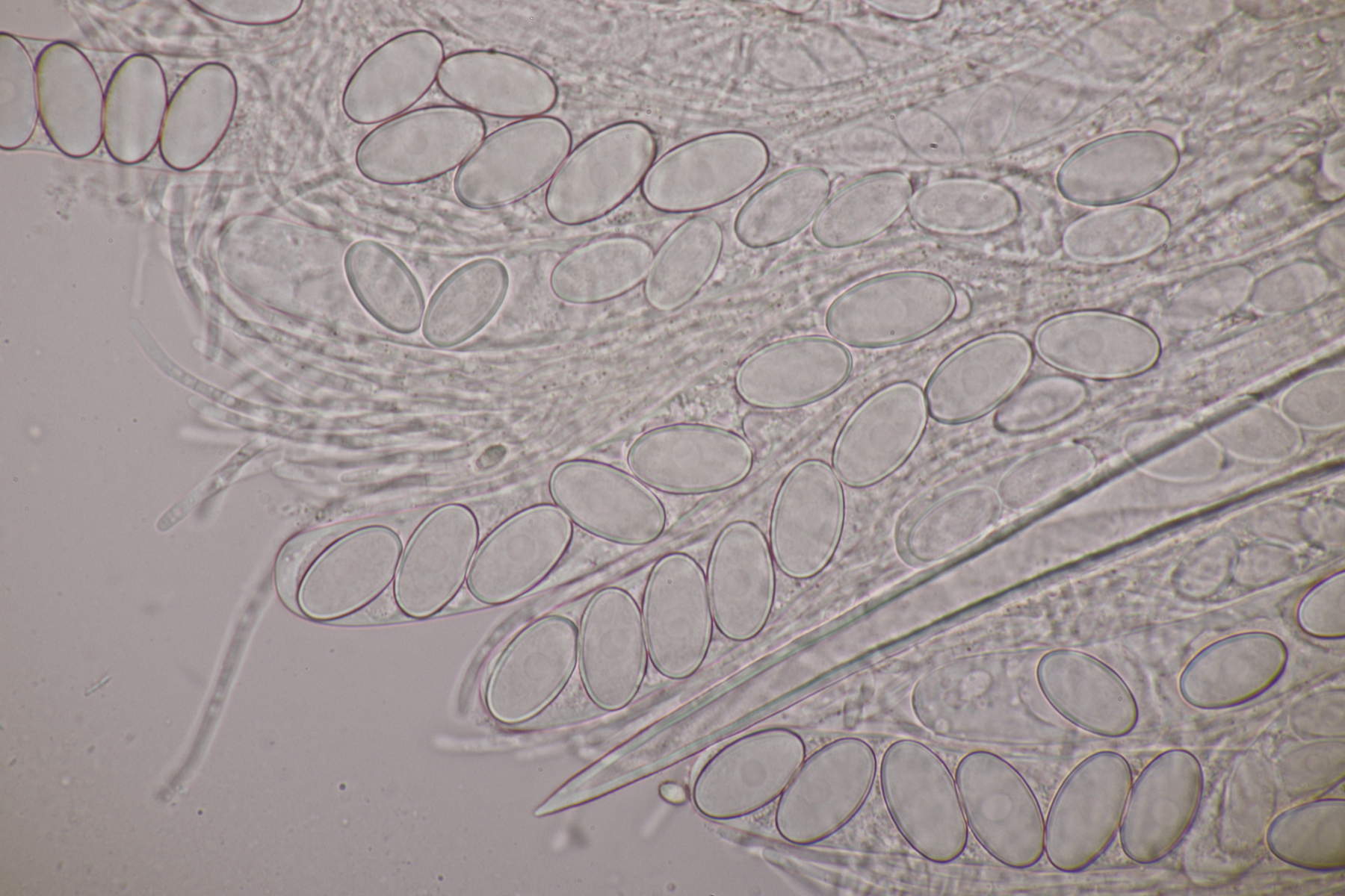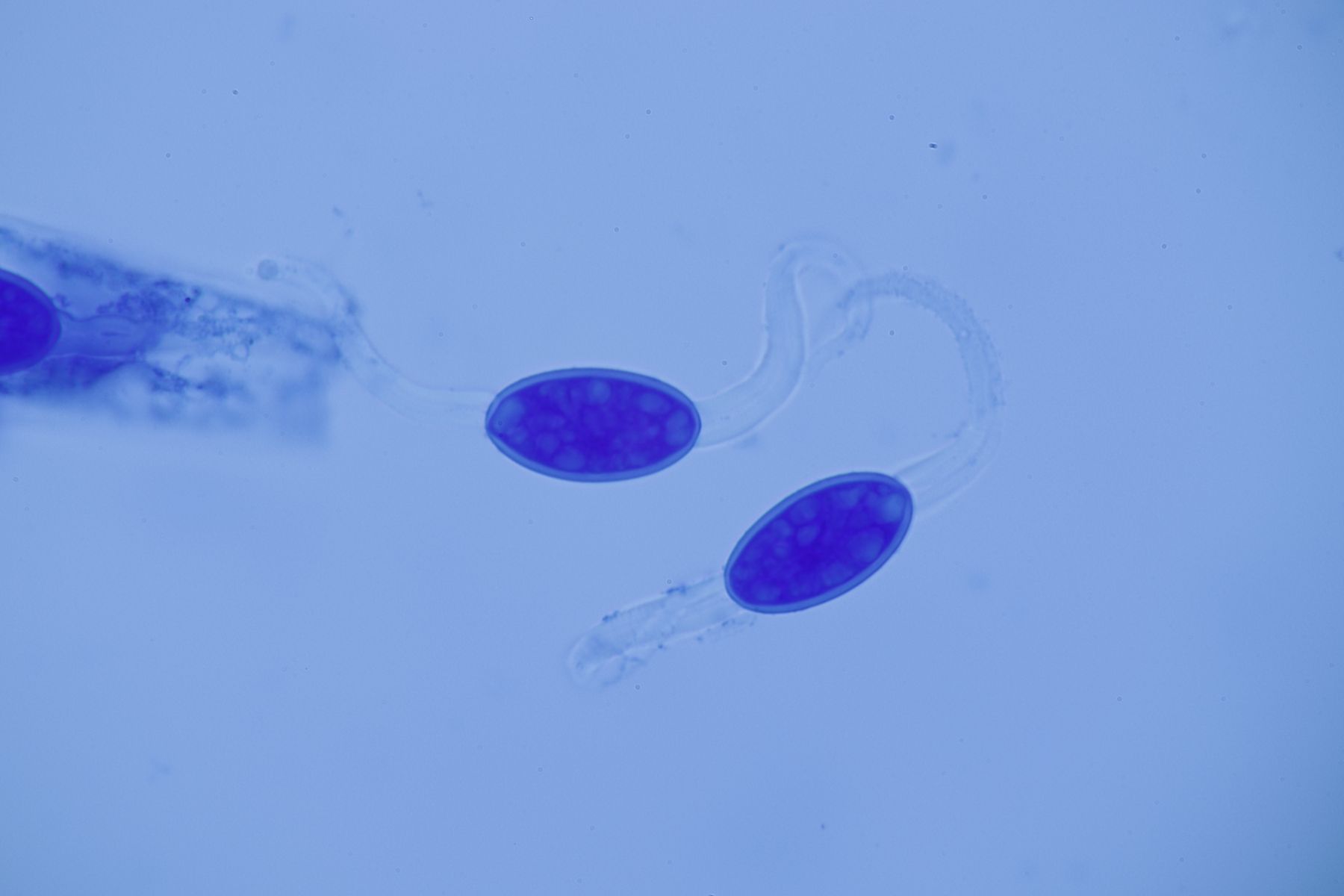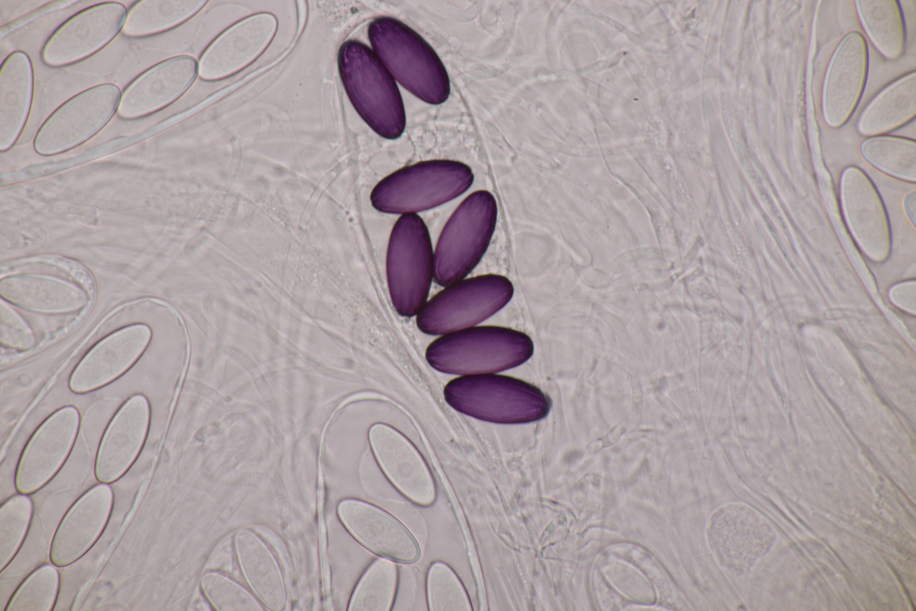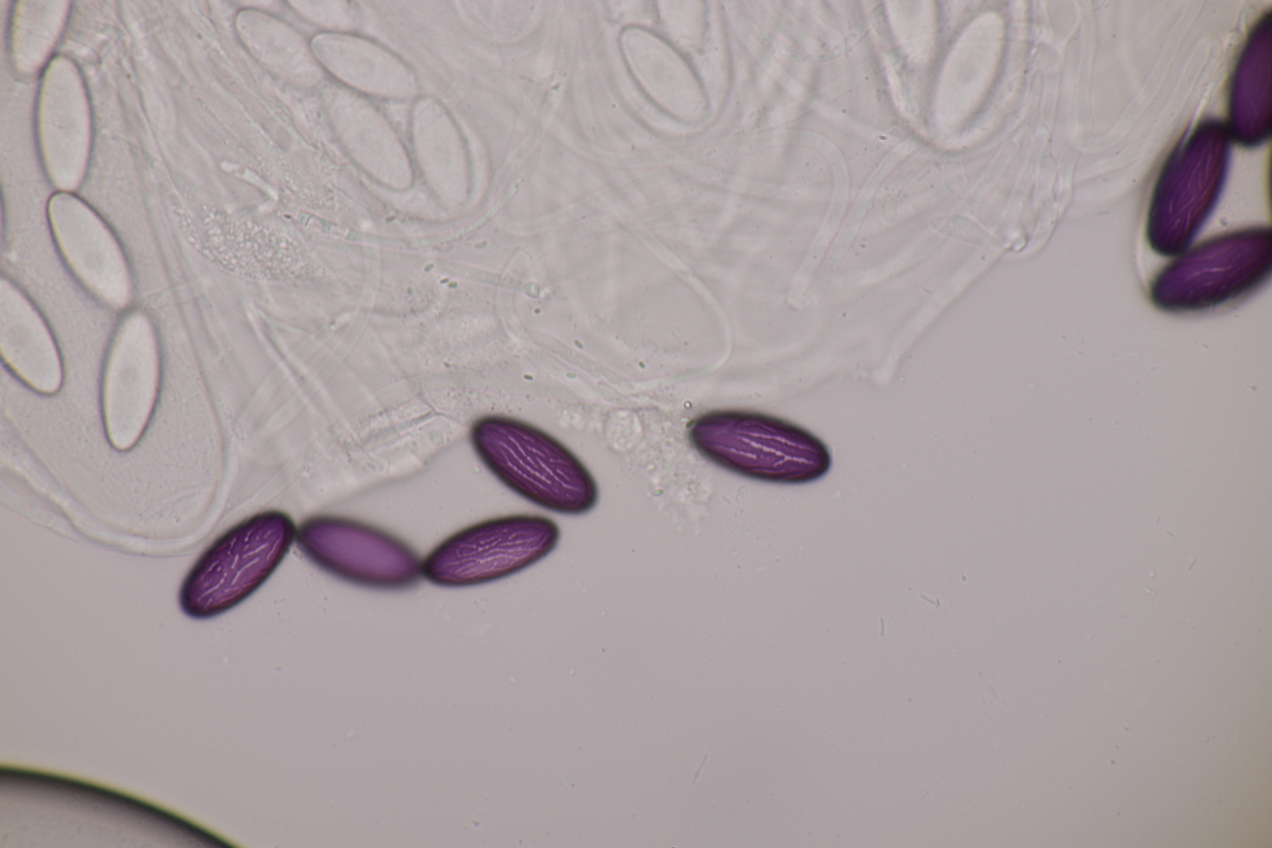 7. Ich habe zwar keine Sporen gezählt, tendiere aber zu 256 Sporen pro Ascus und damit zu Podospora curvicolla. Caudae waren definitiv nicht aus zwei Filamenten bestehend, wie das bei P. granulatostriata mit 512 Sporen der Fall ist, sondern sahen "normal" aus und waren ziemlich unscheinbar.