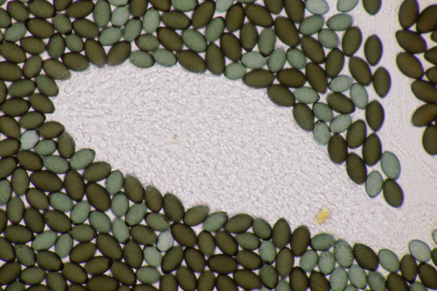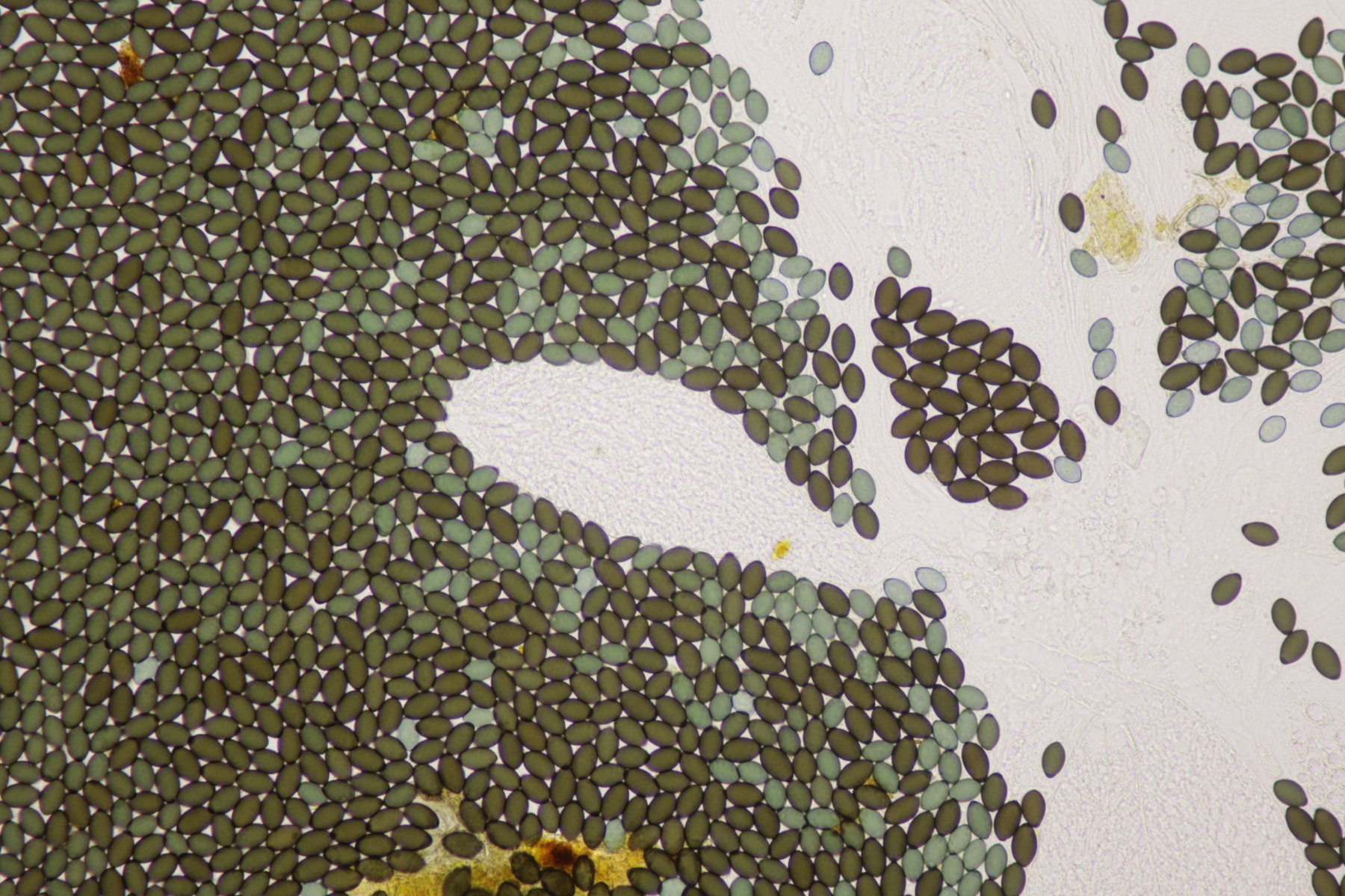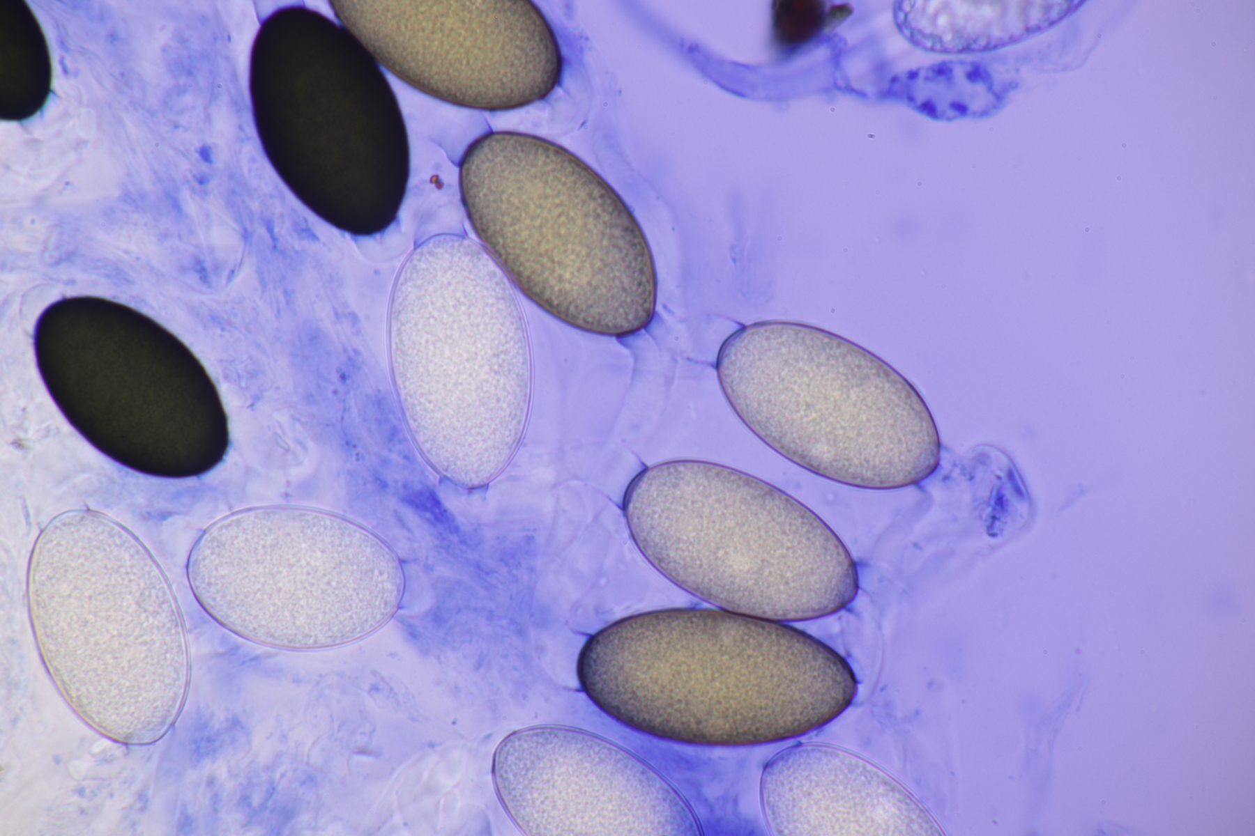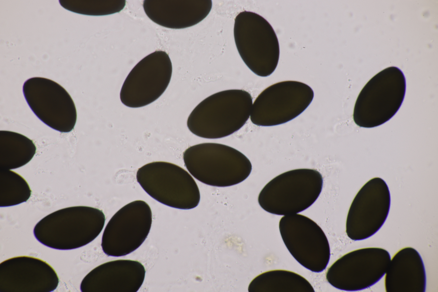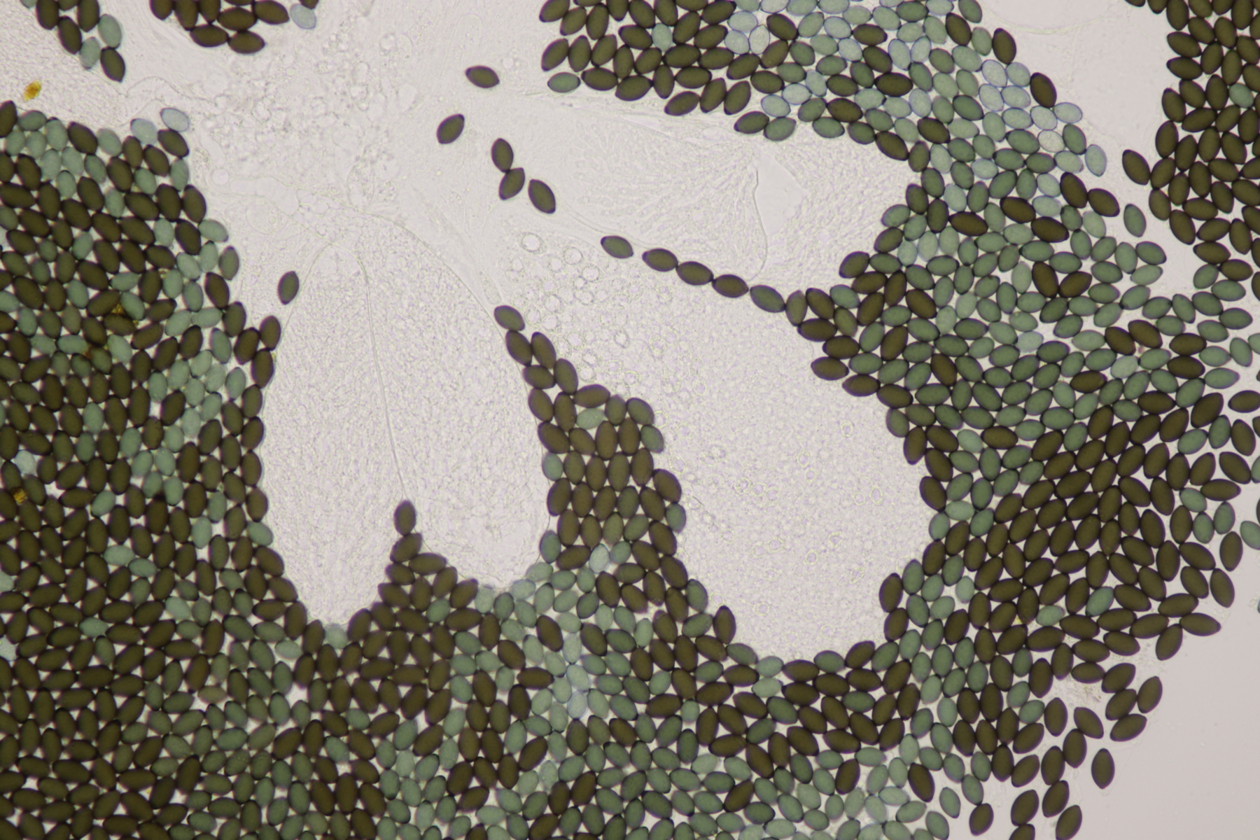 7. Ich habe zwar keine Sporen gezählt, tendiere aber zu 256 Sporen pro Ascus und damit zu Podospora curvicolla. Caudae waren definitiv nicht aus zwei Filamenten bestehend, wie das bei P. granulatostriata mit 512 Sporen der Fall ist, sondern sahen "normal" aus und waren ziemlich unscheinbar.