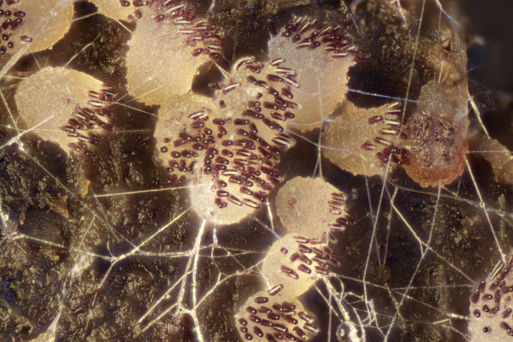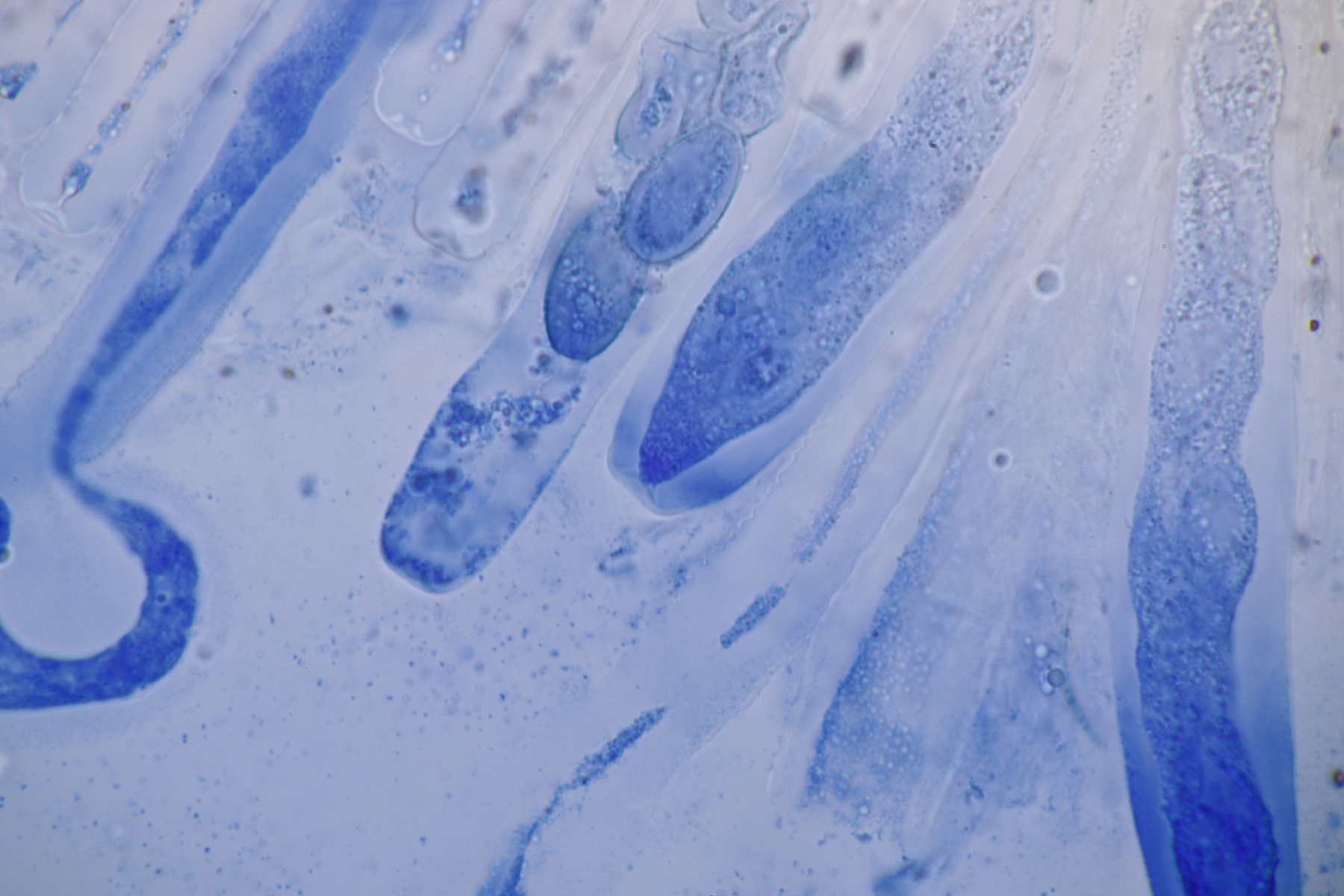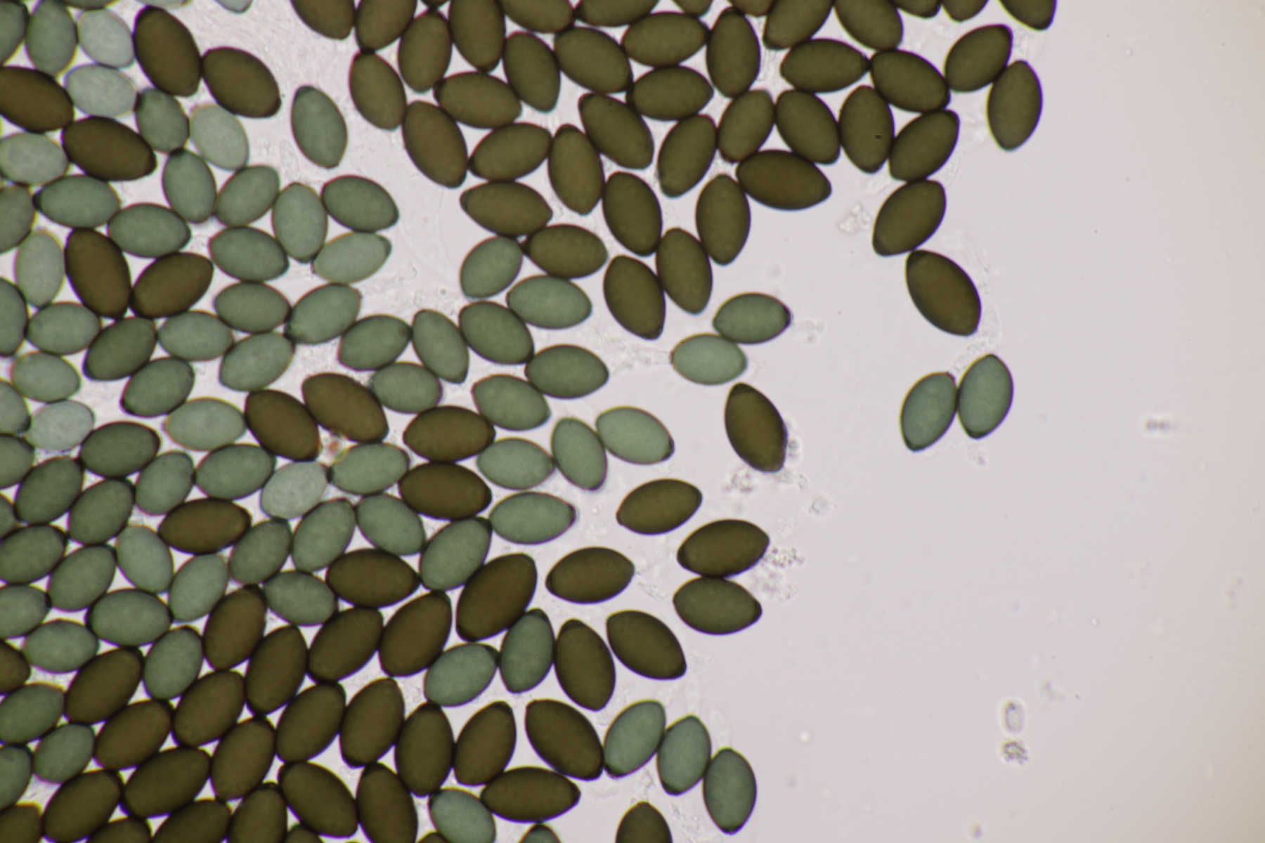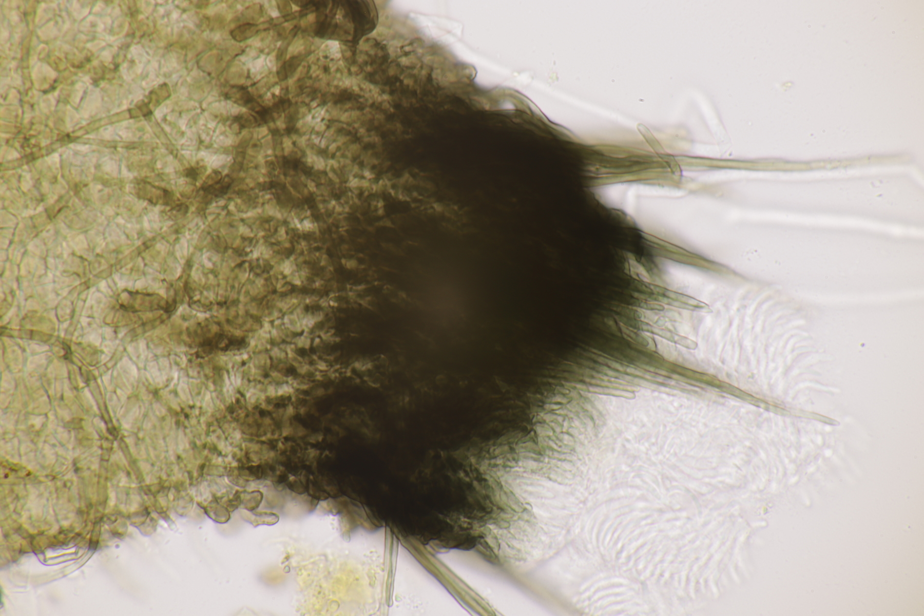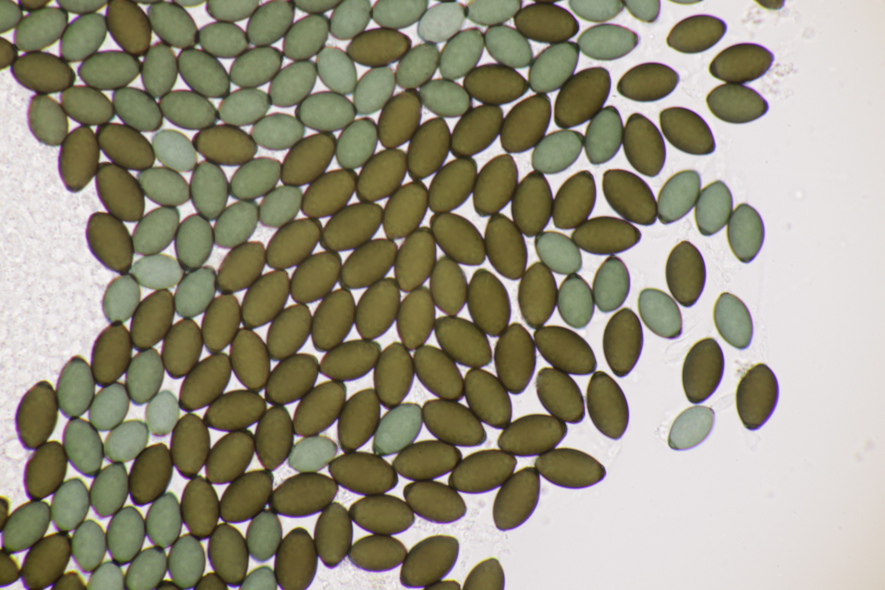 7. Ich habe zwar keine Sporen gezählt, tendiere aber zu 256 Sporen pro Ascus und damit zu Podospora curvicolla. Caudae waren definitiv nicht aus zwei Filamenten bestehend, wie das bei P. granulatostriata mit 512 Sporen der Fall ist, sondern sahen "normal" aus und waren ziemlich unscheinbar.