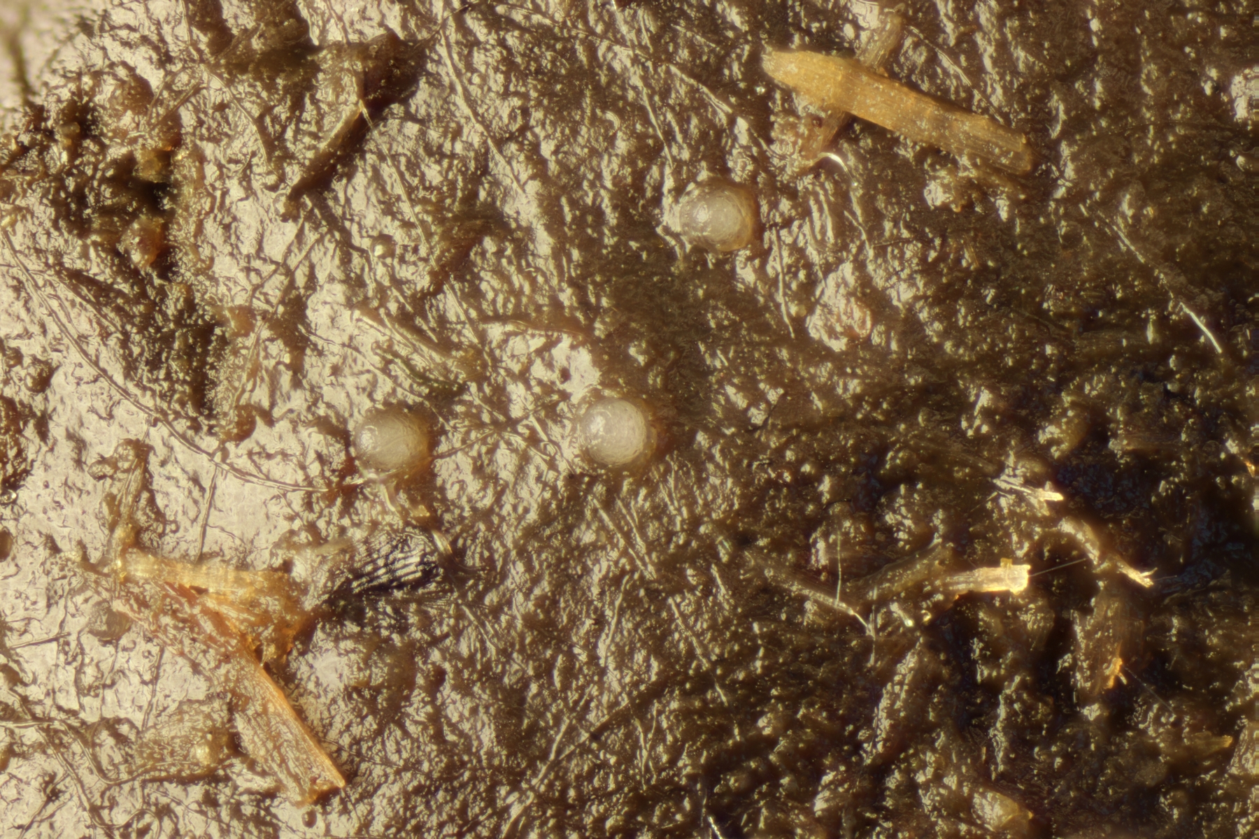 5. Letztens hatte ich ja auf dem Depot-Pferd schon einen Kandidaten für Podospora excentrica, der sich leider wegen fehlender Caudae-Bilder nicht dingfest machen ließ. Zum Glück hat sich die Art dann hier noch mal gezeigt, diesmal auch mit Caudae (die aber offenbar sehr leicht kollabieren).