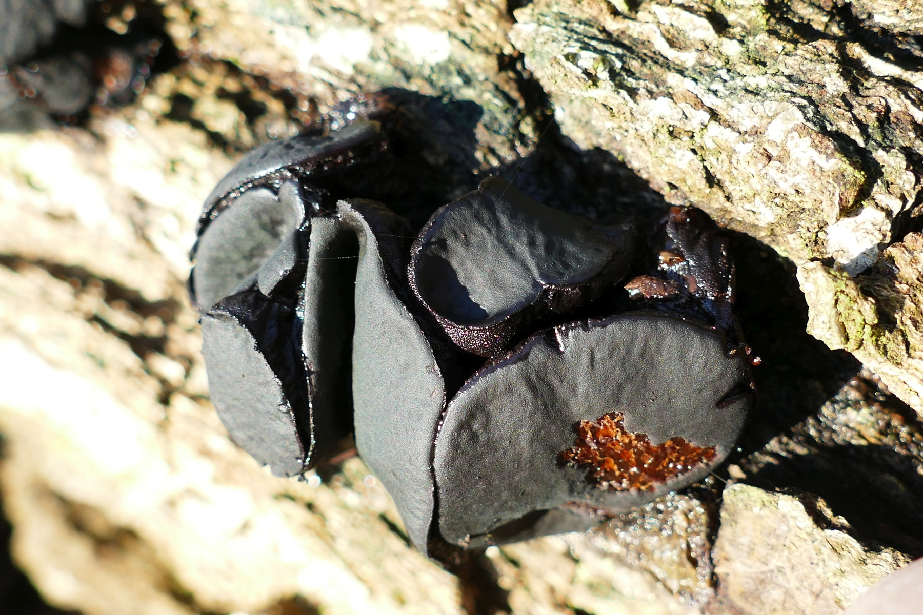 3) Eine Exidia, die ich bisher nicht finden konnte; hier wimmelt es nur so von diesen Gallertpilzen.