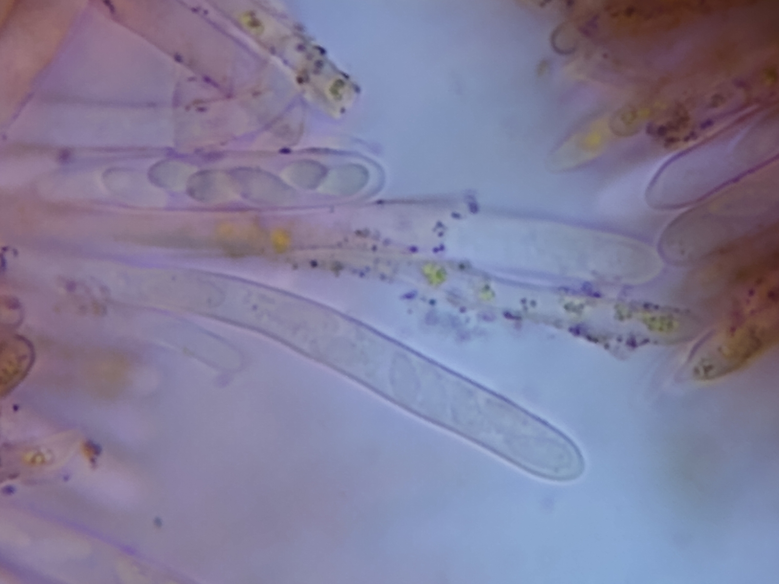 Die Asci beherbergen 8 transparente Sporen.