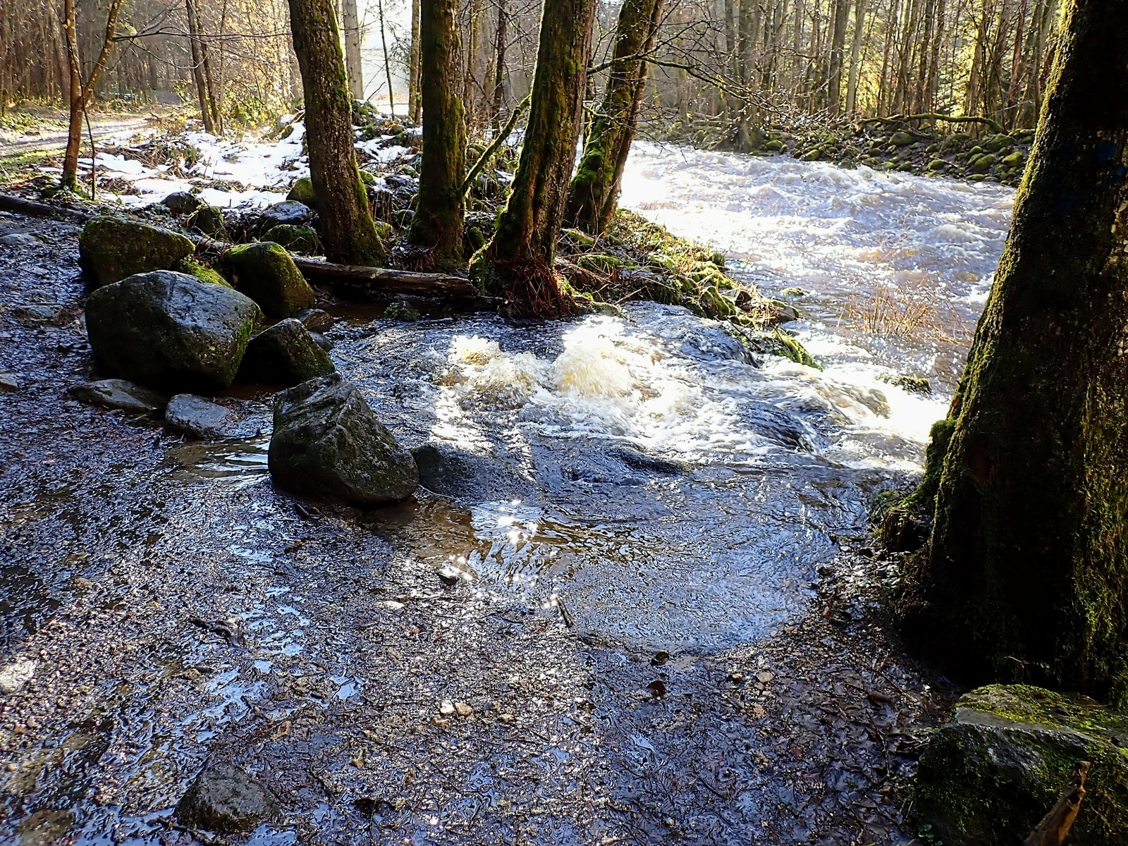Obwohl drum herum Temperaturen weit über 10 Grad, hier liegt noch weit verbreitet Schnee und Eis.