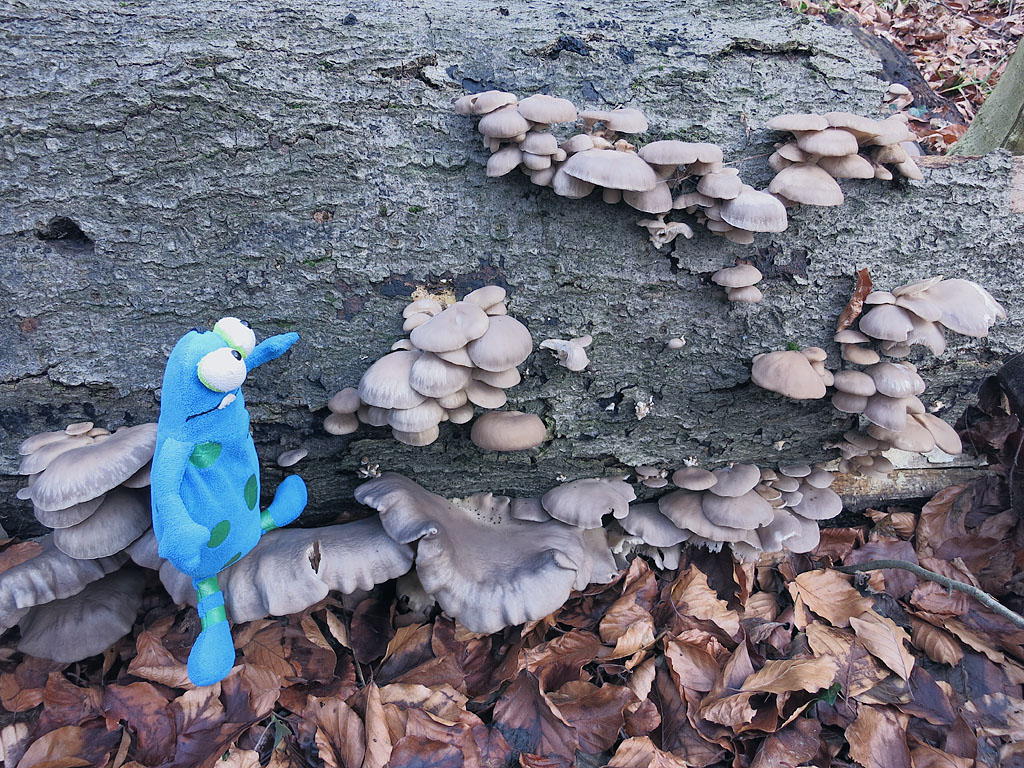 Ein Baumstamm zeigte mir von der einen Seite Austerseitlinge! Leider waren sie schon nicht mehr richtig frisch - und da ich sehr penibel bin, durften sie größtenteils im Wald bleiben...![]()