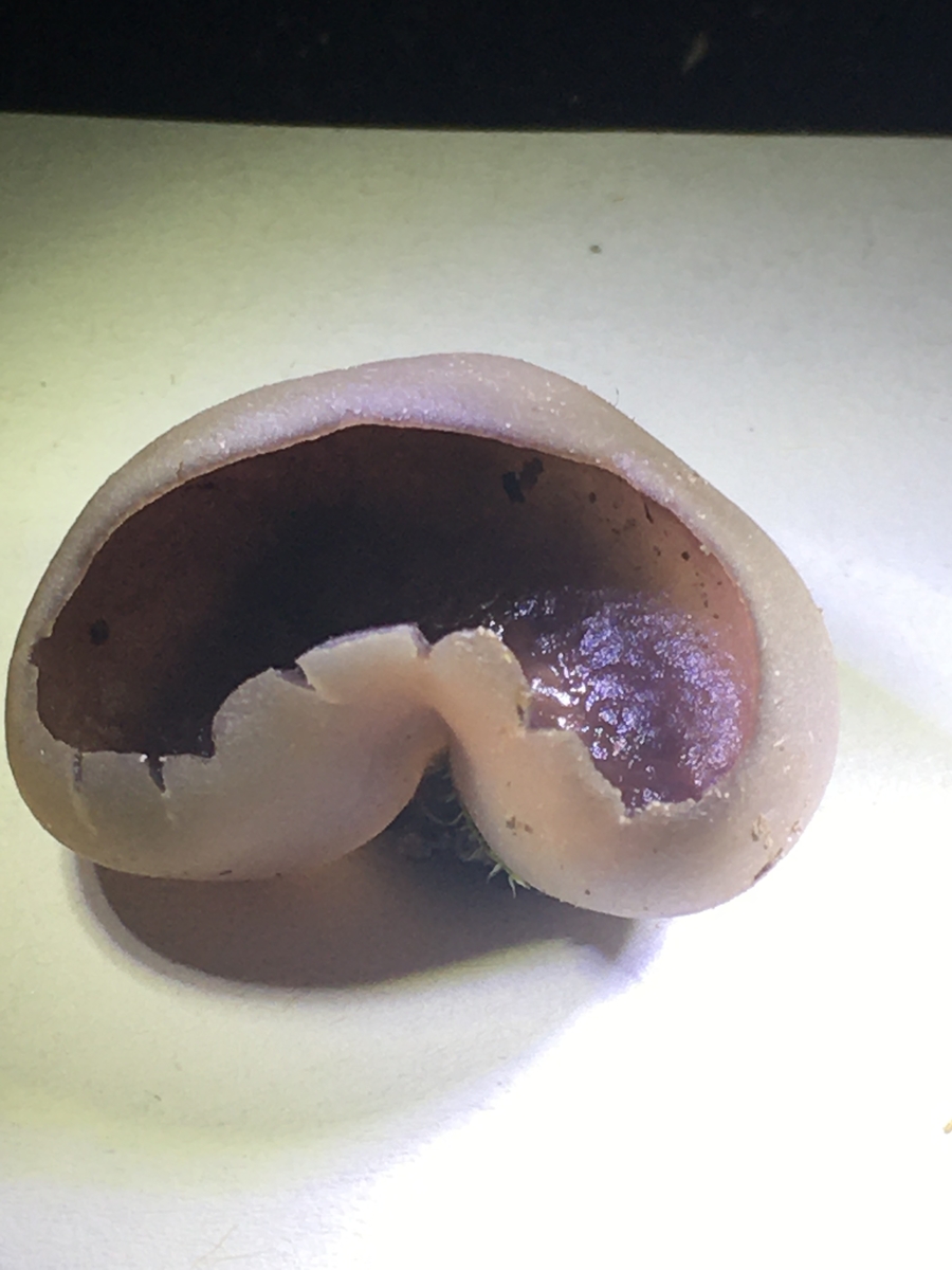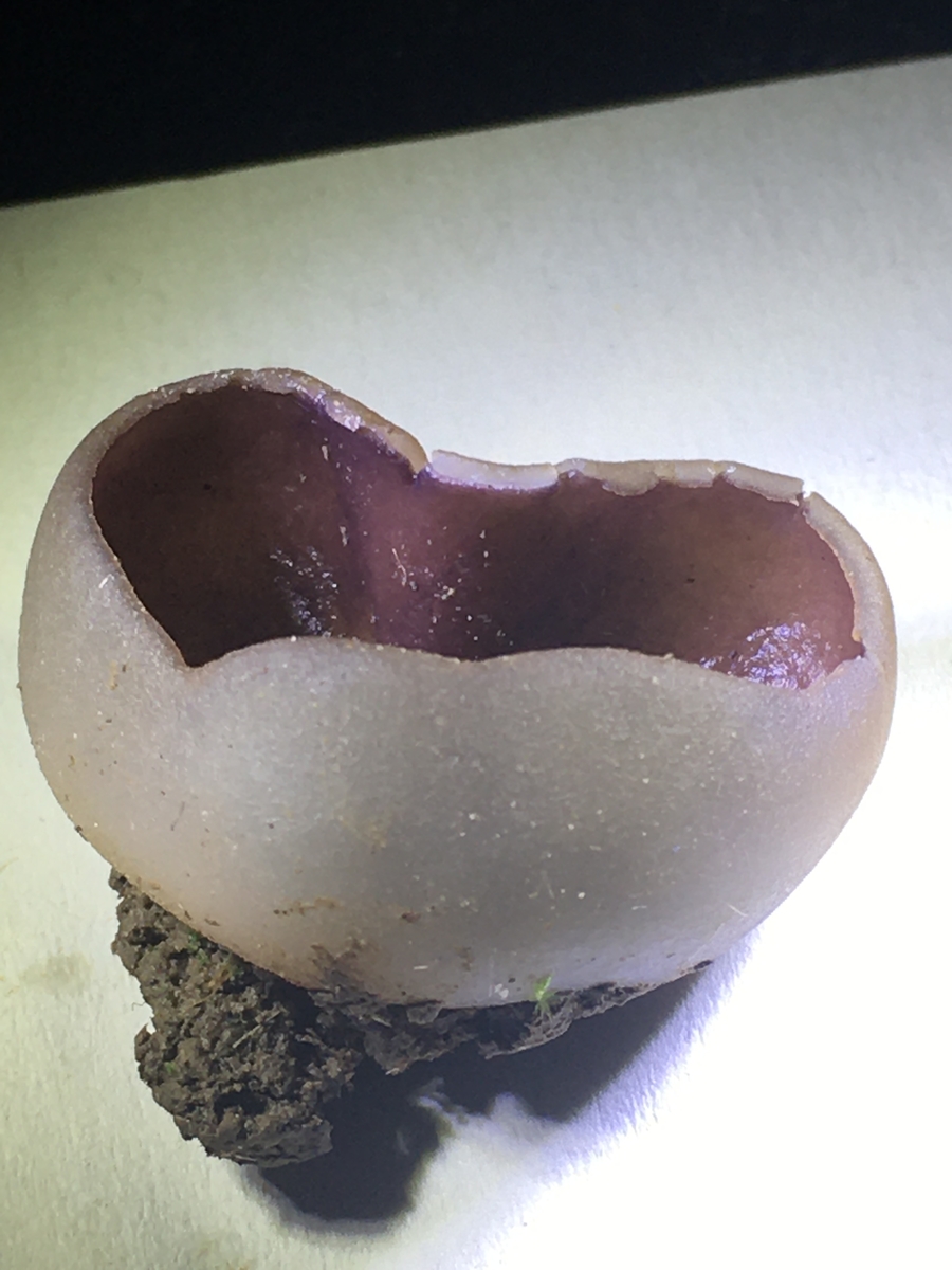 Auch wenn er nicht Kronartig aufgerissen ist, wäre ein Kronenbecherling möglich? Ich kenne nicht so viele Becherlinge die innen violett sind.