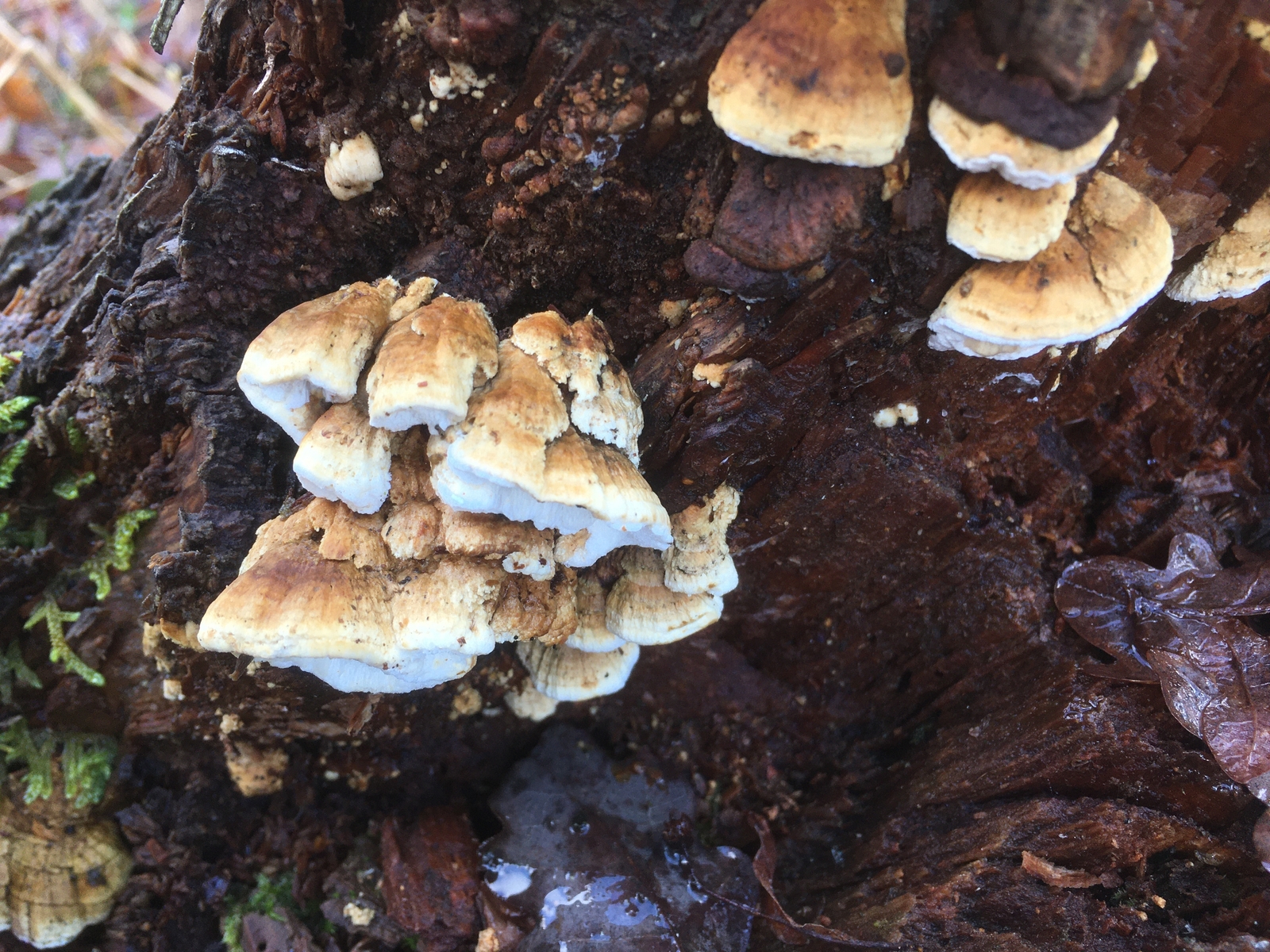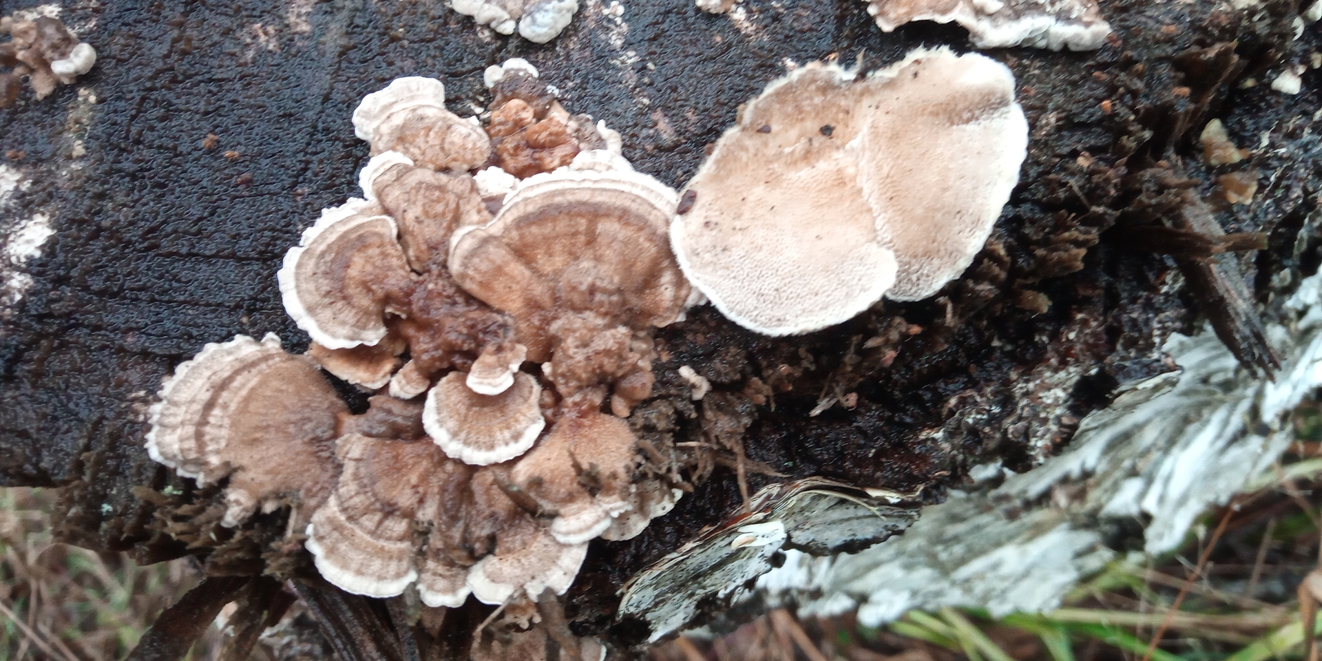 Mit der Gezonten Tramete stehe ich schon lange auf "Kriegsfuß"! Heute meine ich, junge und typische Fruchtkörper auf abgesägter Birke zu sehen. Dicke Anwuchsstelle und innen komplett weiß! Auf Sporenpulver kann ich nur hoffen. Sollte doch passen oder bin ich schon wieder einer Tramete auf dem "Leim" gegangen?