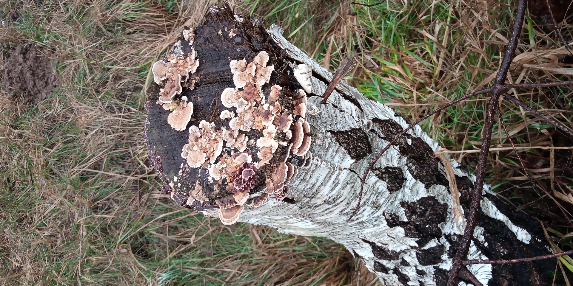 Mit der Gezonten Tramete stehe ich schon lange auf "Kriegsfuß"! Heute meine ich, junge und typische Fruchtkörper auf abgesägter Birke zu sehen. Dicke Anwuchsstelle und innen komplett weiß! Auf Sporenpulver kann ich nur hoffen. Sollte doch passen oder bin ich schon wieder einer Tramete auf dem "Leim" gegangen?