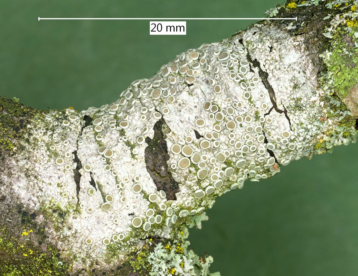 kürzlich fand ich an einem Zweig eines Apfelbaums auf einer Streuobstwiese diese Flechte. Ich denke an Lecanora. An sich sieht L. carpinea ja ähnlich aus, aber oft wird die mit dicht gedrängten Apothecien gezeigt, wodurch die runde Form dann zu eckig wird. Jetzt möchte ich endlich gerne wissen, welche es ist. Das ist hier überhaupt nicht der Fall. Ich meine, die Art schon oft gesehen zu haben. Könnt Ihr sie einordnen?