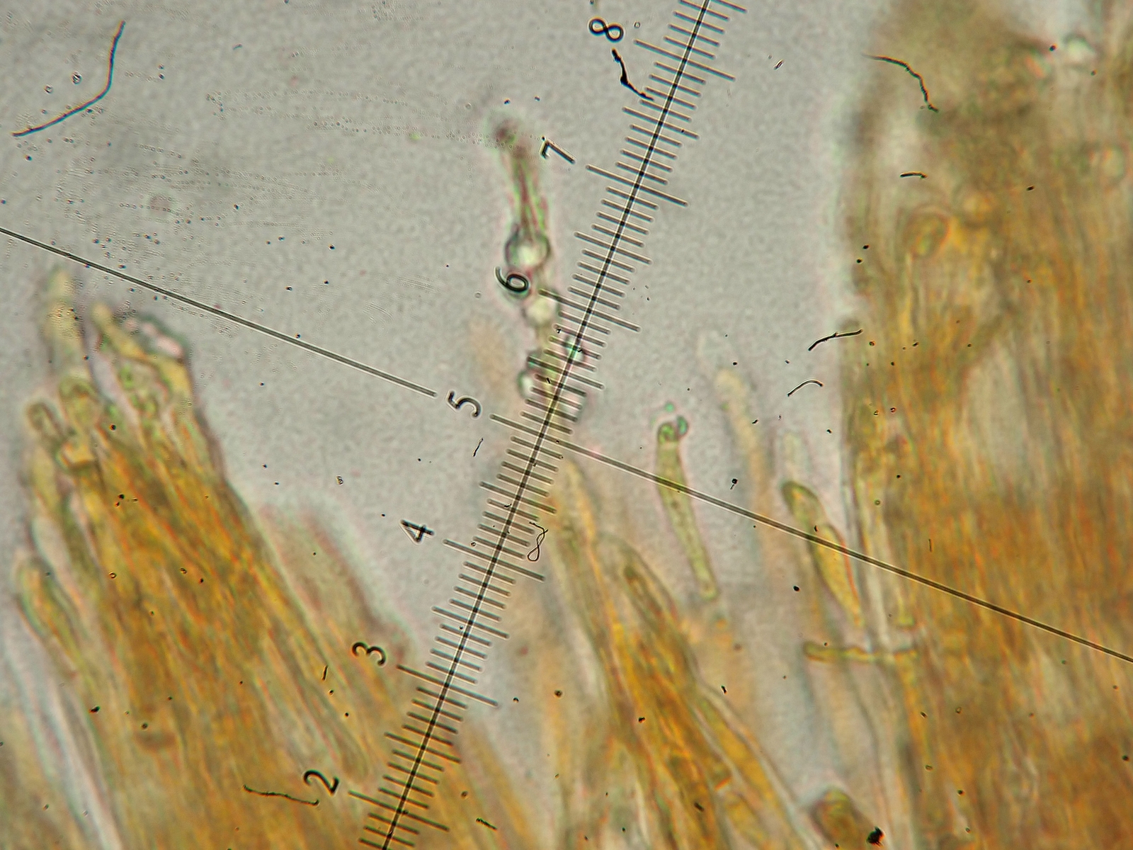 Hyphen im Subikulum max. 5ym, Gloeozystiden konnte ich nicht sehen. Ich hatte allerdings kein Phloxin zum Anfärben zur Verfügung.