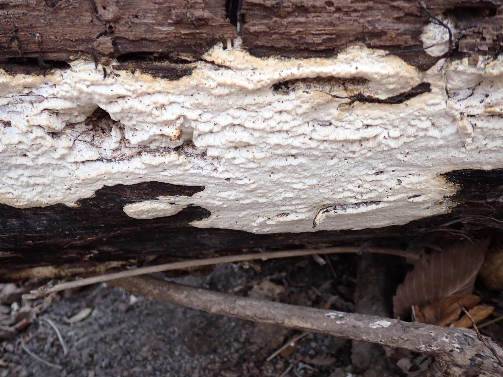 Mit der groben, zahnförmigen Struktur des Hymenophors sollte Schizopora paradoxa passen.
