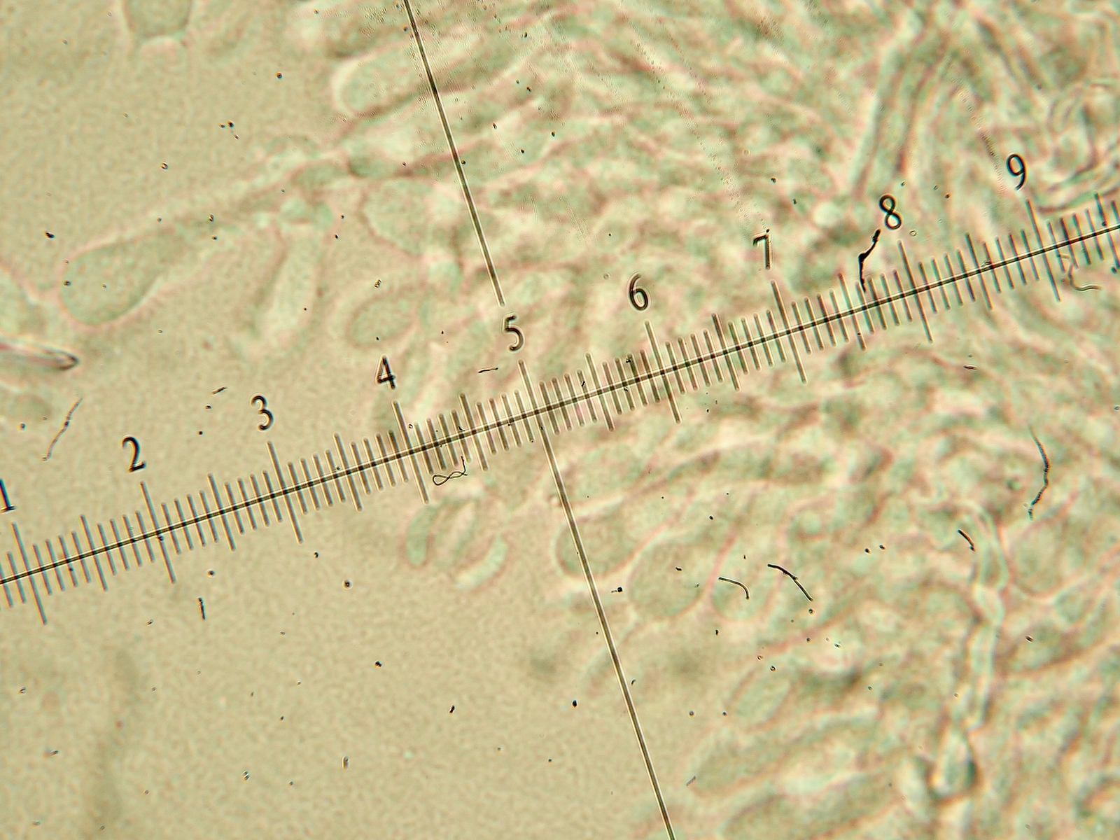 Hyphen im Subikulum max. 5ym, Gloeozystiden konnte ich nicht sehen. Ich hatte allerdings kein Phloxin zum Anfärben zur Verfügung.