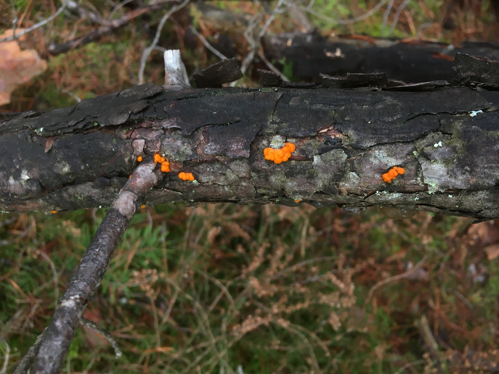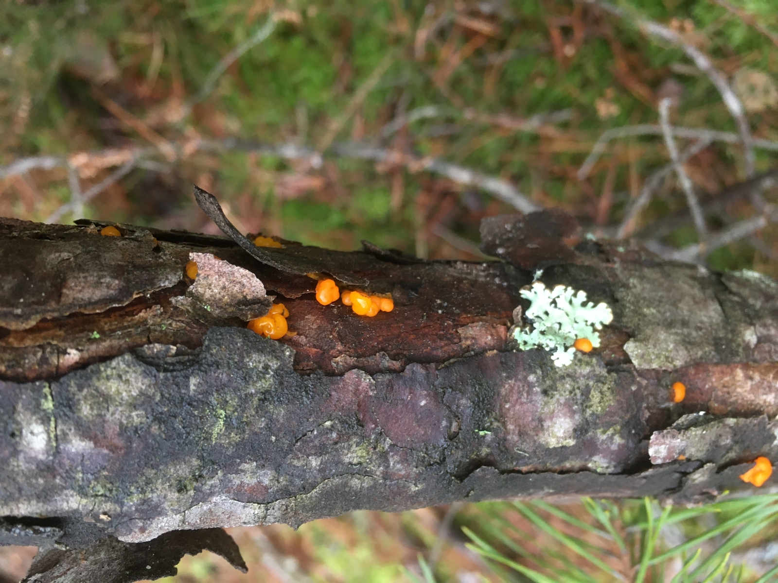 2) Nicht weit enfernt stachen mir diese knall orangen Gallerttränen ins Auge, ebenfalls an Kiefer, überraschend knackige fast schon harte Konsistenz, wahrscheinlich noch ganz jung.