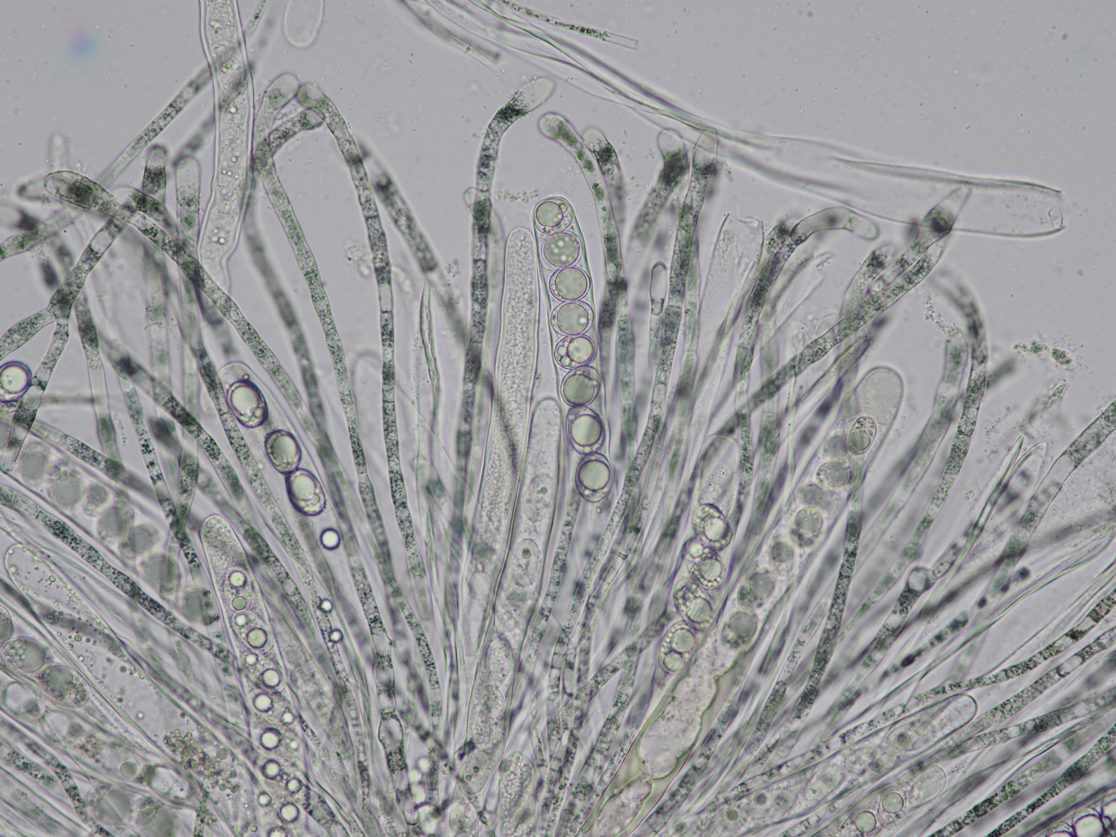 Andererseits sieht das auf dem ersten Foto schon nach Basidiosporen aus, man erkennt ja z.B. einen Apikulus. Bei Gallerttränen gibt es die Besonderheit, daß die Sporen nur dann ihre wahre Septierung zeigen, wenn sie beim Abwurf auch in Kontakt zum Hymenium stehen. Wenn man einfach einen normalen Abwurf macht, hat man fast nur unseptierte Sporen.