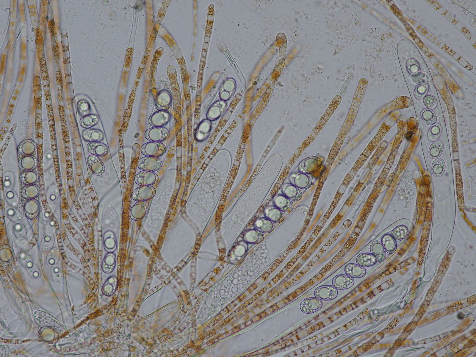Makroskopisch hätte ich auf D. chrysospermus gehofft, aber dafür sind die Sporen zu klein, vielleicht was aus der D.stillatus Gruppe, aber ob man da weiterkommen kann und ob die Sporen dann doch überhaupt reif sind weiß ich nicht.