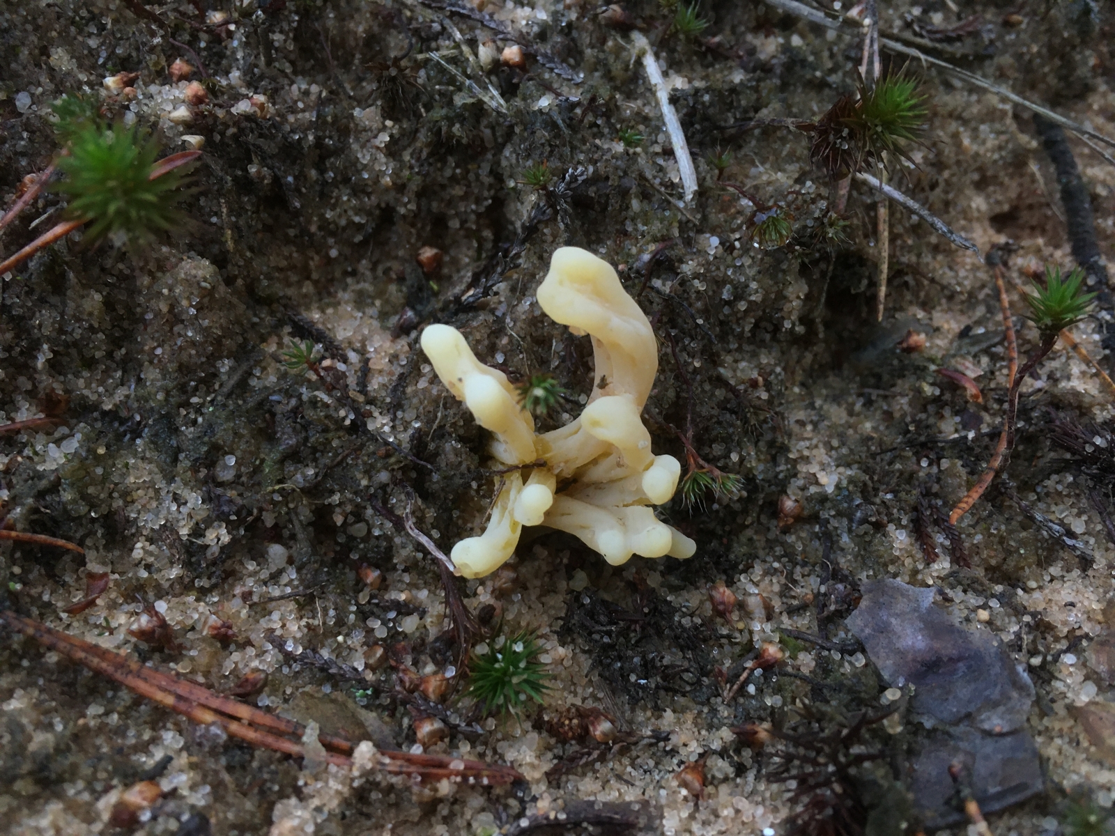 das ist die Heidekeule (Clavaria argillacea). Diese wird zwar auch bei der Krähenbeere gefunden, sie ist aber vor allem ein Begleiter des Heidekrautes (Calluna vulgaris) und das kommt auf der von Dir besuchten Binnendüne doch reichlich vor (oder täuscht mich da mein Eindruck bei der Betrachtung des Standortfotos?). Nebenbei: Was sind das für weiße Flecken in der Vegetation? Ich vermute mal Rentierflechten, kann es aber nicht eindeutig erkennen. Wenn ja, ein tolles Biotop mit Seltenheitswert!